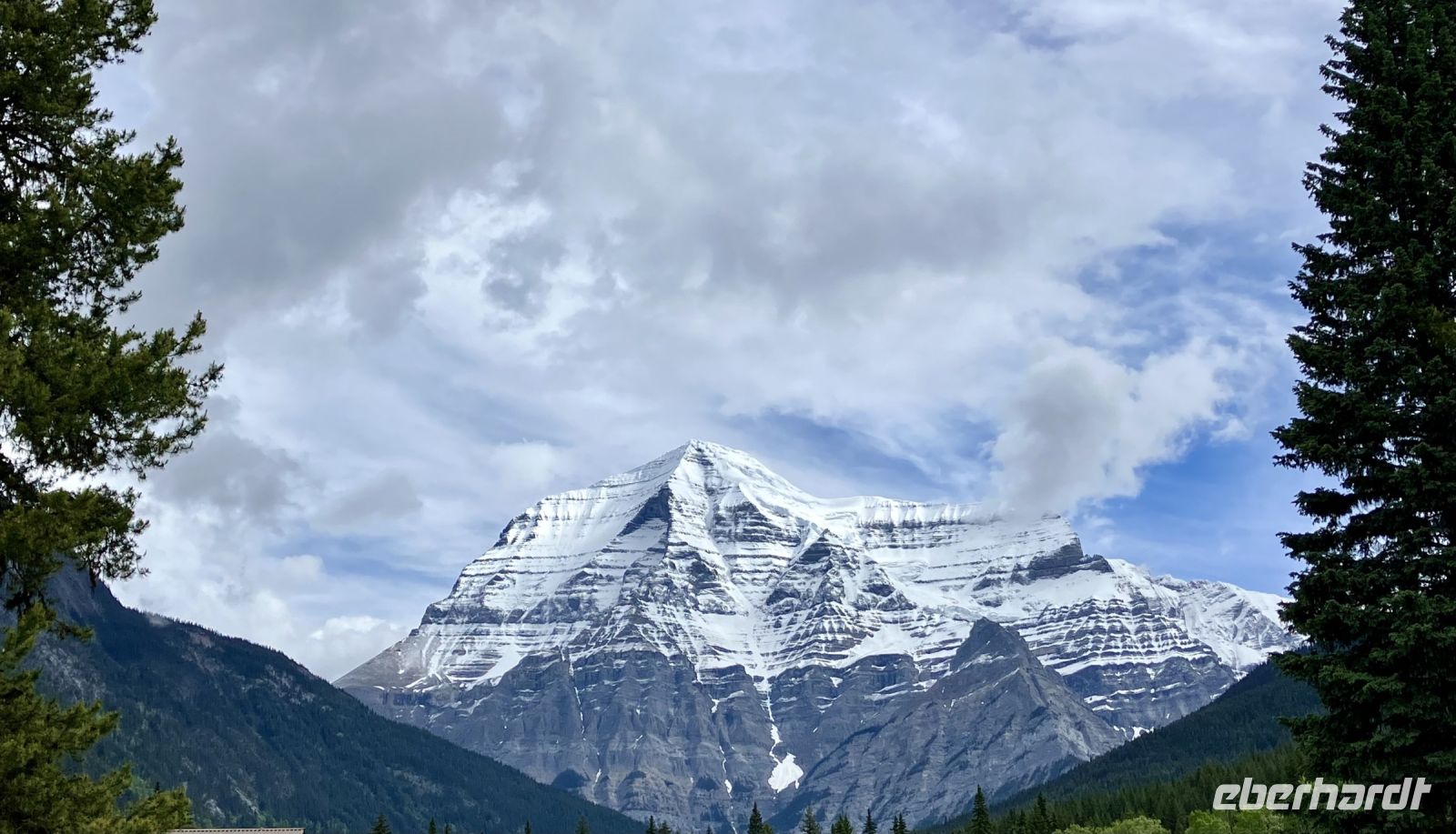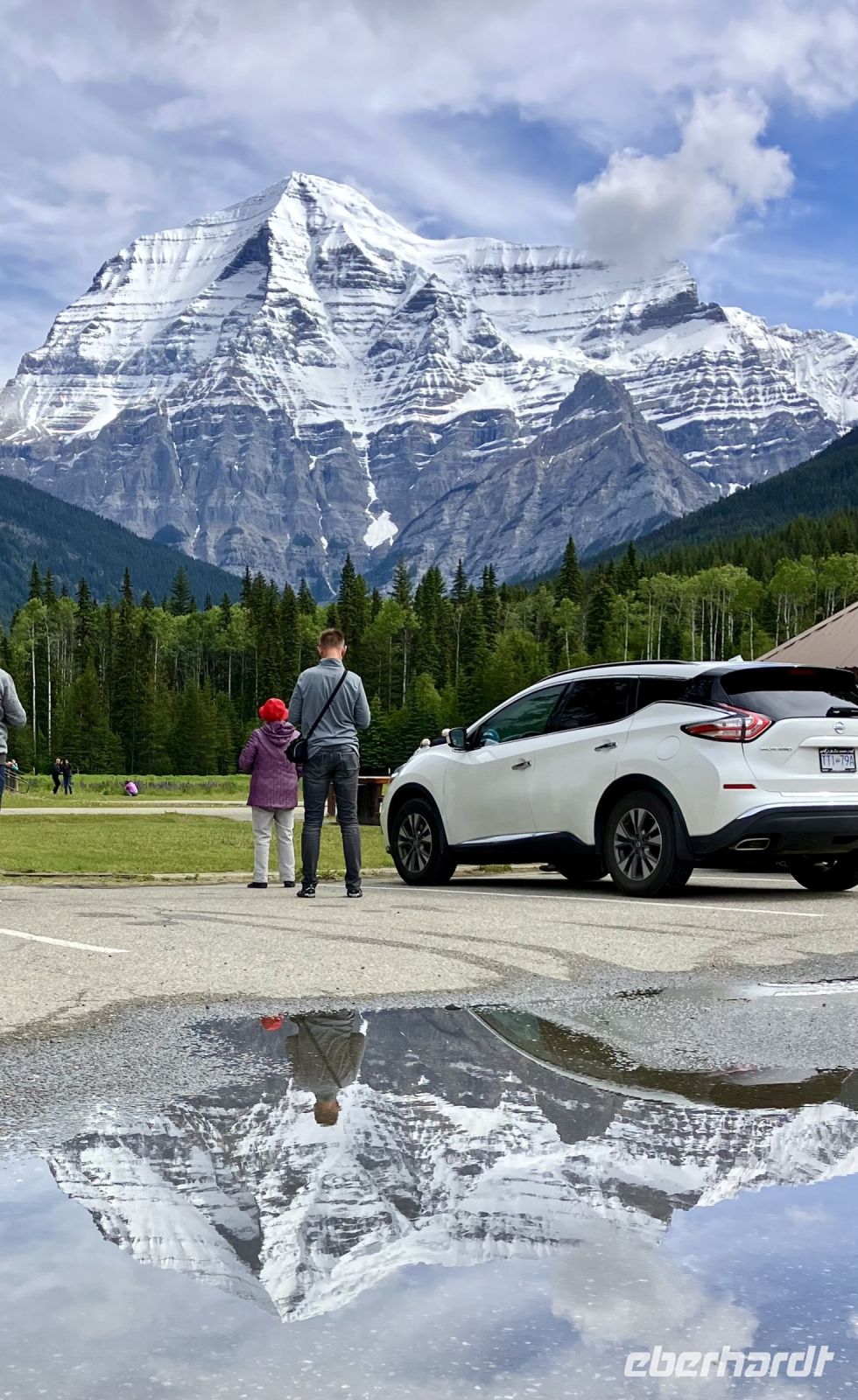 Das Zimmer ist kuehl, das Bett kuschelwarm und man hoert kein Ton. Schoen ist es in unseren Bockhaeuschen aufzuwachen. Auch heute gibt es wieder ein ueppiges Fruehstueck. Der heutige Tag ist ja ganz besonders, denn er hat 25 Stunden. Wir ueberqueren heute die grosse kontinentale Wasserscheide und fahren nach Britsh Columbia. Vorerst aber wollen wir uns von den Rockies gebuehrend verabschieden und besuchen deshalb Patricia und Pyramid Lake oberhalb von Jasper. Bei Patricia Lake horchen wir der “Operation Habakuk” aus dem 2. Weltkrieg zu und koennen es kaum fassen dass England hier ein Kriegsschiff aus Eis und Holz bastelte welches im Sommer natuerlich schmolz ! Sowas ! Die Spiegelung auf dem Wasser ist heute besonders schoen. Pyramid Mountain wir nun in jede Richtung mit und ohne Vordergrund fotografiert. Weiter gehts zum Pyramid Lake auf den schoenen kleinen Abschiedsspaziergang und die Taufe unseres Mascottchens. Es ist ein kleiner Grizzly namens Jasper, er wird nun gebuehrend gefeiert ehe wir auf der Gelbkopf Highway Richtung Westen fahren. Wo ist er denn, unser Mount Robson der mit seinen 3954 Meter ueber Meer der hoechste Berg British Columbias sein moechte. Hier, ganz unerwartet hinter einer Kurve, 5,4,3,2,1 WOW da thront Mount Robson und glitzert hell und wunderschoen auf uns hinunter. Er ist frei und hat heute nicht die beruehmte “Kappe” auf. Schau in die Bildergalerie, denn so sieht man den Riesenberg der vielen Wege sehr selten. Nun nehmen wir noch unser Mittagessen ein, besuchen das Info Centre und den kleinen Shop ehe es weiter geht. Ab in Richtung Sueden nach Clearwater. Die Fahrt bringt uns nun in eine huegelige und dicht bewaldete Gegend. Es gibt kaum Doerfer und die Highway schmiegt sich an den Thompson Fluss. Ein Nickerchen ist angesagt und wir wachen 1 Stunde spaeter auf, da wir in Avola sind. Niemand kennt Avola, es ist ein Dorf mit etwa 10 Einwohner und Larry der hier ein tolles Pub fuehrt. Da kehren wir ein auf ein urchiges Bierchen, horchen seinen Geschichten zu und unterstuetzen das Brutto Einkommen von Avola betraechtlich. Nun ist es Zeit, weiterzureisen, denn wir wollen doch noch in den Wells Grey Park um dort 2 Wasserfaelle zu besichtigen. Nach dem Hotel check-in gehts gleich zu den Spahat Falls und danach weiter zu den Dawson Falls. Sie schauen wirklich den Niagara Faellen aehnlich, aber ohne Hochhaeuser, Gondeln, Boote und Helikopter. Die Dawson Faelle sind natur pur und die kleine Wanderung von einer Aussichtsterrasse zur anderen, tut uns gut. Es ist bereits spaeter Nachmittag und es ist Zeit in die Black Horse Ranch zu fahren, denn da erwartet uns heute ein wunderbares BBQ. Die Black Horse Ranch wird von Schweizer betrieben und die Staeks schmecken vorzueglich. Jetzt ist aber Zeit unser heutiges Nachtquartier wieder aufzusuchen. Grosse Zimmer, grosse Betten sorgen fuer eine gute Nachtruhe. Bis Morgen Frueh meine lieben Freunde. Es war ein voller, lustiger und langer Tag.