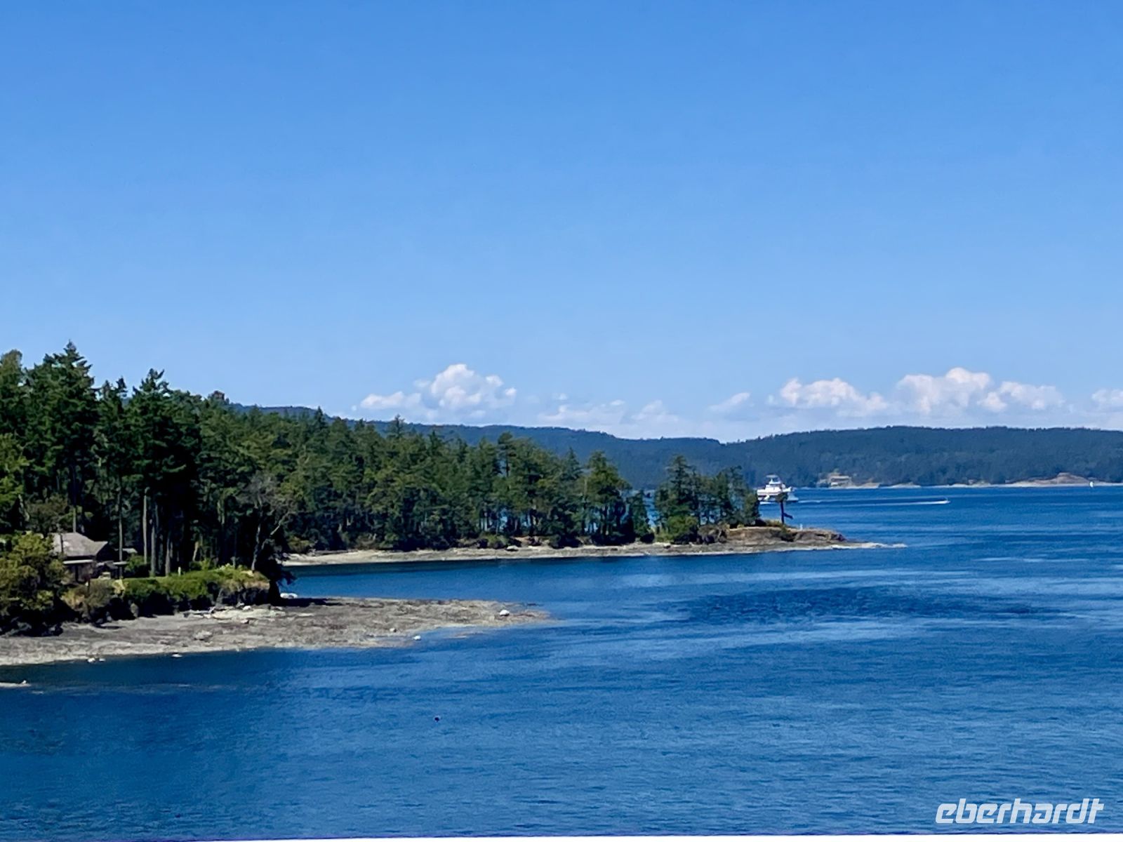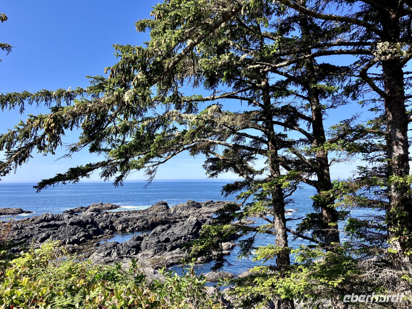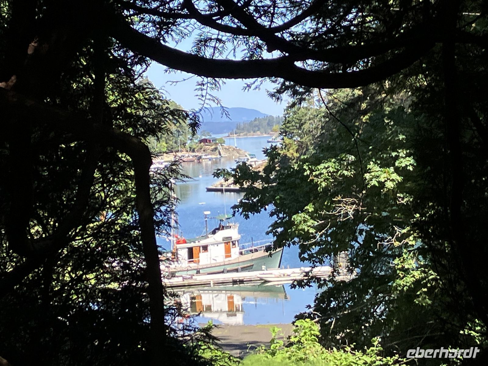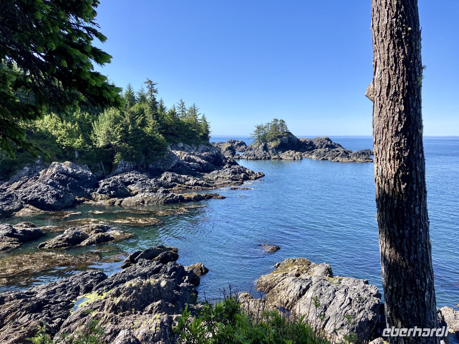 Oh wie schoen, die Sonne lacht. Das Fruehstueck wird wie gestern auf dem Teller serviert und die feinen Speisen reichen auch gleich fuer Mittagessen. Nachdem jeder seinen gewuenschten Kaffe oder Tee gekostet und konsumiert hat, treffen wir uns im Bus. Die Koffer werden wieder versttaut und bald sind wir unterwegs zum “romantischen Wanderweg”. Wir fahren nach Ucluelet. Es wird liebevoll auch Uki genannt. Dort spazieren wir einer wilden Kueste mit ausserordentlichen Aussichten entlang. Schaut Euch die Photos an. Es ist traumhaft, Urwald, Ozean, Inselchen, Schaeren, die Broken Islands und auch der Leuchtturm nehmen uns in ihr Bann. Ein schoener Abschied vom Westen der Vancouver Island.
