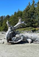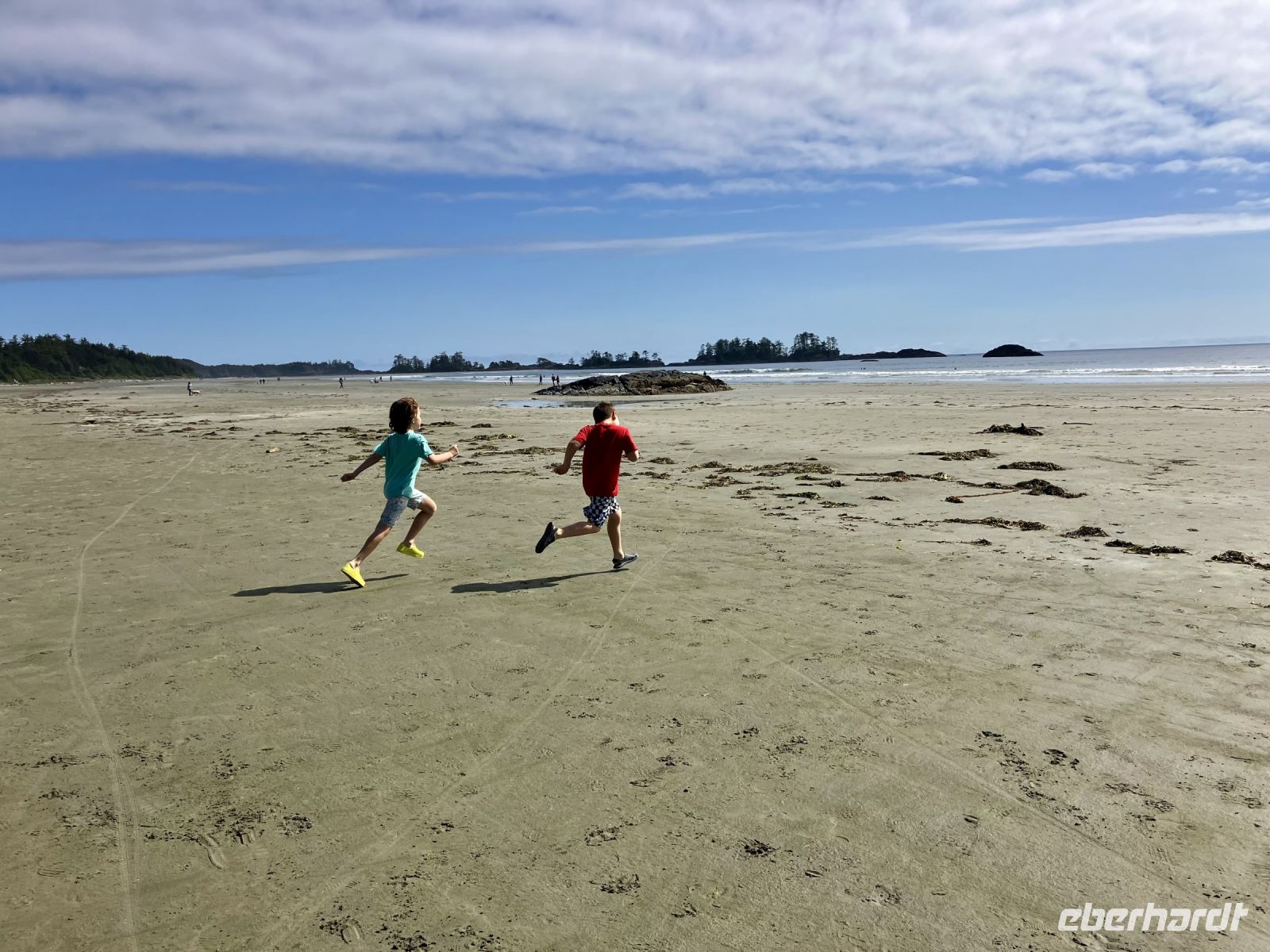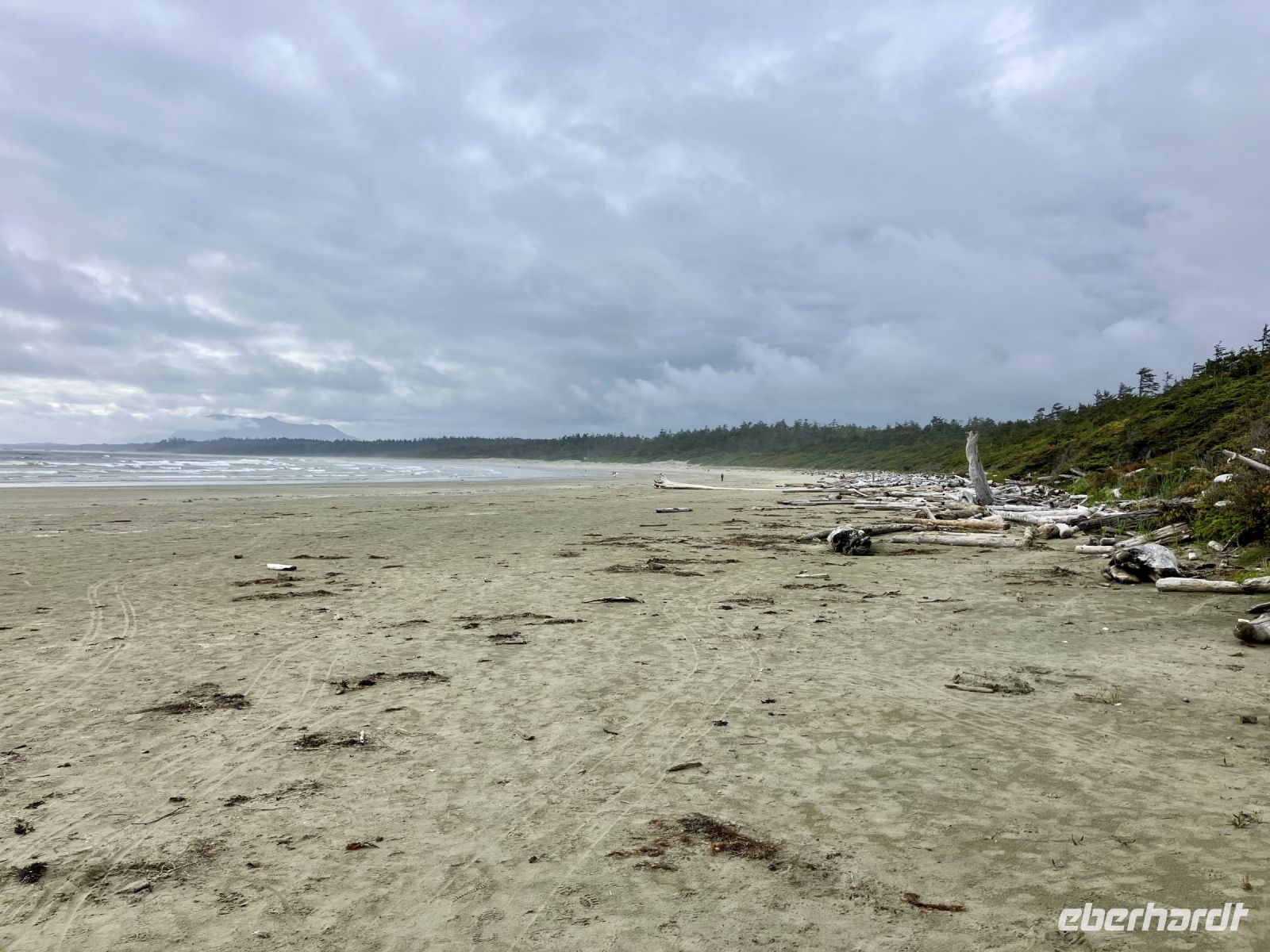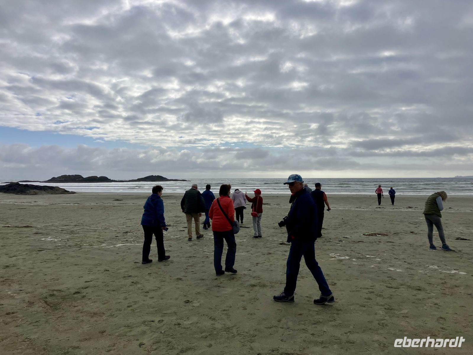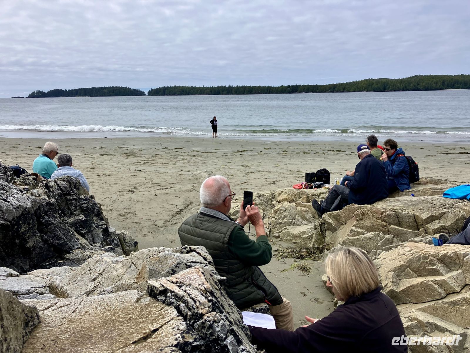 Nach der Freizeit fuer jene welche die Baerenbeobachtung nicht mitmachen, treffen wir uns wieder und Genesis faehrt uns an einen wunderbaren grossen, langen Strand. Chesterman Beach ist so pitoresk wir gehen ins Wasser, spazieren dem Strand entlang und einige doesen einfach vor sich hin mit dem Reuschen des Pazifischen Ozean im Ohr.