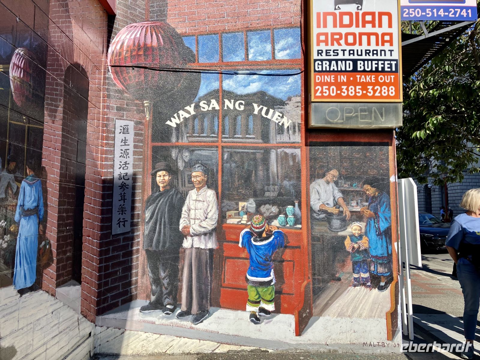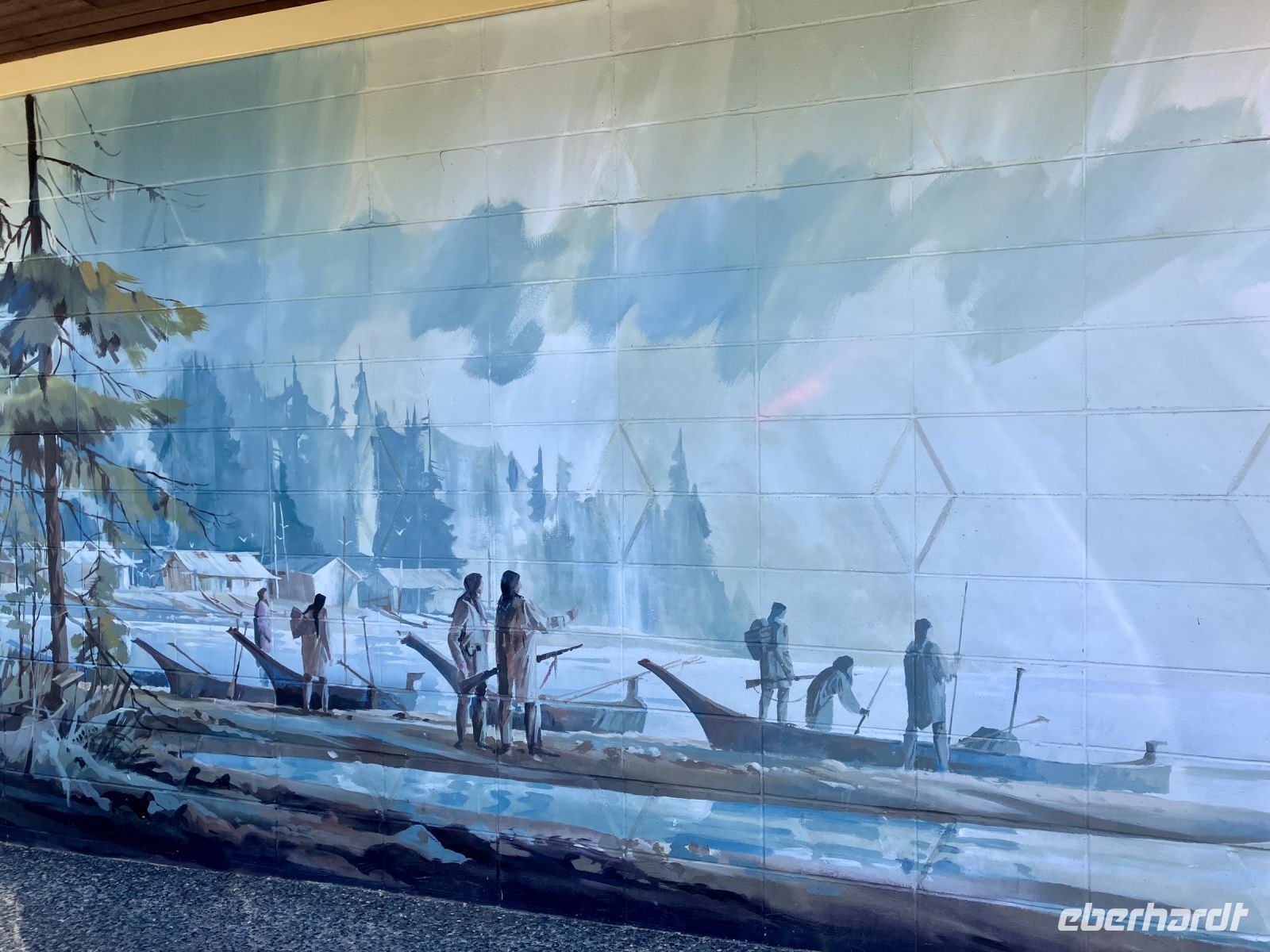 Heute ist ein Bus - Tag und so fahren wir durch bis Port Alberni. Es liegt auf halber Strecke zur Island Highway und wir halten kurz fur eine technische Pause. Bald sind wir auch schon in Chamainus. Dort gibt es einen laengeren Halt, denn diese herrliche Freiluft-Galerie muss gesehen werden. Viele Mauern der Haeuser sind hier mit historischen Gemaelden bemalt. Auf der Main Street schaut es aus wie in einem englischen Dorf. Eisdielen, Teehaeuser, Geschaefte mit Schnick-schnack ,Pubs und Restaurants saeumen diese Hauptstrasse. Die Saegerei unten am Wasser muss natuerlich auch aufgenommen werden und die Statue von Mr. Mc Millan, einem der Holzbaronen von damals will auf verewiglicht werden. Nun fahren wir ein Stuendchen in Richtung Sueden bis wir die Hauptstadt BC’s, Victoria erreichen. Das Staedtchen ist sehr ueberschaulich und wir machen unsere Stadtfuehrung zu Fuss. Das China-town ist wirklich beeindruckend mit seinen engen Gassen, vielen Eingaengen und tausend Geschaeften. Die Geschichte dazu auch faszinierend. Durch das Staedtchen gehend, viel erfahrend landen wir auf der Hauptstrasse, Governement Street welche uns an den beruehmte Inneren Hafen fuehrt. Ach wie schoen, ein grosses Aaa und Ooo ist zu hoeren, wenn wir das Parlaments-Gebaeude, das BC Museum, das Eisenbahnhotel the Empress und all die kleinen Boote, Wassertaxis und Wasserbusse sehen die von imposante Yachten, Faehren und dem Landeplatz der Wasserflugzeuge umgeben sind. Das Wetter ist traumhaft wenn auch etwas kuehl. Wir schlendern bis zu unserem Hotel, wo Genesis in seinem Bus mit unseren Koffer bereits auf uns wartet. Das Abendessen heute ist schlichtweg fantastisch mit Blick auf das beleuchtete Parlament. Wir fuehlen uns sehr verwoehnt und lassen diesen Tag auch schoen in einem urchigen Pub ausklingen.