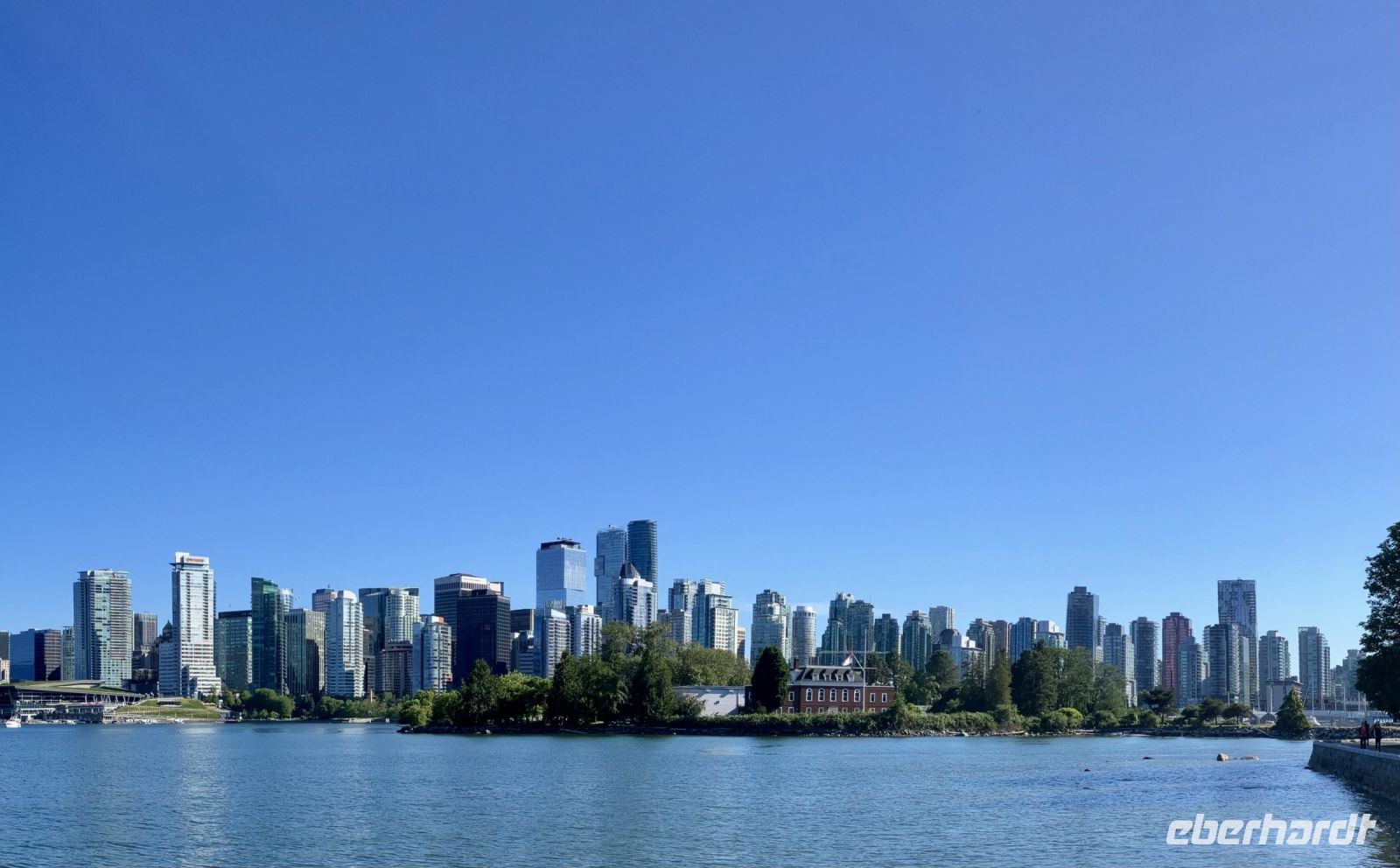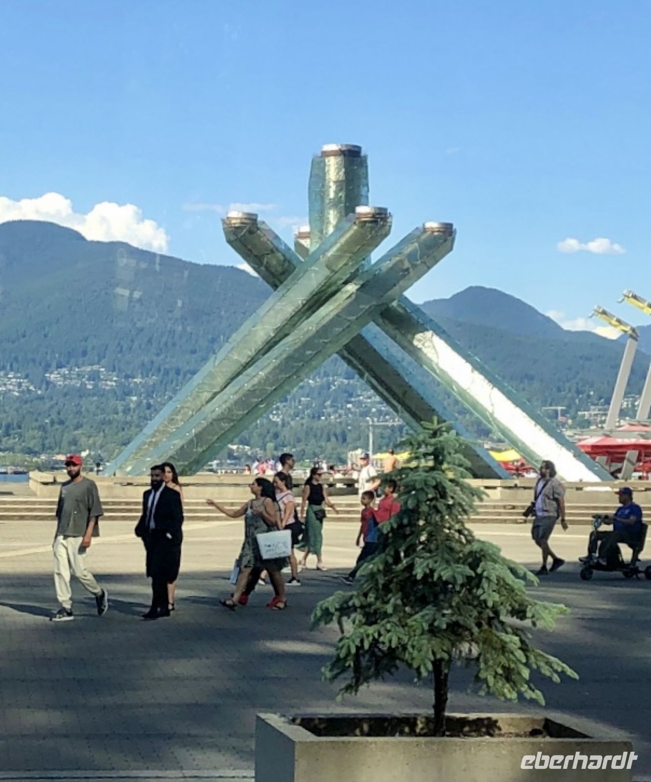 UUUps, die Strasse ist verbarikadiert und wir muessen durch das Drogenviertel dieser 2 Millionen Stadt durchfahren. Es ist wohl das erbaermlichste was wir alle je gesehen haben. Leute lungern hier, man weiss nicht ob sie noch leben. Einige gehen und man weiss nicht, ob sie es ueberhaupt wissen, wie Zoombies haengen sie herum. Es erschlaegt uns fast. Bald sind wir wieder “draussen” und fahren eine Strasse rueber nach Gastown. Als waere nichts geschehen, spazieren und flanieren hier hunderte Touristen. Sie kaufen ein, sie kehren ein, plappern lustig und erfreuen sich dieser schoenen Stadt. Noch im Schock, steigen auch wir aus, sammeln uns und bestaunen die beruehme Dampfuhr wie sie gerade 1/4 nach 3 dampft. Danach gehts weiter mit Genesis nach Canada Place, gezeichnet von der Expo 86, wir sehen die Fakeln der Olympiade 2010 und zu guter Letzt umrunden wir ganz Stanley Park. Was fuer eine tolle Stadt diese Perle am Pazifik. Nicht bloss die vielen Chinesen, Inder, Iraner, Italiener, Deutsche usw sondern auch die vielen Drogensuechtigen und Heimatlose finden hier eine freie, tolerante Stadt. Wir wohnen im Zentrum auf West End, gleich am Strand der Englaender. Nach dem Zimmerbezug geht auch gleich jeder auf eigene Faust auf Erkundung, denn der Rest des Nachmittages ist frei.
