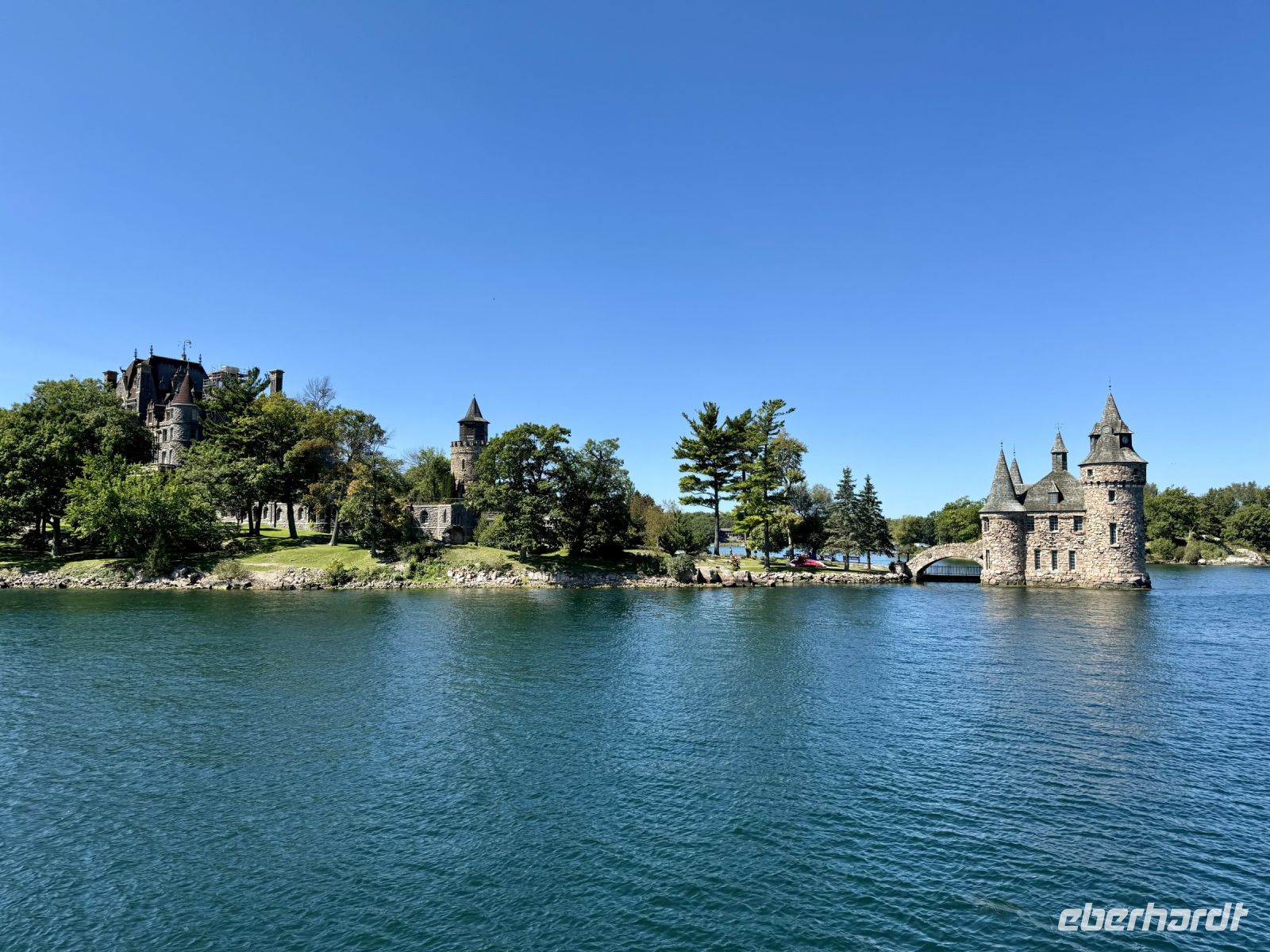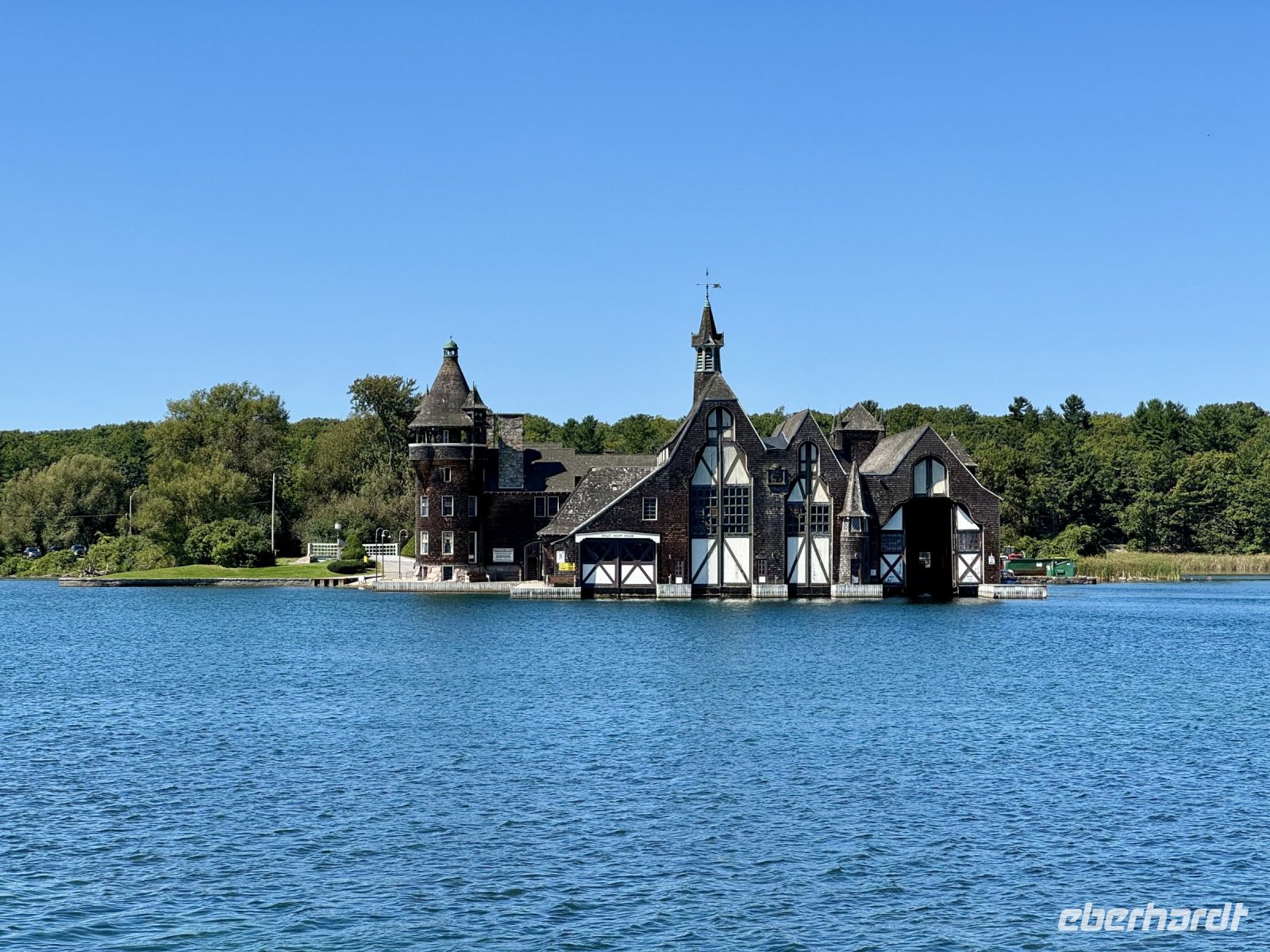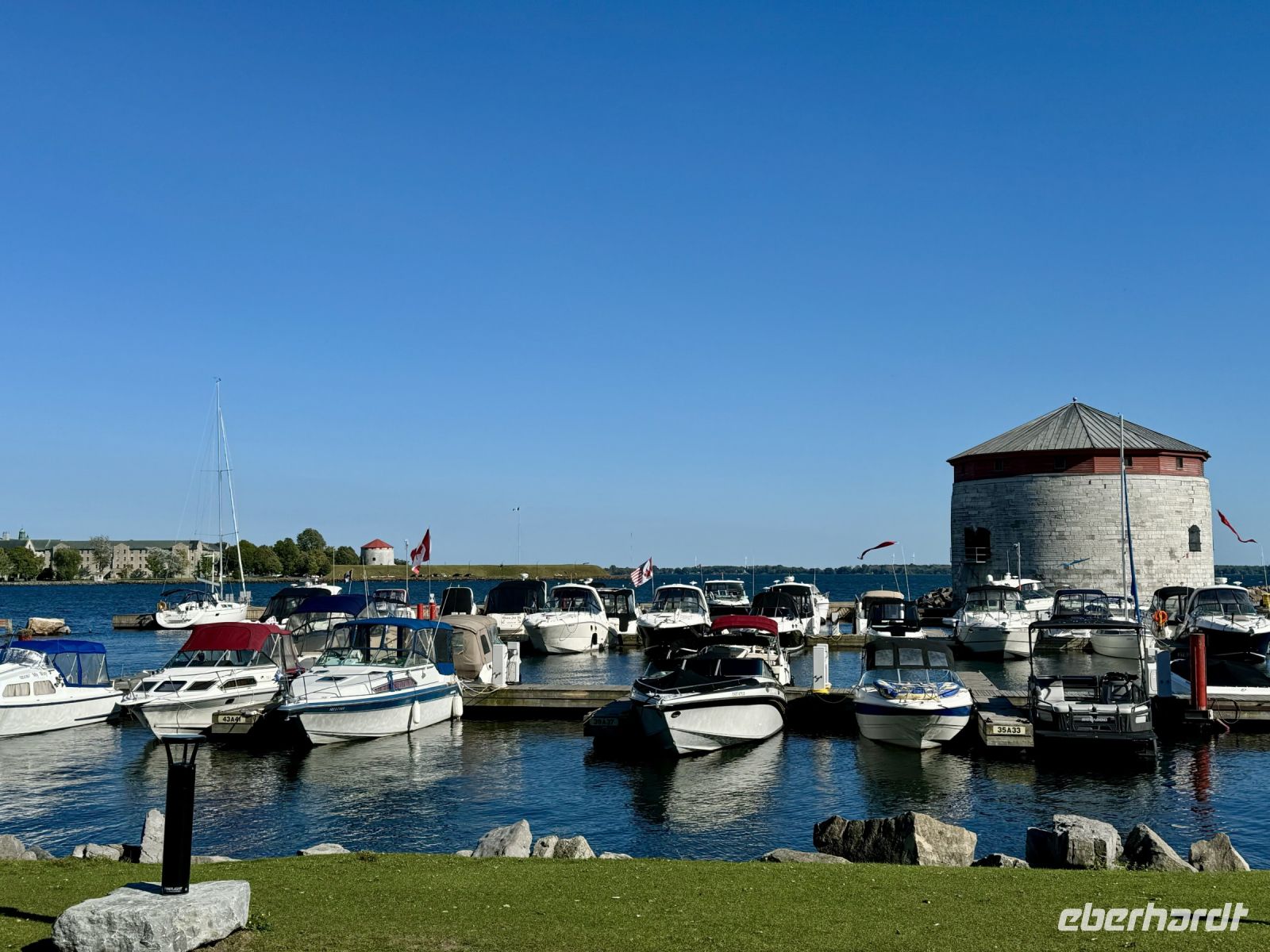 Nach dem Frühstück kehren wir zurück zum Nationalmuseum für Geschichte in Gatineau. Meine Gäste können am Vormittag für etwa zwei Stunden die Ausstellung besuchen, die sie von den First Nations in das moderne Kanada von heute führt. Um sich alles anzuschauen, bräuchte man aber den ganzen Tag. Nach dem Museumsbesuch beginnt unsere lange Fahrt nach Toronto. Sie wird unterbrochen durch eine Bootsfahrt zu den Thousand Islands. Ausgangspunkt dafür ist das Örtchen Rockport, das bereits wieder am Sankt-Lorenz-Strom liegt, und der Höhepunkt der Tour ist die Umrundung von Heart Island mit dem Boldt Castle. Doch auch auf den umliegenden kleineren Inseln gibt es einige hübsche Häuschen oder Villen. Manchmal ist das Haus fast so groß oder sogar größer als die Insel, auf der es steht. Eines dieser kleinen Objekte wurde sogar angeblich benutzt, um die ungeliebte Schwiegermutter die Saison über dort zu parken. Na ja, wenn sie die ganze Zeit so schönes sonniges Wetter hat wie wir heute, dann lässt es sich ja immerhin eine Weile aushalten. Bevor wir Rockport verlassen, bekommen wir noch ein Mittagessen im Hafenrestaurant. Danach machen wir einen Zwischenstopp im ehrwürdigen Kingston, der Stadt des Kalksteins, spazieren hinunter zum überdimensionierten Rathaus und zur Touristinformation am Wasser. Den Ontariosee haben wir bereits erreicht, aber bis Toronto brauchen wir noch rund drei Stunden. Das verdeutlicht die Größe des Sees — und er ist noch der kleinste der fünf Great Lakes! Für die notwendige technische Pause schlägt Warren einen Markt mit lokalen Produkten neben dem Highway vor. Ein riesiger roter Apfel weist den Weg zu leckerer Schokolade und Eis. Mit Einbruch der Dämmerung erreichen wir die größte Stadt Kanadas. Unser Hotel liegt mitten in der Downtown von Toronto und ist umringt von Wolkenkratzern (und hat selbst auch 26 Etagen). An die pulsierende Millionenstadt müssen wir uns erst gewöhnen. Ein kurzer Abendspaziergang zum Dundas Square sorgt dank der vielen Leuchtreklamen für noch mehr Reizüberflutung. Da kümmern wir uns lieber erstmal um unser leibliches Wohl und suchen uns individuell ein nettes Lokal zum Abendessen.