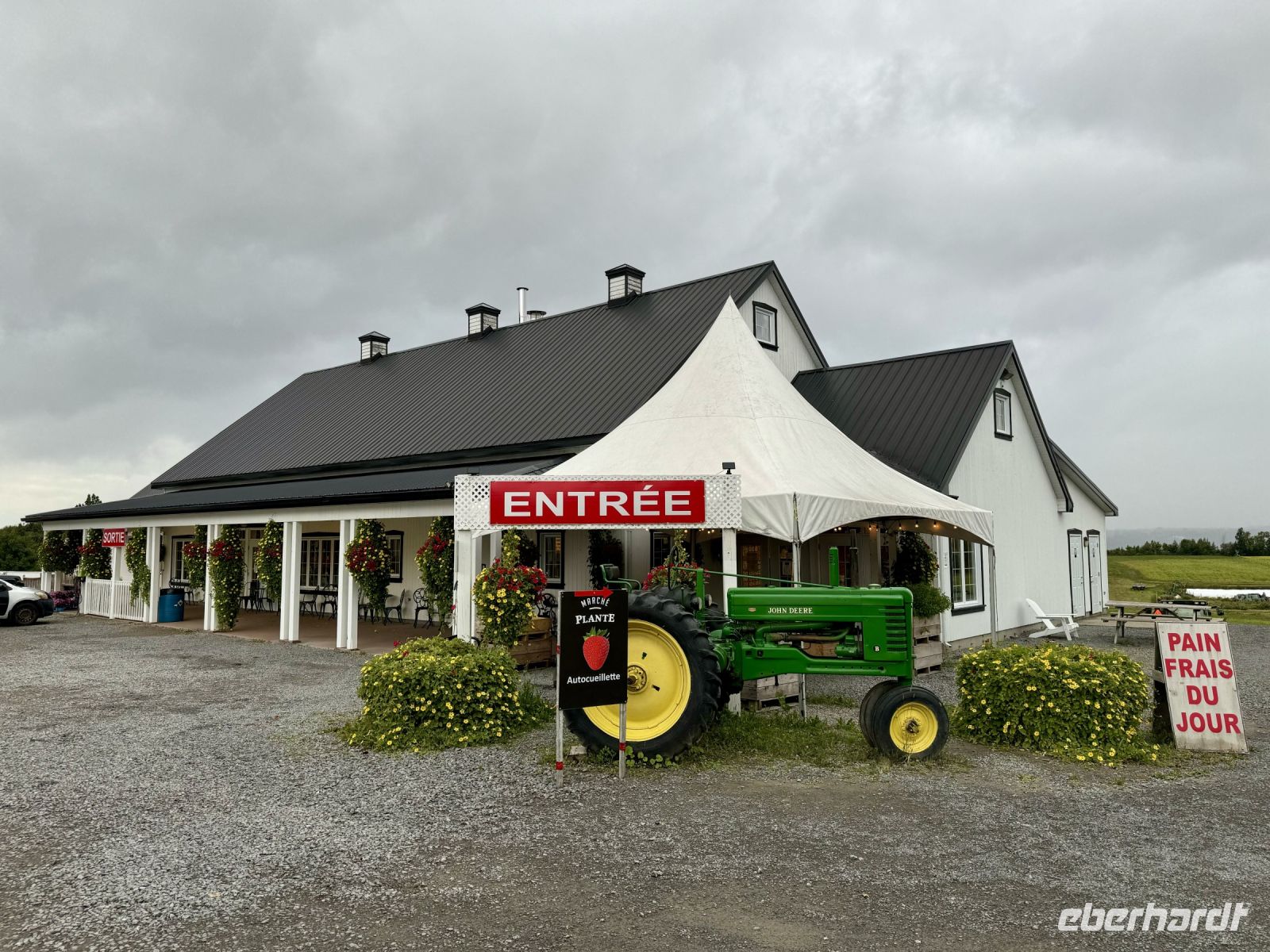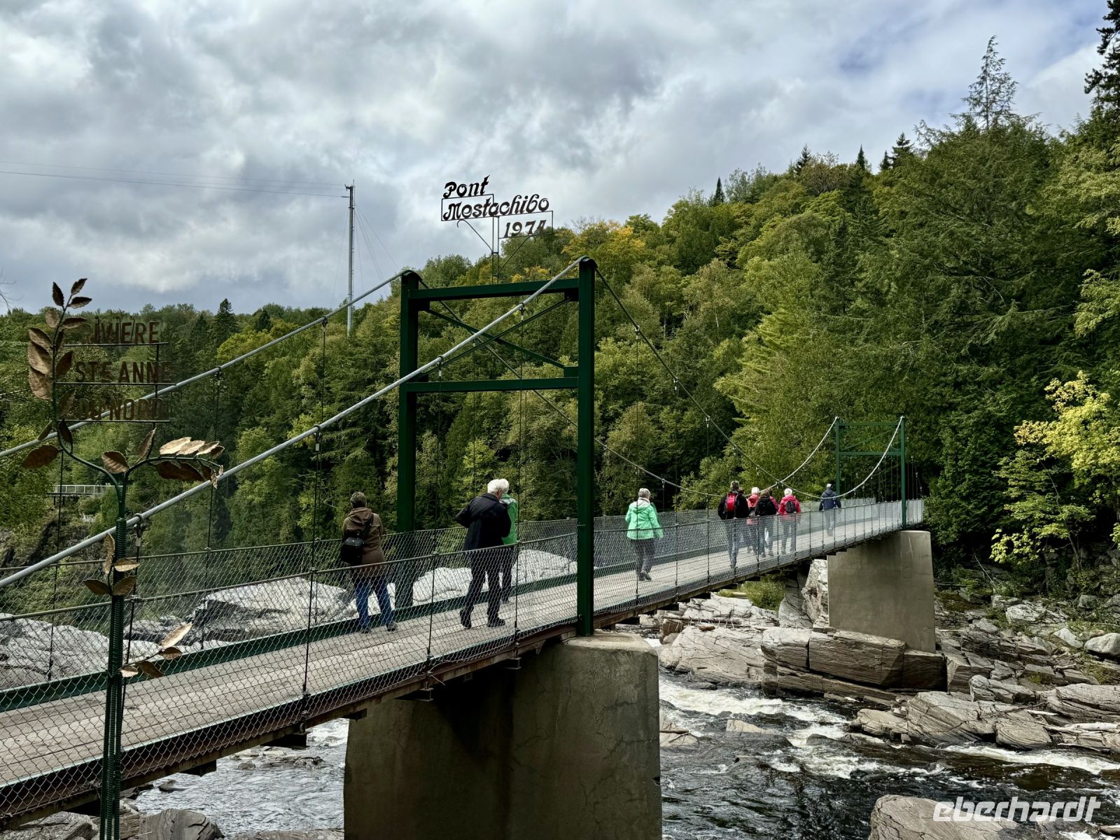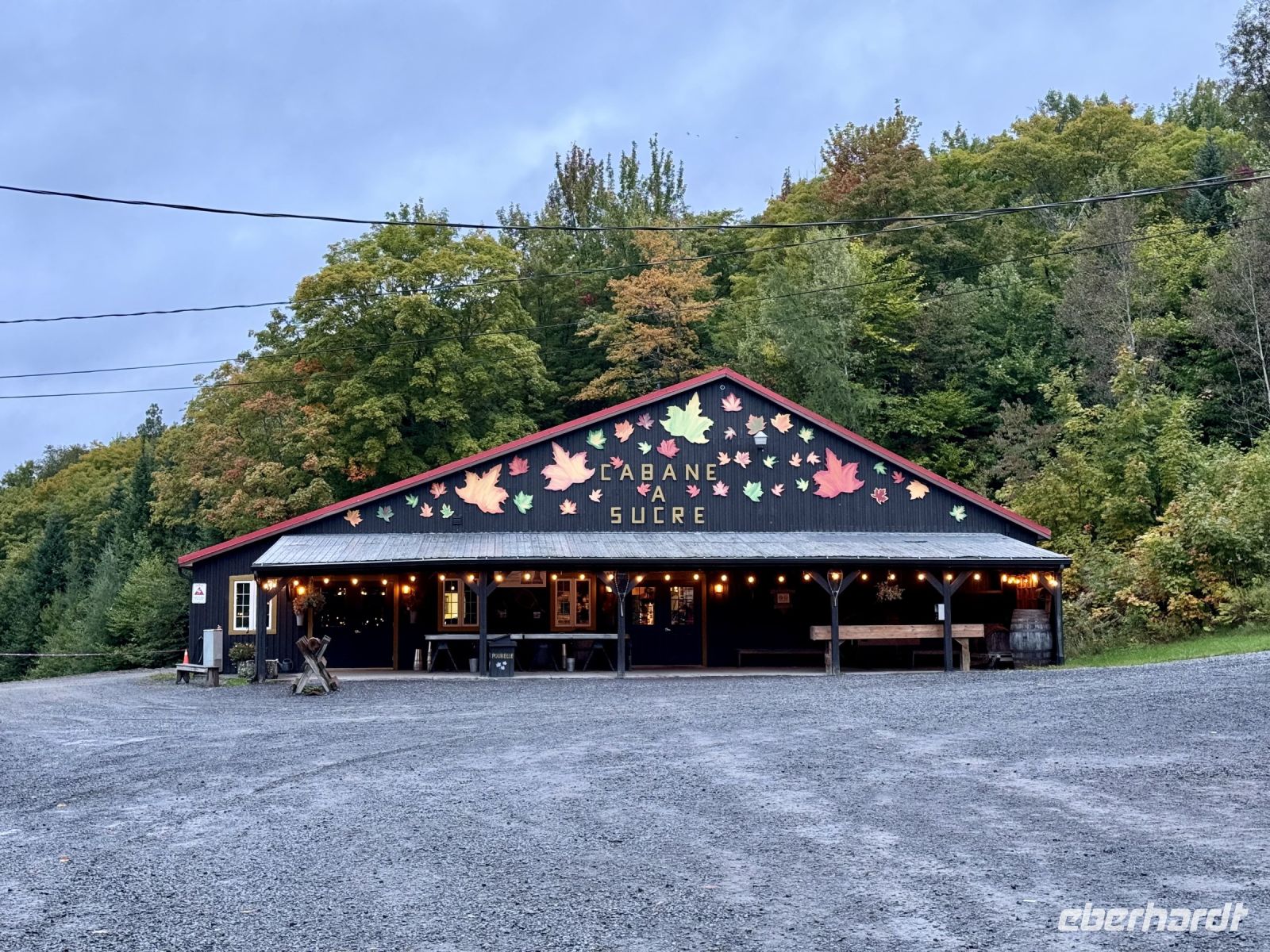 Noch starten wir mit etwas blauem Himmel in den Tag, passend zur Farbe der Flagge von Québec, die über dem Parlamentsgebäude weht. Es ist die erste Station unserer Stadtrundfahrt mit Christine, die uns ihre Wahlheimat bestmöglich präsentieren will. Von hier aus geht es auf die Plains of Abraham. Auf dem Schlachtfeld ist ein ganzes Lager aus Zelten aufgebaut, denn jedes Jahr wird die Auseinandersetzung zwischen Briten und Franzosen nachgestellt. Und wir sind offenbar genau zur richtigen Zeit in Québec. Christine zeigt uns einige schöne, englisch angehauchte Viertel der Oberstadt, damit wir ein Gefühl für das Leben der Einheimischen bekommen. Über die Grande Allée gelangen wir zurück zur Stadtmauer und fahren in die obere Altstadt. Am Luxushotel Château Frontenac steigen wir nochmals aus dem Bus aus und begeben uns zur Dufferin Terrace. Unter uns befindet sich die strategisch wichtige Engstelle des Sankt-Lorenz-Stroms. Dort liegt gerade nur ein kleineres Kreuzfahrtschiff, weshalb es in den Straßen und Gassen vergleichsweise ruhig zugeht. Nun bringt uns Warren schließlich mit dem Bus in die ebenfalls sehr charmante, ja vielleicht sogar noch etwas hübschere untere Altstadt. Diese erkunden wir mit Christine zu Fuß auf einem Spaziergang. Höhepunkte sind dabei das Wandgemälde zur Geschichte der Provinz, die Place Royale mit einer Statue des Sonnenkönigs und die wuselige Rue de Petit-Champlain. Das abrissgefährdete Viertel wurde liebevoll rekonstruiert, sodass wir uns ins Frankreich des 17./18. Jahrhunderts zurückversetzt fühlen. Nachdem wir uns von Christine verabschiedet haben, machen wir hier in der unteren Altstadt auch gleich unsere Mittagspause. Am Nachmittag erkunden wir dann das Gebiet östlich von Québec, fahren also ein Stück aus der Stadt hinaus. Ein Spaziergang durch den Canyon Sainte-Anne steht dabei zuerst auf dem Programm. Über zwei, wahlweise auch drei Hängebrücken erkunden wir die von schönen Wäldern gesäumte Schlucht, in der sich der Rivière Sainte-Anne in die Tiefe stürzt. Die Heilige Anna wird in dieser Region sehr verehrt, weshalb ihr auch die Basilika Sainte-Anne de Beaupré geweiht ist. Dem monumentalen neogotischen Sakralbau statten wir unseren nächsten Besuch ab. An den Montmorency Falls wird es nun ein bisschen düster, ja es fängt sogar leicht zu regnen an. Das war aber nicht mit gebucht! Beeindruckend ist der rund 90 Meter hohe Wasserfall trotzdem. Wir machen erst unten einen Fotostopp und fahren dann zum Manoir Montmorency hinauf, wo wir einen zweiten, etwas längeren Stopp machen. Die Zeit bis zum Abendessen überbrücken wir mir einer kleinen Rundfahrt über die Île d’Orléans, verbunden mit dem Besuch eines kleinen Obstmarktes mit regionalen Erzeugnissen. Solche Bauernmärkte werden in Kanada ganz groß geschrieben und von der Bevölkerung beim Einkaufen bevorzugt (wer es sich leisten kann). Die Insel wirkt auf uns sehr idyllisch. Im Schatten großer Bäume stehen niedliche Häuser. Einige Bewohner können sogar auf die Silhouette der Stadt Québec blicken. Traumhaft. Nun aber los zum Sugar Shack! Am Lac Beauport werden wir bereits erwartet. Wir beginnen mit einer historischen Einführung in die Ahornsirupproduktion, bevor wir zum gemütlichen Teil des Abends übergehen und typische Gerichte der frankokanadischen Küche serviert bekommen. Traditionelle Hausmannskost, verfeinert mit Ahornsirup. Früher wurden auf diese Weise zum Dank die vielen Erntehelfer verköstigt; wir brauchen zum Glück nicht mitzuarbeiten. Als zweiten Nachtisch dürfen wir uns selbst auf Schnee unsere Lollis aus gefrorenem Ahornsirup drehen. Inzwischen ist es dunkel geworden. Draußen flackert ein Lagerfeuer und Lichterketten erhellen den Hof. Zeit für die Rückfahrt zum Hotel. Es war wieder ein langer, aber sehr schöner Tag in Kanada, der dritte unserer großen Rundreise quer durch das Land.