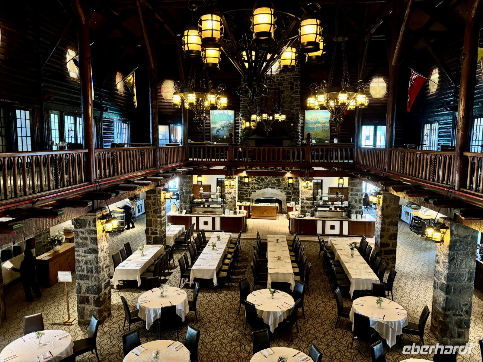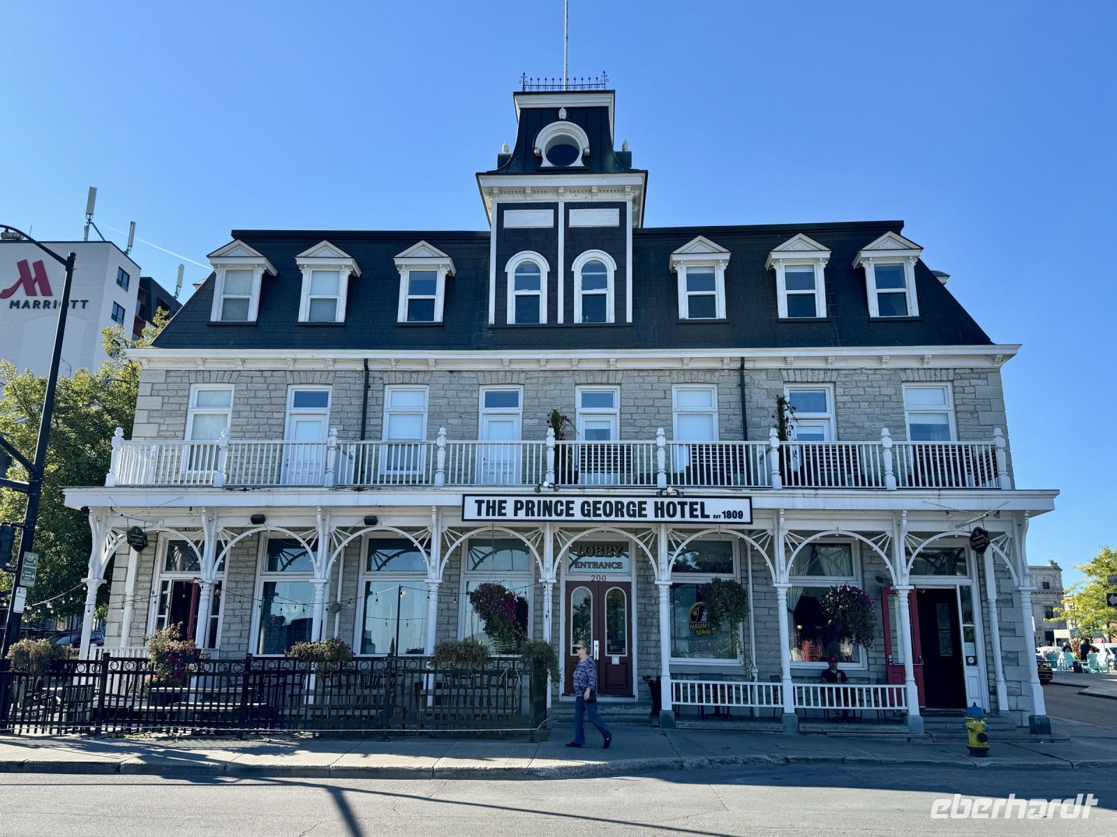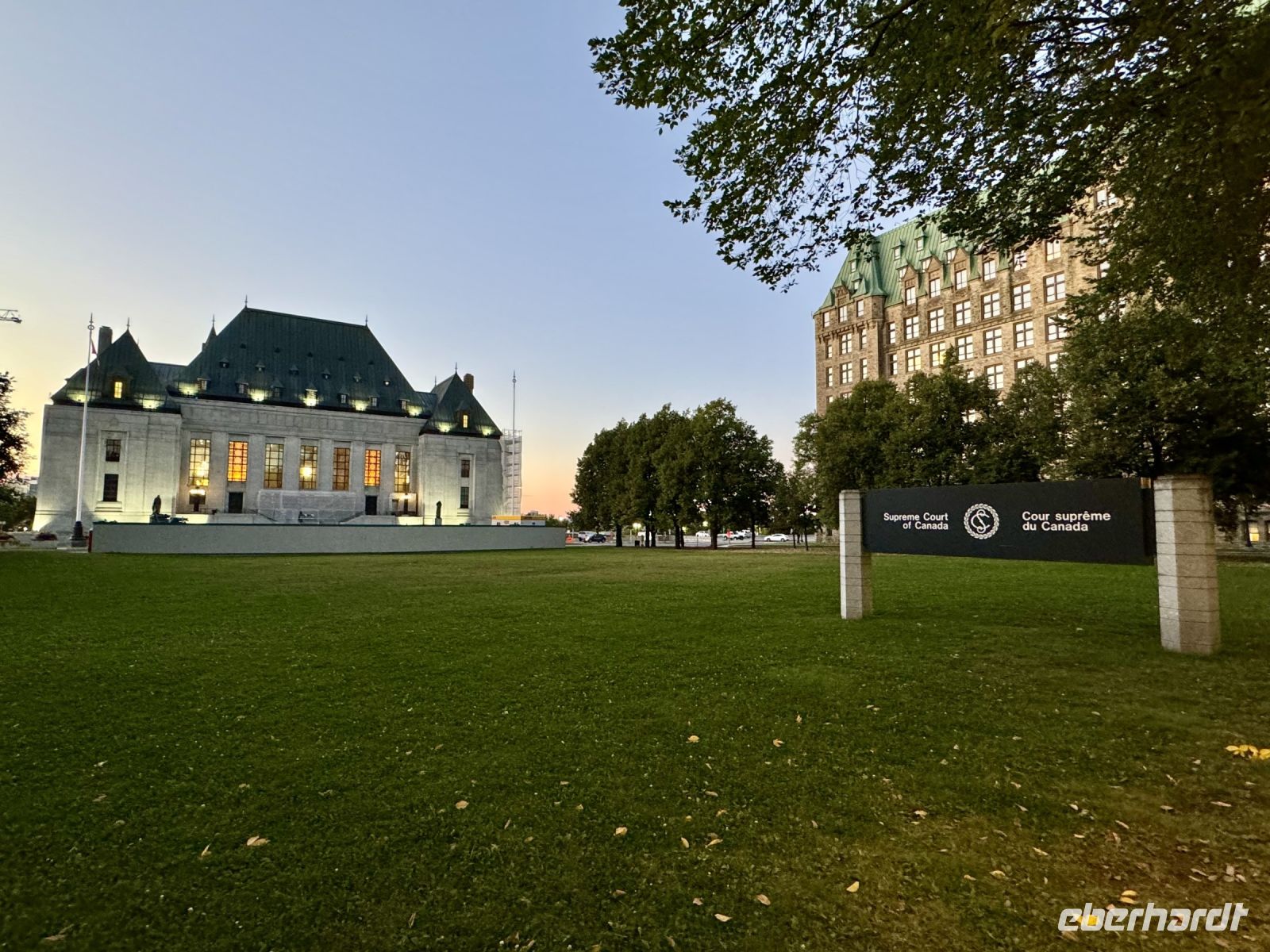 Unser Aufenthalt in der ersten kanadischen Provinz neigt sich langsam dem Ende zu. Die letzte Möglichkeit, von unseren eingerosteten Französischkenntnissen Gebrauch zu machen. Also: Bonjour! Es soll wieder ein schöner Tag werden. Auf Warren wartet am Vormittag aber erstmal eine lange Fahrstrecke. Da braucht er logischerweise zwischendurch dringend einen Kaffee von Tim Hortons. Zum Mittagessen sind wir ins ehrwürdige Château Montebello geladen. Beim 3-Gänge-Menü schlemmen wir mit Blick auf den Ottawa River und die Gartenanlage, lassen uns hier verwöhnen wie einst Helmut Schmidt und Ronald Reagan. Im Anschluss haben wir noch Zeit für eine kleine Erkundung der eindrucksvollen Lobby des aus 10.000 Rotzedern erbauten Eisenbahnhotels im Blockhüttenstil sowie der Außenanlagen des weitläufigen Geländes. Aber nicht nur wir, auch die Tiere im Parc Omega brauchen ihr Mittagessen! Am Eingang wartet schon das verfutterte Wapiti-Empfangskomitee auf unsere Karotten. Mit einem umgebauten Schulbus fahren wir durch den Wildpark und bekommen u. a. auch Wildschweine, Waldwölfe, einen riesigen Elch, niedliche Polarfüchse, Bisons und ganz am Ende natürlich als Höhepunkt Schwarzbären und seltene Zimtbären zu sehen. Während der Pause zwischendurch lässt sich heute auch Herr Biber blicken. Am späten Nachmittag wartet noch die Hauptstadtregion Kanadas auf uns. Unseren Besuch in der Doppelstadt Ottawa/Gatineau beginnen wir mit einem Fotostopp auf der Aussichtsplattform des Nationalmuseums für Geschichte. Genau auf der gegenüberliegenden Seite des Ottawa River sind nämlich fast alle Sehenswürdigkeiten und wichtigen Gebäude wie auf einer Perlenkette aufgereiht: Nationalgalerie, Château Laurier, Rideau-Kanal, das Parlamentsgebäude mit der hübschen Bibliothek und der Supreme Court. Danach fahren wir am Amtssitz des Premierministers vorbei und können heute sogar bis an die Haustür der Generalgouverneurin laufen! Ihr Amtssitz Rideau Hall befindet sich in einer schönen Parkanlage. Beim Schloss Bellevue kämen wir niemals so weit! Das zeigt mal wieder, dass in Kanada alles ein bisschen entspannter zugeht. Auf dem Weg zum Hotel fahren wir noch an der deutschen Botschaft vorbei, die immerhin direkt am Rideau-Kanal liegt. Da kann der Botschafter im Winter immer schön Schlittschuh laufen! Vom Hotel aus machen wir noch einen kleinen Abendspaziergang zum Parlamentshügel und zum Fairmont-Hotel.