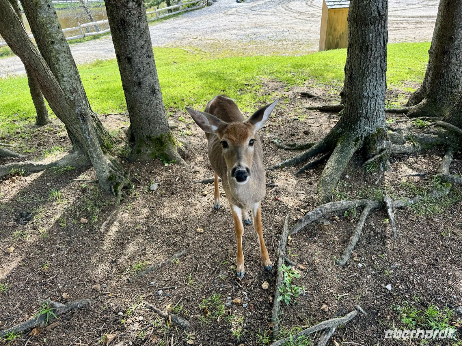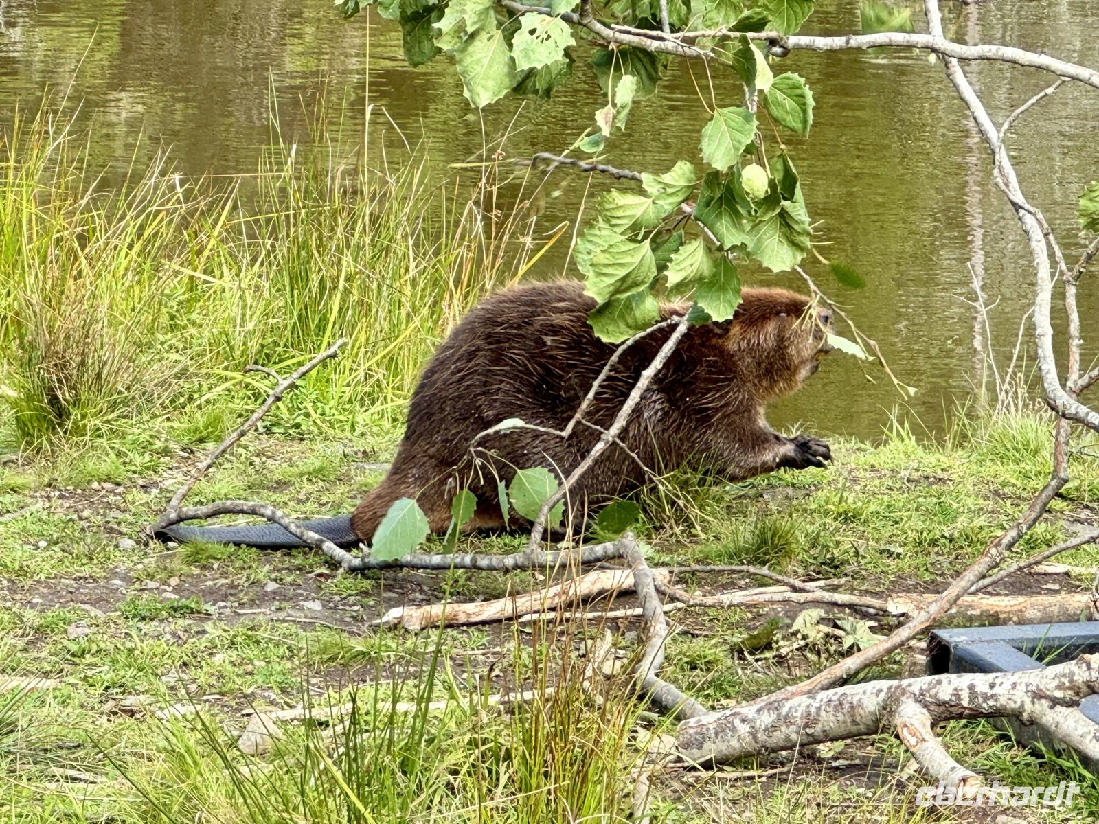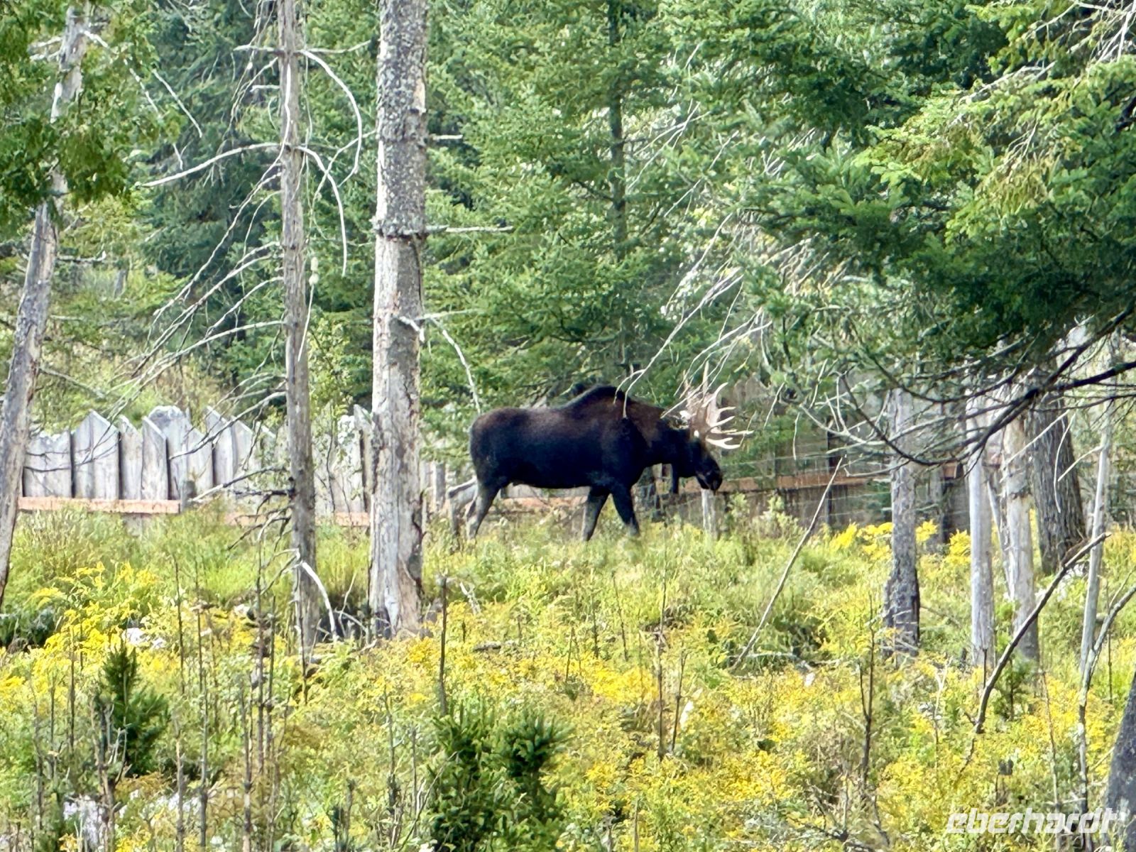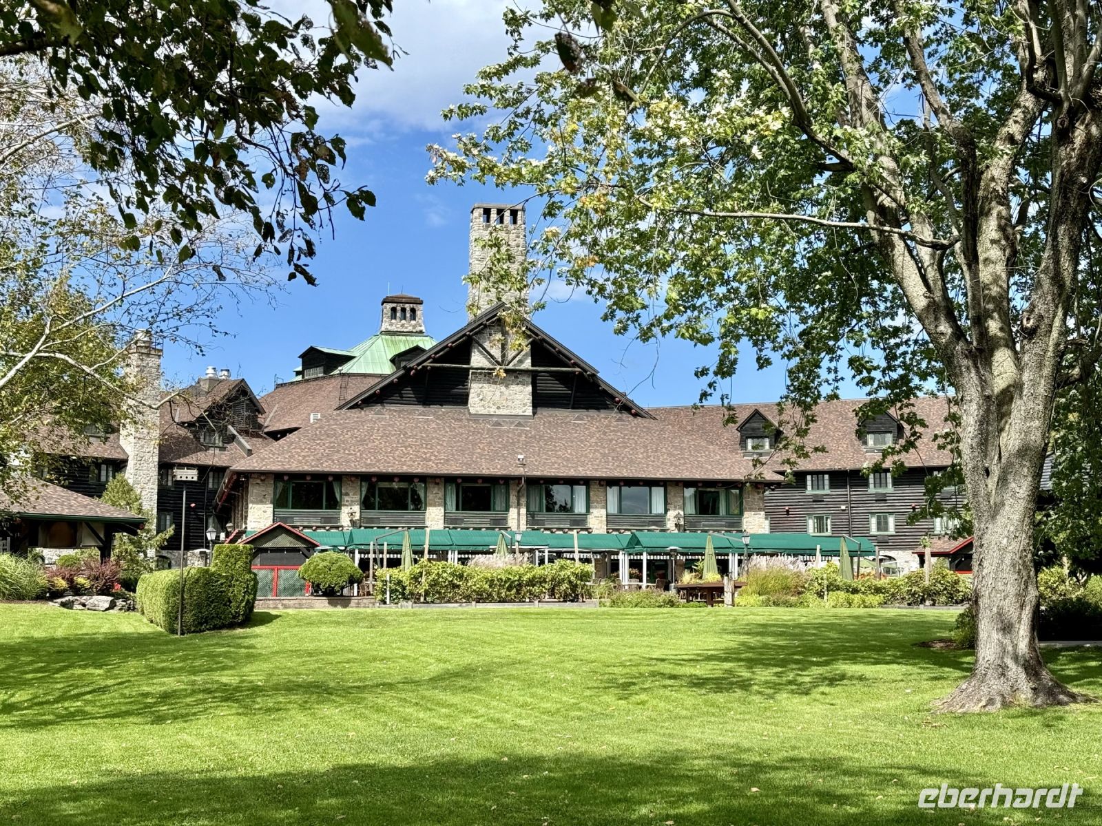 Unser Aufenthalt in der ersten kanadischen Provinz neigt sich langsam dem Ende zu. Die letzte Möglichkeit, von unseren eingerosteten Französischkenntnissen Gebrauch zu machen. Also: Bonjour! Es soll wieder ein schöner Tag werden. Auf Warren wartet am Vormittag aber erstmal eine lange Fahrstrecke. Da braucht er logischerweise zwischendurch dringend einen Kaffee von Tim Hortons. Zum Mittagessen sind wir ins ehrwürdige Château Montebello geladen. Beim 3-Gänge-Menü schlemmen wir mit Blick auf den Ottawa River und die Gartenanlage, lassen uns hier verwöhnen wie einst Helmut Schmidt und Ronald Reagan. Im Anschluss haben wir noch Zeit für eine kleine Erkundung der eindrucksvollen Lobby des aus 10.000 Rotzedern erbauten Eisenbahnhotels im Blockhüttenstil sowie der Außenanlagen des weitläufigen Geländes. Aber nicht nur wir, auch die Tiere im Parc Omega brauchen ihr Mittagessen! Am Eingang wartet schon das verfutterte Wapiti-Empfangskomitee auf unsere Karotten. Mit einem umgebauten Schulbus fahren wir durch den Wildpark und bekommen u. a. auch Wildschweine, Waldwölfe, einen riesigen Elch, niedliche Polarfüchse, Bisons und ganz am Ende natürlich als Höhepunkt Schwarzbären und seltene Zimtbären zu sehen. Während der Pause zwischendurch lässt sich heute auch Herr Biber blicken. Am späten Nachmittag wartet noch die Hauptstadtregion Kanadas auf uns. Unseren Besuch in der Doppelstadt Ottawa/Gatineau beginnen wir mit einem Fotostopp auf der Aussichtsplattform des Nationalmuseums für Geschichte. Genau auf der gegenüberliegenden Seite des Ottawa River sind nämlich fast alle Sehenswürdigkeiten und wichtigen Gebäude wie auf einer Perlenkette aufgereiht: Nationalgalerie, Château Laurier, Rideau-Kanal, das Parlamentsgebäude mit der hübschen Bibliothek und der Supreme Court. Danach fahren wir am Amtssitz des Premierministers vorbei und können heute sogar bis an die Haustür der Generalgouverneurin laufen! Ihr Amtssitz Rideau Hall befindet sich in einer schönen Parkanlage. Beim Schloss Bellevue kämen wir niemals so weit! Das zeigt mal wieder, dass in Kanada alles ein bisschen entspannter zugeht. Auf dem Weg zum Hotel fahren wir noch an der deutschen Botschaft vorbei, die immerhin direkt am Rideau-Kanal liegt. Da kann der Botschafter im Winter immer schön Schlittschuh laufen! Vom Hotel aus machen wir noch einen kleinen Abendspaziergang zum Parlamentshügel und zum Fairmont-Hotel.