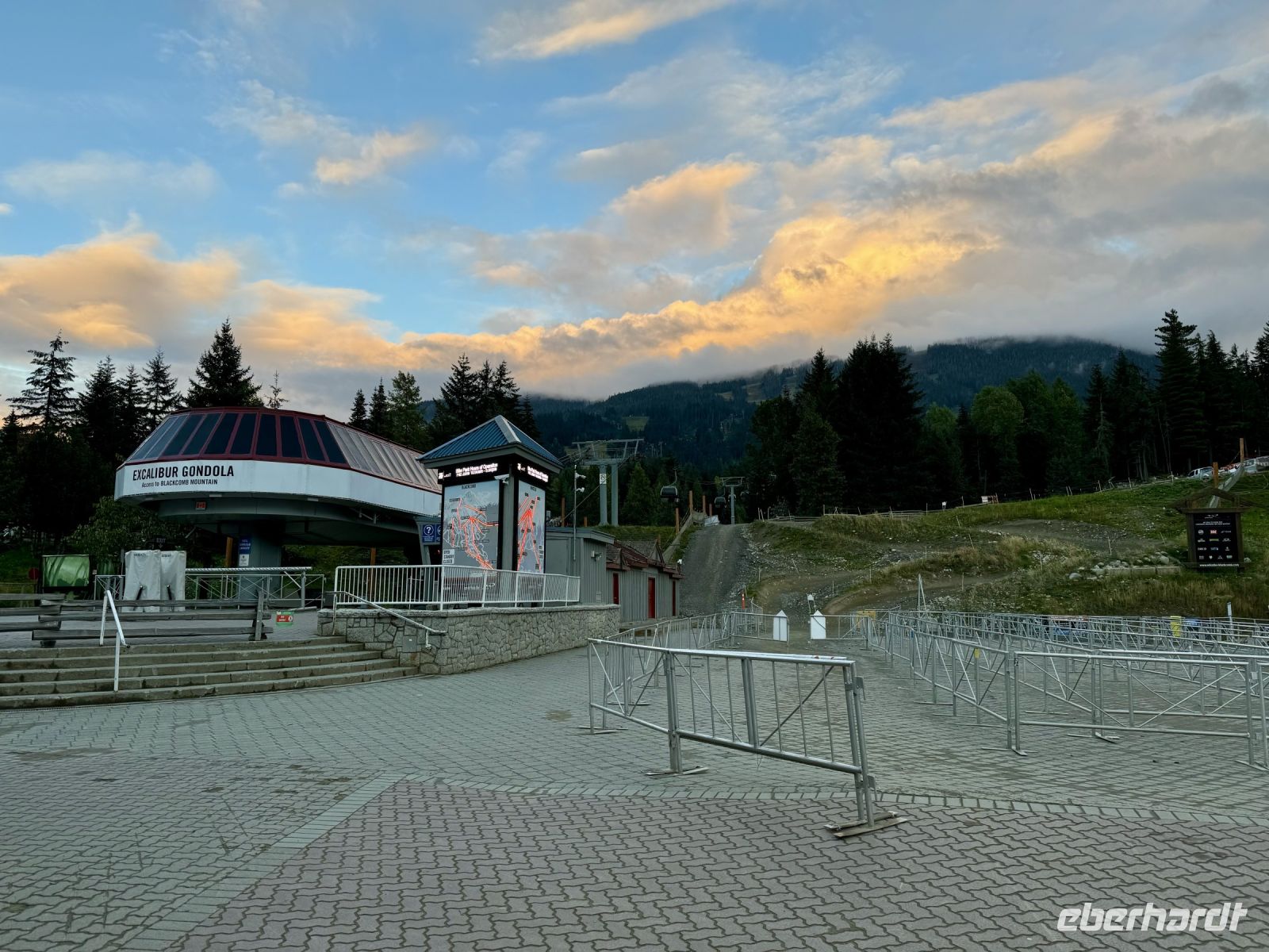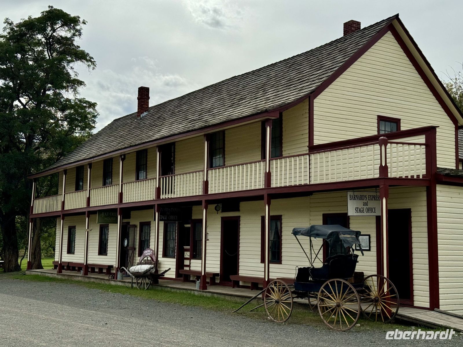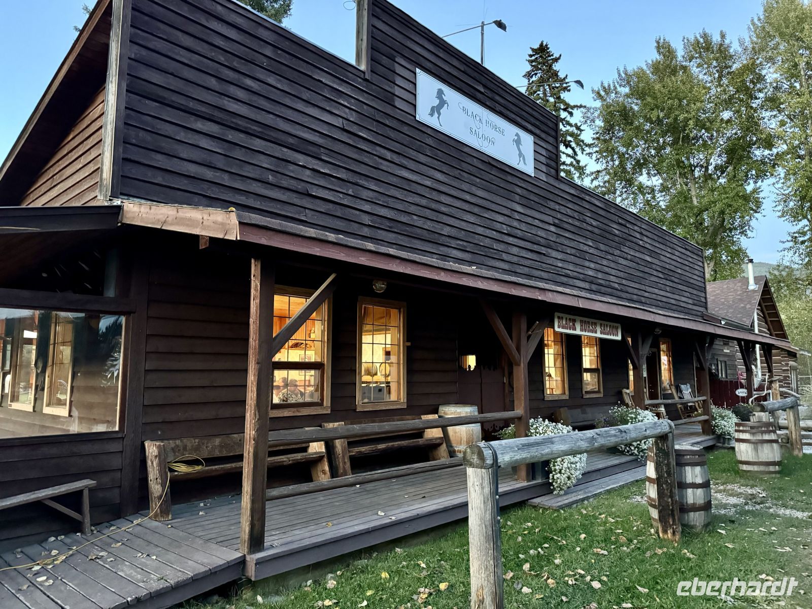 Der Tag beginnt im Gateway Grill mit dem wahrscheinlich besten Frühstücksbuffet auf der ganzen Reise. Meine Gäste sind jedenfalls begeistert. Thematisch bleiben wir uns weiterhin treu und fahren zur nächsten Ranch, nämlich der Hat Creek Ranch. Wir halten nochmals in Kamloops, unter der 88 Jahre alten Holzbrücke „Red Bridge“ im Pioneer Park, die leider wenige Tage später vollständig abbrennt — Brandstiftung. Etwas später erfolgt ein Fotostopp am Kamloops Lake, einem tollen Fotomotiv. Auf der anderen Seeseite fährt gerade einer der endlos langen Güterzüge entlang. Das Schild, das vor Klapperschlangen in der Gegend warnt, nehmen wir zum Glück erst so richtig wahr, als wir wieder in den Bus einsteigen. Bis wir bei der Hat Creek Ranch eintreffen, hat es sich leider etwas zugezogen. Die Landschaft bleibt weiterhin karg. Umso farbenfroher sind die historischen Kostüme der beiden Gästeführerinnen, die uns freudig begrüßen. Zuerst werden wir durch die Räume des alten Hotels geführt — eine wilde Mischung aus Saloon, Spielhölle, feinem Restaurant mit teurem Porzellan und Zahnarztpraxis. Ich kann mich nicht entscheiden, ob ich gern mal per Zeitmaschine in diese Vergangenheit zurückreisen würde oder lieber nicht. Die Sitten und Gebräuche der hiesigen First Nations stehen bei einem Besuch auf der Hat Creek Ranch auch immer mit auf dem Programm und bilden einen interessanten Kontrast. Wir bekommen zum Abschluss noch ein typisch kanadisches Mittagessen — Burger, Salat, Cookie — bevor wir unsere Fahrt in Richtung Fraser Canyon fortsetzen. Mit einem Fotostopp oberhalb des Flusses endet unser Ausflug in die Goldgräberzeit. Es folgt eine schnelle technische Pause in Lillooet, dann geht es auf der kurvenreichen Duffey Lake Road quer durch das Küstengebirge nach Whistler. Das Landschaftsbild hat sich wieder zu grünen Wäldern gewandelt, allerdings mit einigen Regenschauern als Kehrseite. Beim Fotostopp am Duffey Lake selbst und später bei unserem Abendspaziergang durch den Olympiaort Whistler lässt sich die Sonne jedoch wieder blicken, ja sorgt sogar für einen sehr schönen Abendhimmel mit intensiven Rot- und Goldtönen. Obgleich das Abendessen heute in Eigenregie erfolgt, winkt sich später fast die Hälfte der Gruppe in der Old Spaghetti Factory zu.