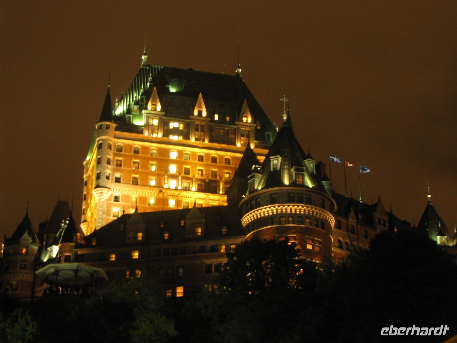 Zum Frühstück waren wir bereits recht gut an die neue Zeitzone gewöhnt. Wir unternahmen eine Stadtrundfahrt durch Montreal mit der örtlichen Reiseleiterin Regina. Zu Fuß erkundeten wir die sogenannte Unterstadt, unterirdische Passagen, die sich über die gesamte Innenstadt erstreckten. Beeindruckend war auch die Kathedrale Notre Dame. Nach dem Mittag fuhren wir entlang des St.-Lorenz-Stroms weiter in Richtung Quebec. Unterwegs hielten wir an einem Supermarkt, wo ich kanadischen geräucherten Schinken und Ahornkekse für alle zum Probieren kaufte. In Quebec waren einige Straßen in der Innenstadt gesperrt, da am nächsten Tag dort ein Fahrradrennen stattfand. Wir unternahmen also vor dem Abendessen einen Spaziergang zum Hafen, wo gerade die Queen Mary II lag. Wir hatten einen wunderschönen Blick auf das Schlosshotel Chateau Frontenac. Das Abendessen fand im Restaurant Les Voutes du Cavour statt, ein schmackhaftes 4-Gänge-Menü. Anschließend fuhren wir in unser zentrales Hotel in Quebec.