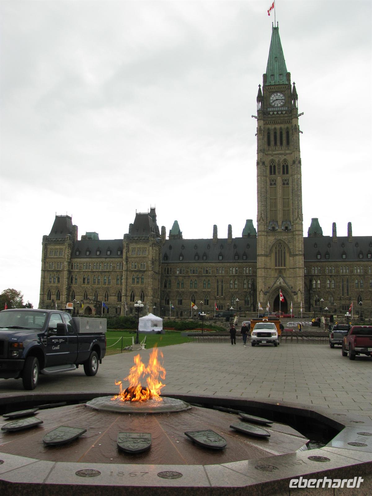 Das Frühstück war hier zum ersten Mal ein Menü mit Wurst, Käse, Brot und Rührei ? aber nicht minder schlecht. Wir packten mal wieder unsere Koffer und schauten uns den Teil von Ottawa an, den wir noch nicht gesehen hatten. Dass diese Stadt zur Hauptstadt auserkoren wurde, ist Königin Victoria zu verdanken. Viele andere große Städte wie Quebec, Kingston oder Toronto hatten sich für diesen Titel beworben ? klug entschied sich die Königin für eine ganz andere Stadt.