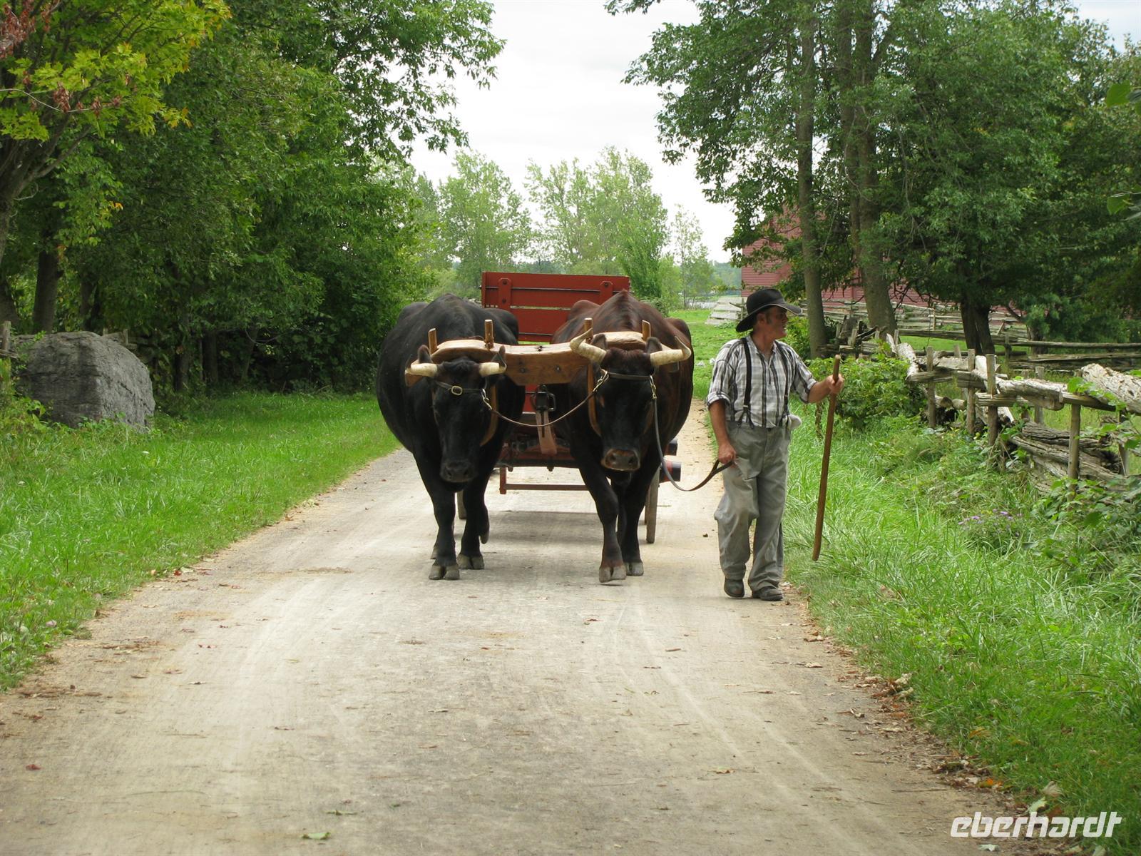 Wir spazierten um das Parlamentsgebäude und pausierten für einen kurzen Kaffeeklatsch mit einigen versteinerten Damen. Später fuhren wir zum Upper Canada Village, einem historischen Freilichtmuseum in der Nähe von Morrisburg. Wir bekamen einen Einblick in das Leben der Kanadier um das Jahr 1860. In der Schule wurden wir herzlich von der Lehrerin begrüßt, viele Hausfrauen hießen uns in ihren Häusern willkommen und in der Kapelle fand gerade eine Andacht statt. Es gab sogar eine Scheune mit einem kleinen freilaufenden Ferkelchen.