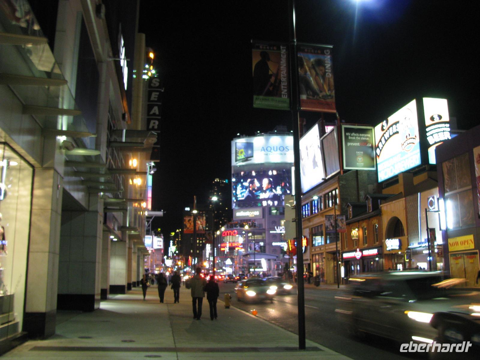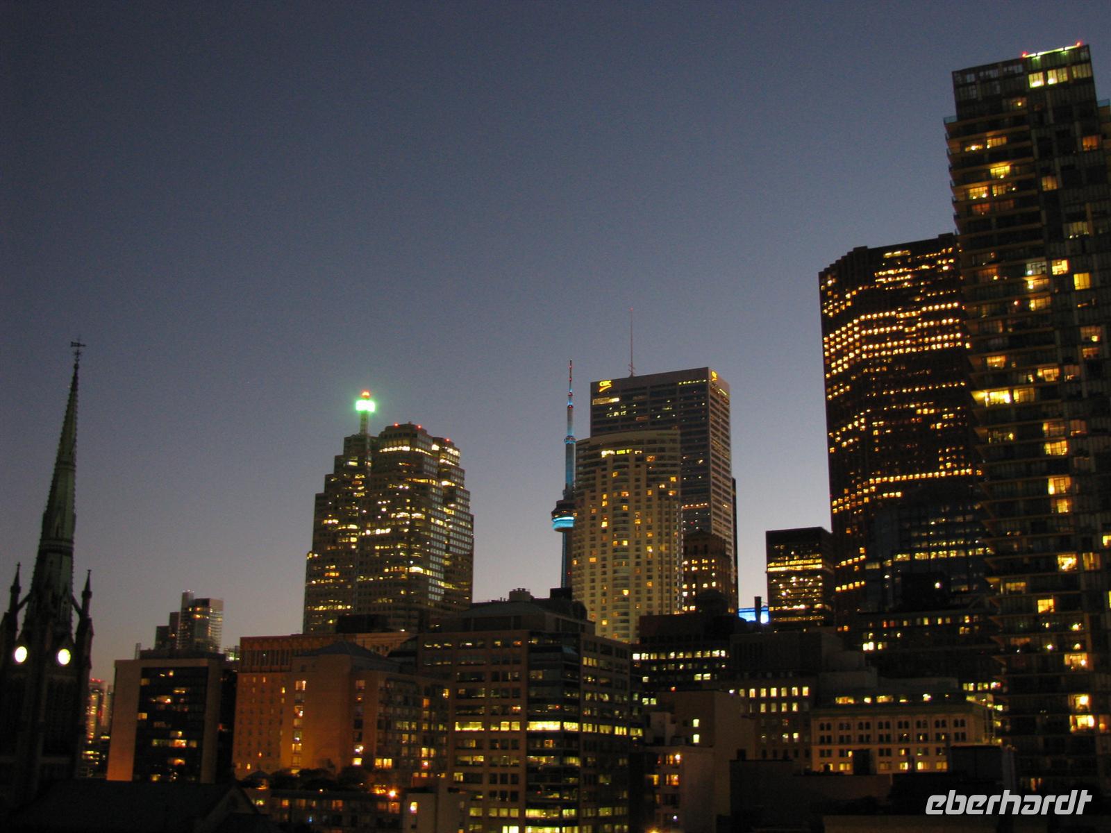 Am Nachmittag hatten wir Freizeit, um die Stadt auf eigene Faust zu erkunden. Ich half einem Teil der Gruppe, eine Hafenrundfahrt zu buchen und bummelte mit vier interessierten Gästen durch die Straßen. Und wieder kehrten wir ins Hard Rock Café ein. Wir trafen uns mit der gesamten Gruppe im Hotel zur Fahrt zum Abendessen. Das Restaurant Badali's hatte eine hervorragende italienische Küche. Nach dem Essen spazierten wir vor der Kulisse Torontos (und des angestrahlten CN-Towers) zum Hotel zurück.