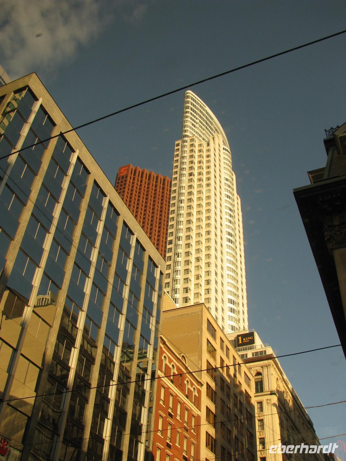 Am Nachmittag machten wir einen kurzen Fotostopp an der Garnisonsstadt Kingston und legten eine Pause im ?Big Apple? ein. Nicht New York City ist gemeint, sondern ein kleines Restaurant mit eigener Apple Pie-Fabrik. Viele Gäste statteten sich mit einem solchen Stück für das Kaffeetrinken aus. Später erreichten wir endlich Toronto, die größte Stadt Kanadas. Nachdem wir die Zimmer unseres sehr zentral gelegenen Hotels "Holiday Inn Express" bezogen hatten, spazierte ich mit einigen Gästen in die Innenstadt. Wir kehrten in ein Hard Rock Café ein und stießen an auf die großartige Metropole Toronto!