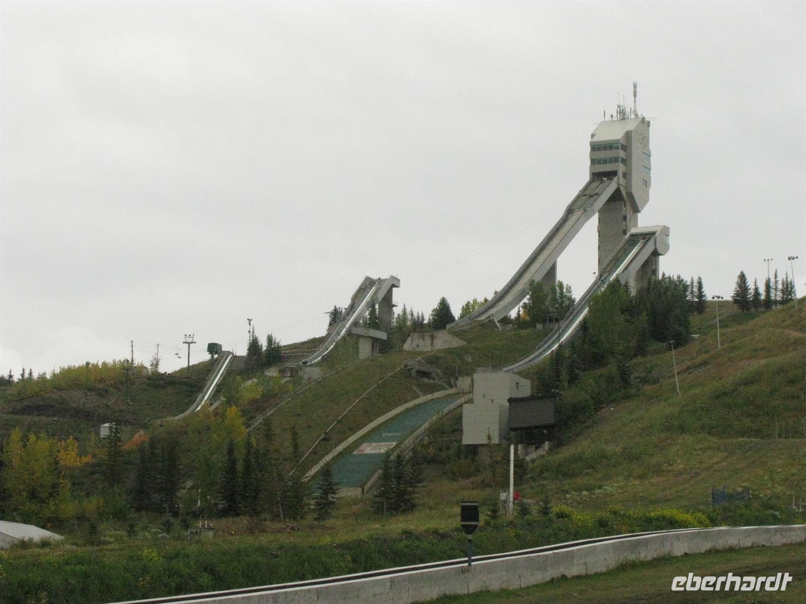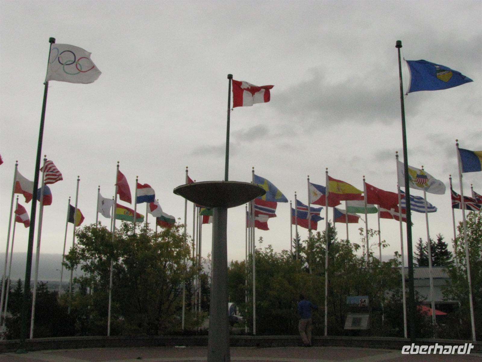 Ein wenig zeitiger als sonst begann der Tag. Wir stärkten uns bei einem reichhaltigen Frühstück im benachbarten Restaurant "Applebee" und brachen anschließend zum Flughafen auf. Am Gruppenschalter war bereits alles für uns vorbereitet, trotzdem dauerte die gesamte Check-In-Prozedur eine gute Stunde. Zur Freude aller Gäste hatte niemand Übergepäck. Jetzt mussten wir endgültig von Brigitta und Phil verabschieden. Ein wenig wehmütig, aber gespannt auf den zweiten Teil der Reise traten wir den ca. vierstündigen Flug nach Calgary an. An den Gepäckbändern wurden wir bereits von der Reiseleiterin Marita begrüßt. Bepackt mit unseren Koffern liefen wir zu unserem Bus. Der Busfahrer Cong begrüßte uns freundlich und zeigte uns sichtlich stolz seinen neuen Bus mit super-großem Sitzabstand. Das erste Ziel war die Stadt Calgary. Marita zeigte uns die schönsten Stellen der Olympiastadt und besuchte mit uns die Skisprungschanzen. Durch wunderschöne Landschaft mit grünen Flächen im Vordergrund uns hohen Bergen im Hintergrund. Am frühen Abend erreichten wir unsere Unterkunft im Örtchen Canmore, die "Rocky Mountain Ski Lodge". Wir bezogen unsere großzügigen Zimmer und aßen zu Abend im gegenüberlieenden Restaurant "Sage Bistro". Höhepunkt war der amerikanische Apfelstrudel als Nachtisch.