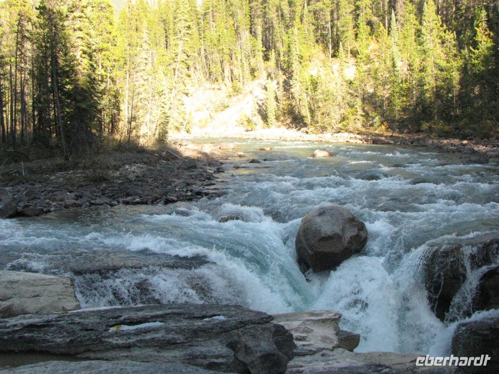 Eine weitere Überraschung wartete auf uns beim Frühstück: Schwarzbrot! Schon nach acht Tagen ohne Schwarzbrot erfreuten sich alle an diesem Frühstück. Auf dem Tagesprogramm standen viele Punkte: Zuerst besuchten wir im Banff-Nationalpark den Johnston Canyon. Nach einem kurzen Spaziergang entlang des Canyons erreichten wir einen schönen Wasserfall. Anschließend erreichten wir den benachbarten Nationalpark Yoho und besichtigten den smaragdgrünen See Emerald Lake. Es war wirklich eine wunderschöne Farbe, von der man überwältigt wurde. Ähnlich schön wäre es sicherlich auch am Lake Louise gewesen, doch leider machte uns der indianische Wettergott einen Strich durch die Rechnung: Bei Regen liefen wir schnurstracks in das schöne Eisenbahnhotel Chateau Lake Louise und waren wieder einmal fasziniert von der schlichten, aber dennoch luxuriösen Inneneinrichtung. Am Nachmittag besichtigten wir den hübschen Ort Banff, wo es viele Möglichkeiten zum Einkaufen gab. Zu Abend aßen wir im schweizerisch-italienischen Restaurant Ticino, wo wir einmal mehr hervorragendes Essen serviert bekamen.