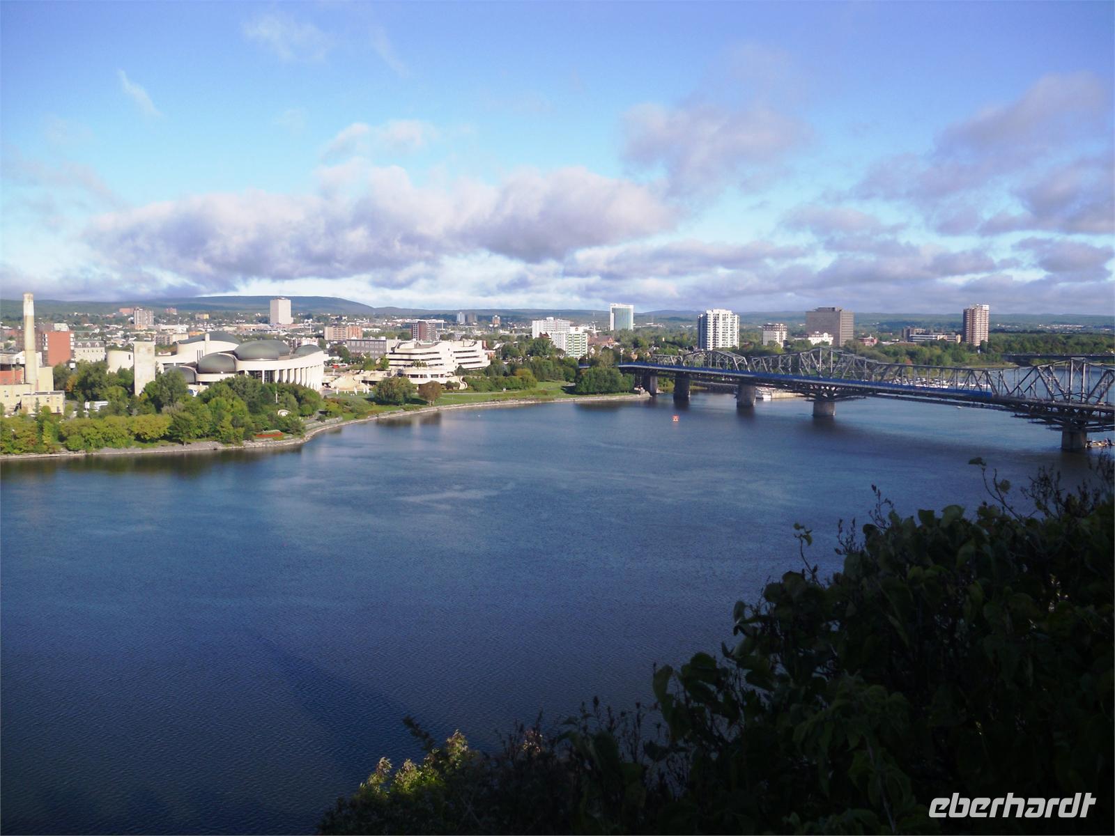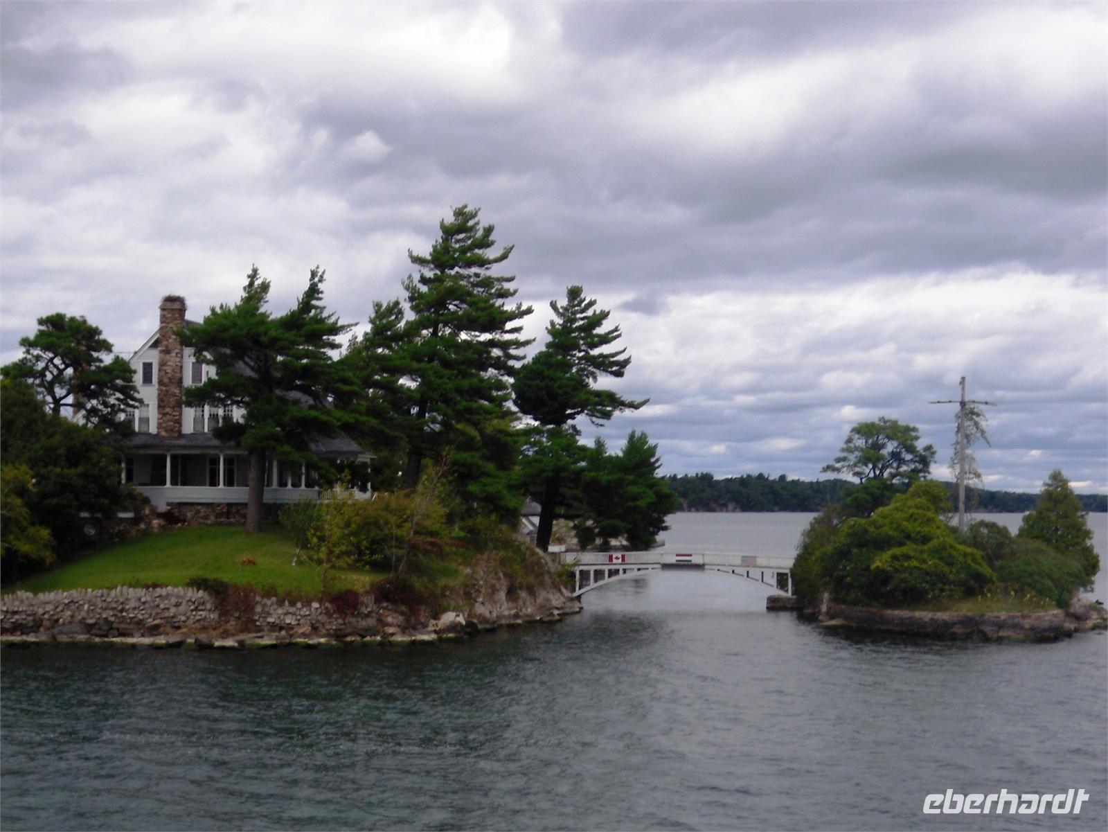 Wir laufen zum Parliament Hill, von dem aus man einen sagenhaften Blick auf den Ottawa River und das Museum für Völkerkunde genießen kann. Der Parliament Hill besteht aus den neogotischen Gebäuden des kanadischen Parlaments, welche Mitte des 19. Jahrhunderts aus einer Militärskaserne hervorgingen. Das auffallendste Gebäude ist der mittlere Block (Centre Block) mit seinem 92 Meter hohen Peace Tower. Schön anzusehen ist außerdem die Parlamentsbibliothek, die sich hinter dem Hauptgebäude befindet. Jährlich werden rund drei Millionen Besucher gezählt. Nachdem wir den Parliament Hill ein Mal umrundet und unsere Speicherkarte mit neuen Fotos versehen haben, steigen wir in den Bus und fahren nach Upper Canada Village. Dieses kleine Dorf aus den 1860er Jahren zieht uns sofort in seinen Bann und versetzt uns im Handumdrehen in die Zeit des mittleren 19. Jahrhunderts zurück. Die niedlichen Häuschen eignen sich herrlich als Fotomotiv und wir können uns den Bäcker, den Tischler, die Lehrerin, den Schneider und den Farmer vor die Linse holen. Zurück im 21. Jahrhundert, setzen wir unsere heutige Fahrt fort. Unser nächstes Ziel sind die 1.000 Islands.