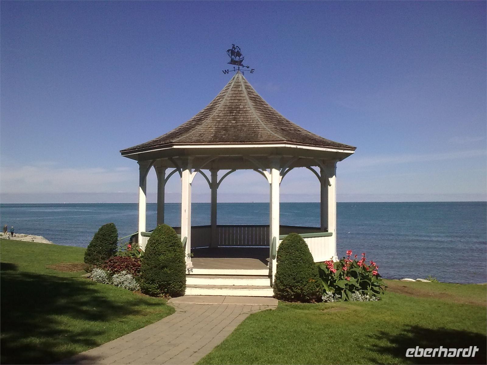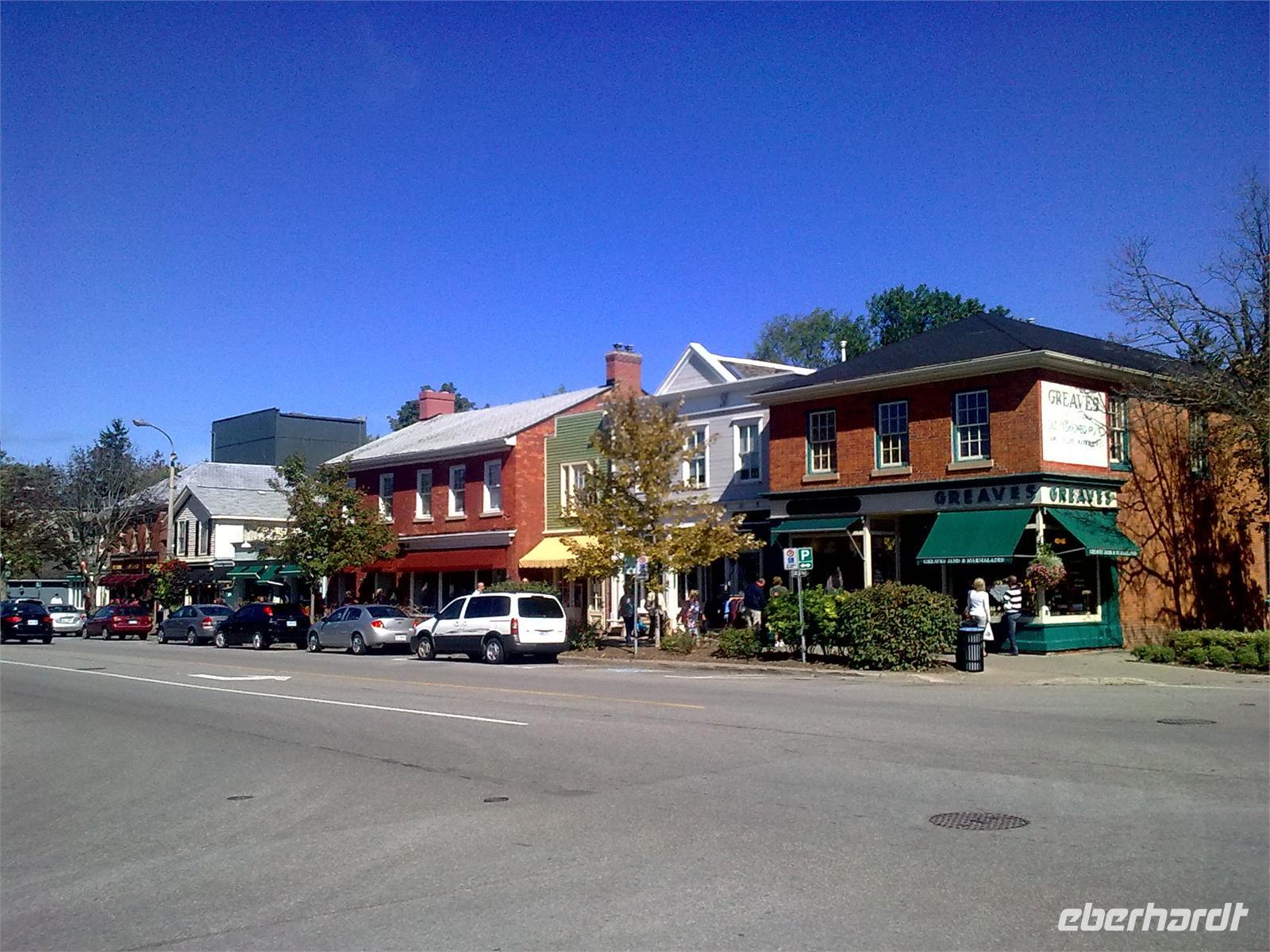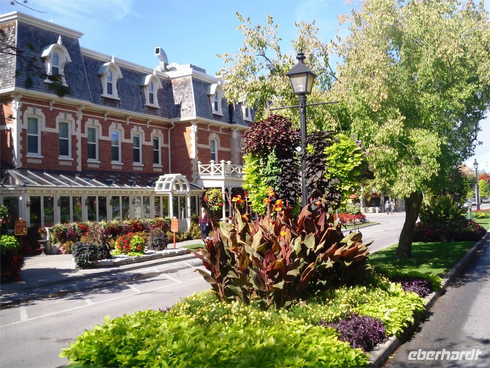 Heute verlassen wir die größte Stadt Kanadas bei strahlendem Sonnenschein und blauem Himmel. Auf dem Programm steht zunächst das kleine Künstlerdörfchen Niagara on the Lake. Wir parken etwas außerhalb der Stadt und nehmen den bequemen Shuttlebus ins Zentrum.