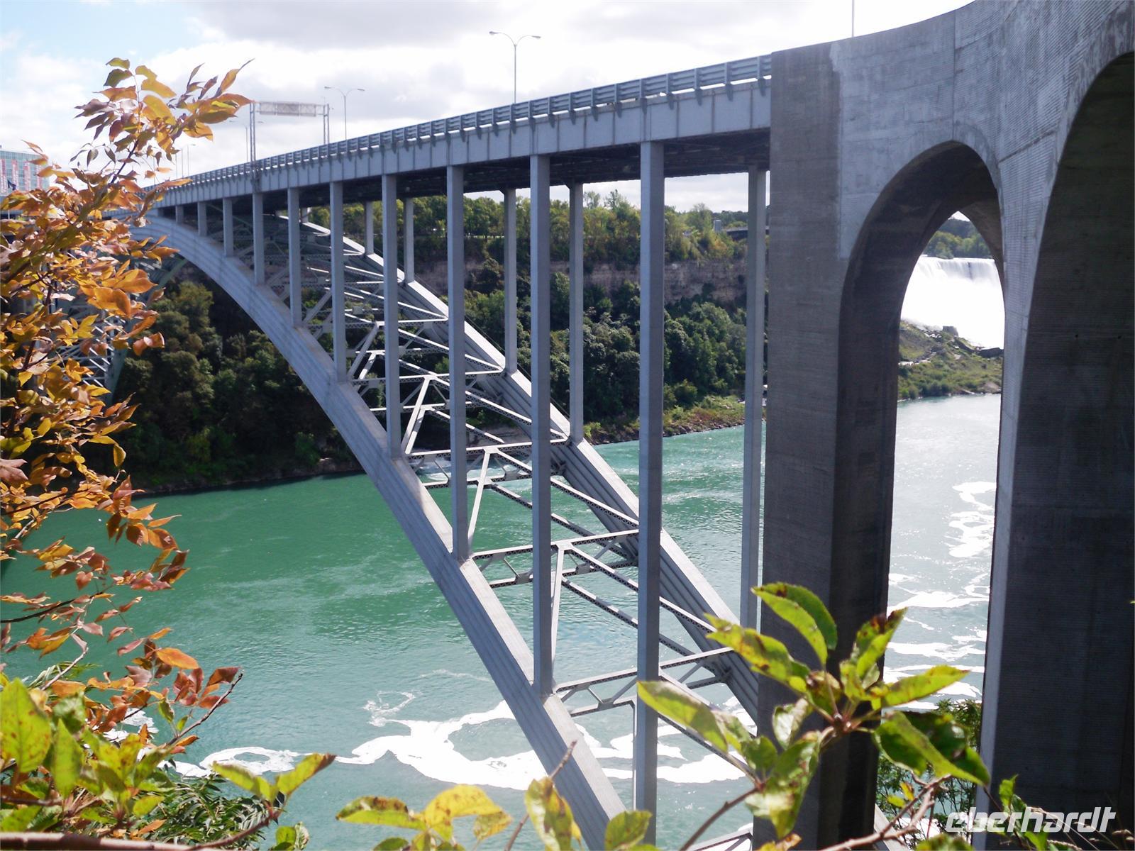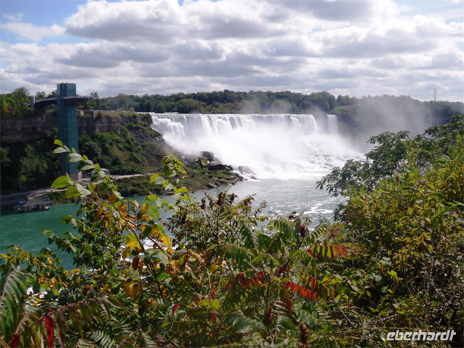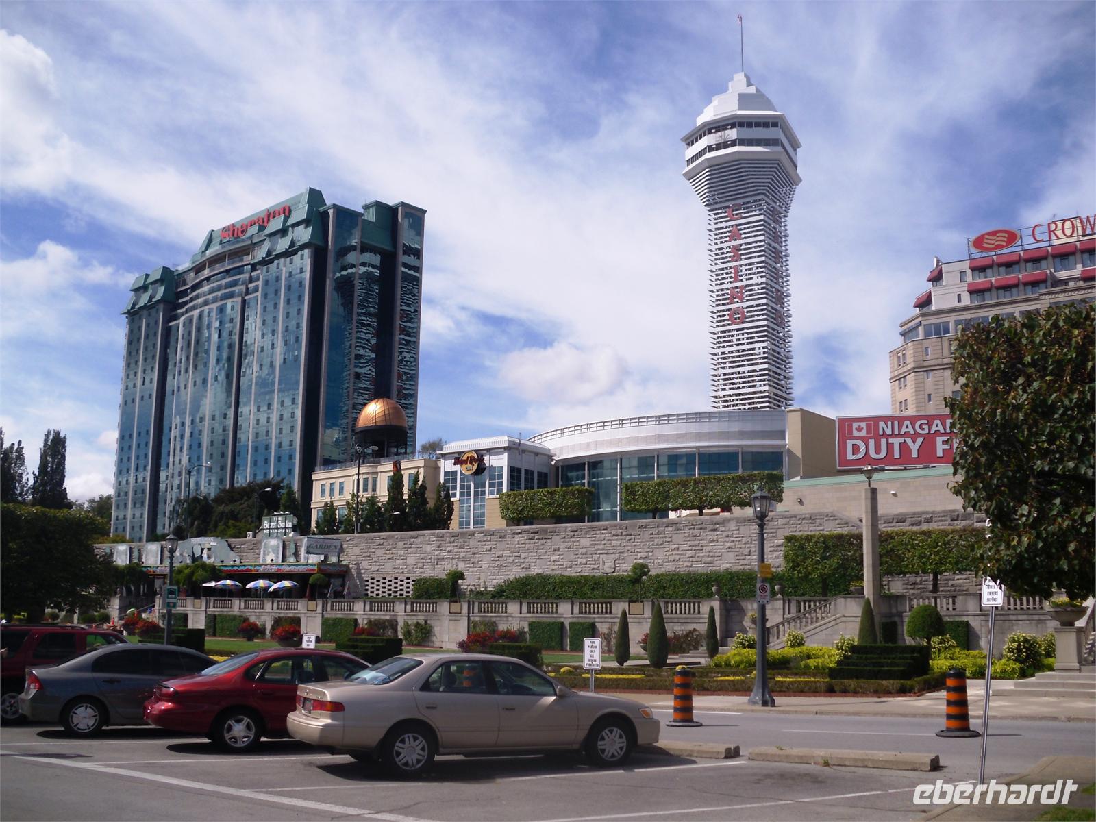 freuen wir uns doch alle auf die bevorstehende Bootsfahrt. Und dann geht es los. Wir fahren bis kurz vor die Fälle und bekommen die gewaltige Macht der Wassermassen zu spüren. Ein feiner Nieselregen sorgt für einen wunderschönen Regenbogen. Nach 40 Minuten ist der Wasserausflug zu Ende. Wir laufen gemeinsam entlang der Promenade zum Table Rock. Dieses Gebäude steht genau dort, wo sich die kanadischen Fälle zu Boden stürzen. Von hier aus hat man ebenfalls eine fantastische Sicht. Danach fahren wir zum Hotel „Michael's Inn" und haben etwas Freizeit bis zum Abendessen. Dieses findet heute im Skylon Tower statt. Nach der Auffahrt auf den 160 Meter hohen Turm, kann man beide Wasserfälle auf einmal betrachten und auch das amerikanische Hinterland erkennen. Was für ein Ausblick! Und dann noch das leckere Essen vom Buffet. Dieser Abend ist äußerst gelungen. Gekrönt wird er nur noch durch das 21:00 Uhr stattfindende Feuerwerk, welches über den bunt beleuchteten Wasserfällen gezündet wird. Traumhaft! Beim Zurücklaufen zum Hotel wagen wir noch einen Abstecher auf die Clifton Hill, dem Las Vegas von Niagara Falls.