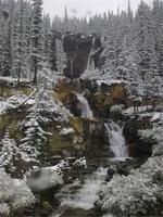 Im Gegenteil, es hat sogar noch angefangen zu schneien. Nach der Mittagspause fahren wir zu den Bridal Veil Falls im Banff-Nationalpark, woraufhin wir diesen verlassen und entlang des Icefield Parkways in den Jasper-Nationalpark einfahren. Am Nachmittag kommen wir am Athabasca-Informationscenter an, von wo aus wir eigentlich mit dem Schneemobil in Richtung Athabasca-Gletscher starten wollen. Leider machen uns das trübe Wetter und der Schneefall einen Strich durch die Rechnung. So verbringen wir die nächsten 40 Minuten im Informationscenter. Auf unserer Weiterfahrt sehen wir sechs Dickhornschafe und einen kleinen Grizzlybären, der in sicherer Entfernung durch den Wald huscht. Nach einem kurzen Aufenthalt am Athabasca-Wasserfall, kommen wir am zeitigen Abend in unserem Hotel „Sunwapta Falls Resort" an. Hier reicht man uns zur Begrüßung heiße Schokolade, die wir angesichts der niedrigen Temperaturen gern entgegennehmen. Einige von uns besuchen noch die Sunwapta Falls, die sich in zehnminütiger Entfernung vom Hotel befinden. Wir freuen uns schon auf das Barbecue im hoteleigenen Restaurant. Lachs, Forelle, Steak oder Hühnchen stehen zur Auswahl. Dazu werden Caesar Salad, Ofenkartoffel mit Sour Cream, grüne Zwiebeln, Speck, Gurke, Tomate und geröstetes Brot gereicht. Danach gibt's noch Apfelstrudel mit Vanilleeis. Manch einer schwört sich, nie wieder im Leben so viel zu essen. Abwarten... Zur Krönung des heutigen Tages dürfen wir uns noch einen Vortrag von Heidi anhören, die viele Informationen über das Leben eines Bärs, Wapitis und Dickhornschafes Preis gibt. Heute ist nun Bergfest - Wahnsinn, wie schnell die Zeit vergeht.