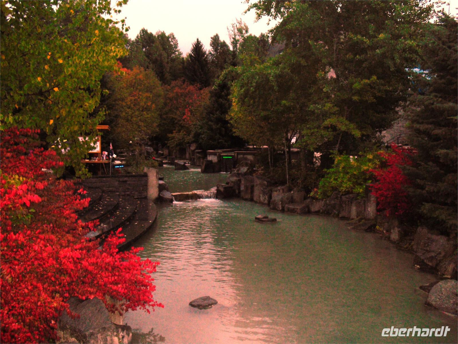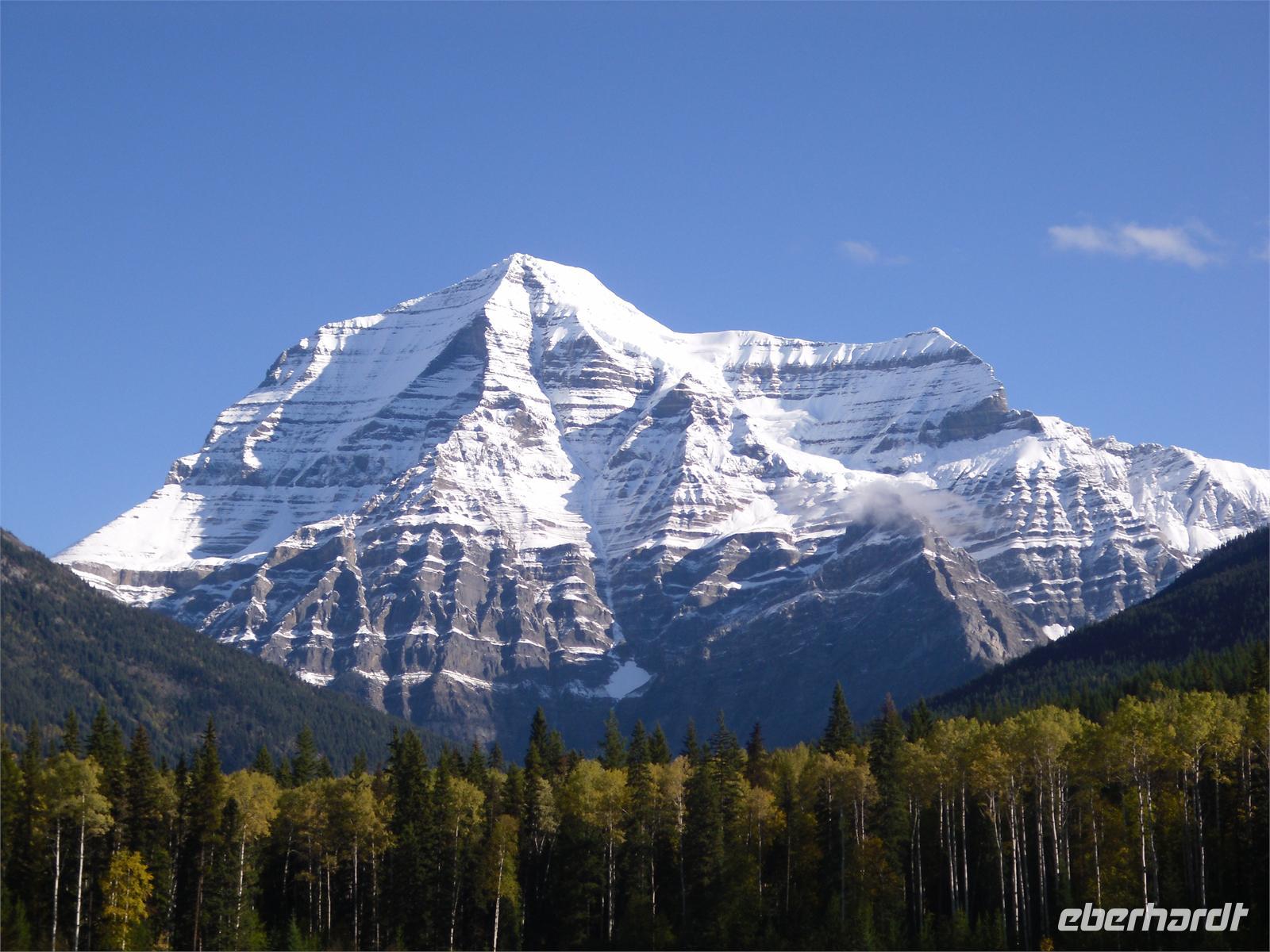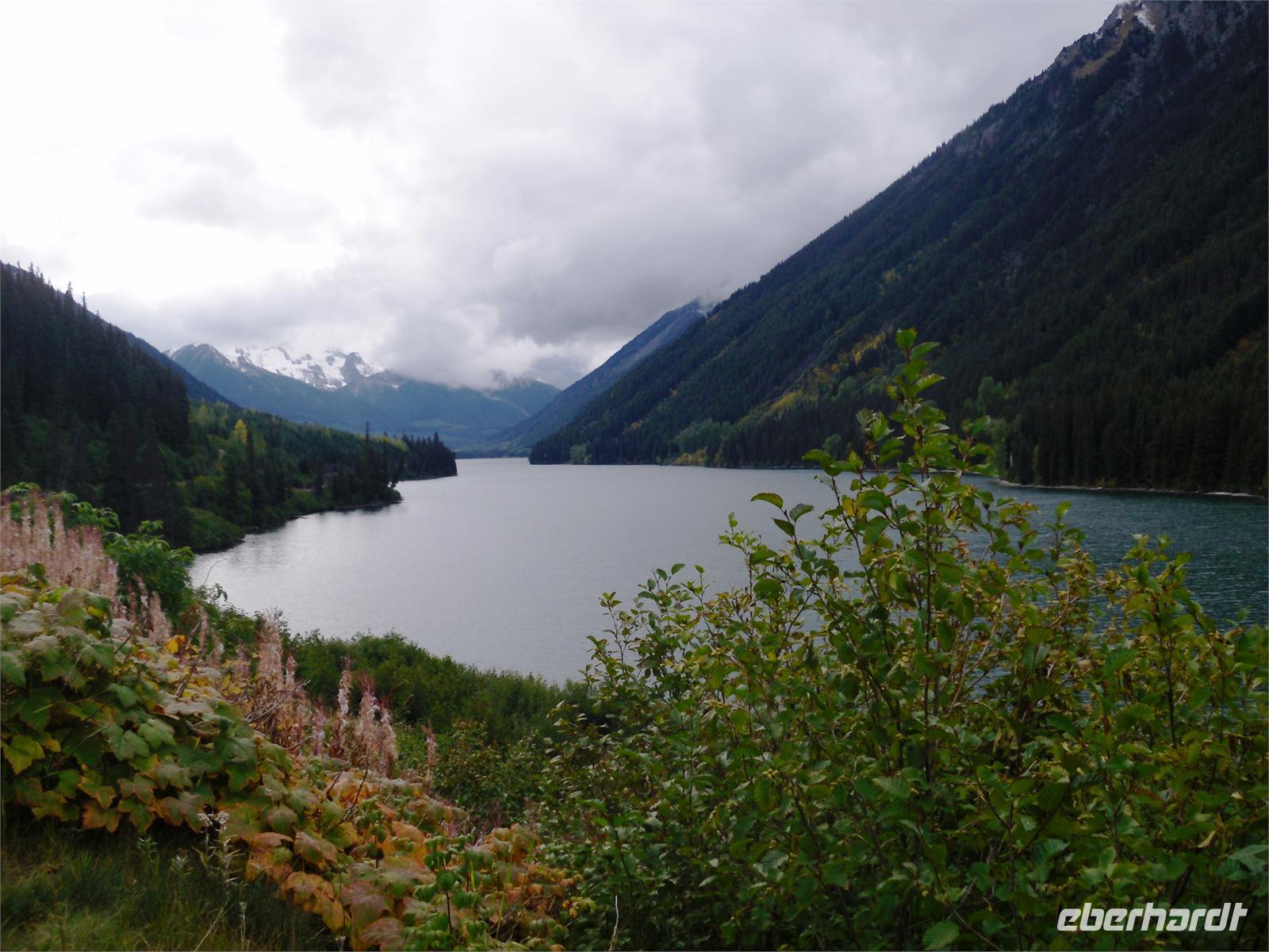 Wir verlassen damit die Provinz Alberta und fahren in die Provinz British Columbia ein, die wir bis zur Heimreise auch nicht mehr verlassen werden. Auf unserer Fahrt zum Mount Robson kommen wir nicht nur am Yellow Head Lake vorbei, sondern auch am Lake Whitney. Wir fahren entlang des Flusses Fraser und legen einen Fotostopp am Moose Lake ein. Dann kommen wir am Mount Robson an, der sich ganz plötzlich im Sonnenlicht badend vor uns aufbaut. Welch herrlicher Anblick! Er ist der höchste Berg im kanadischen Teil der Rockies, dessen Gipfel jährlich nur von einer Hand voll Bergsteiger erreicht wird. Hier gibt es auch ein hübsches Informationszentrum, indem wir uns mit vielen interessanten Prospekten eindecken. Mit vielen hübschen Fotomotiven in der Tasche machen wir uns auf zu den Rearguard Falls. Hier möchten wir eigentlich die berühmten Lachssprünge beobachten, aber leider ist weit und breit kein Fisch in Sicht. Trotzdem ist der Rearguard Fluss mit seinem reißenden, türkisblauen Wasser und umgeben von sich langsam gelb färbenden Bäumen ein schöner Anblick. Scheinbar noch beeindruckender sind aber die zwei riesigen Rotkappen,