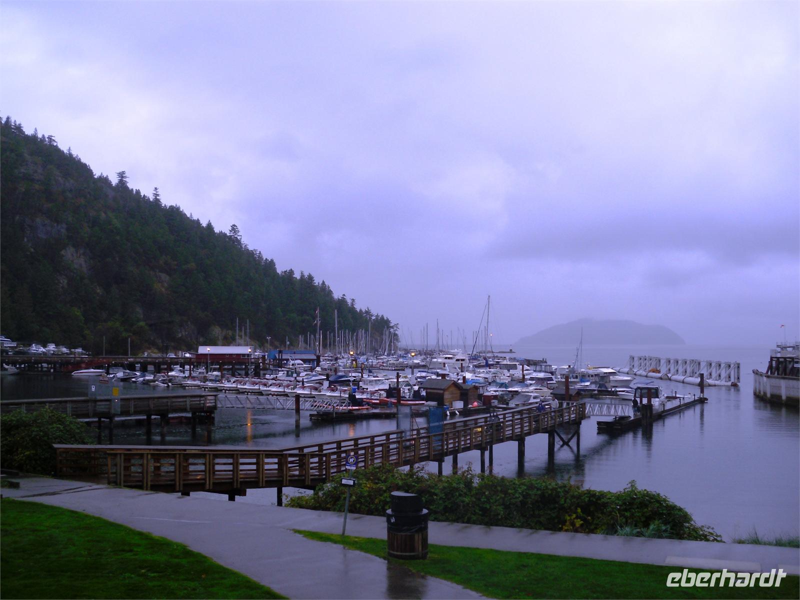 Heute Morgen müssen wir das Hotel schon etwas eher verlassen, weil wir später die Fähre nach Vancouver Island erwischen müssen. Nach einem leckeren Frühstück im Grill-Restaurant machen wir uns auf den Weg in Richtung Horseshoe Bay. Leider regnet es mal wieder - Niederschlag wird uns heute den ganzen Tag begleiten.