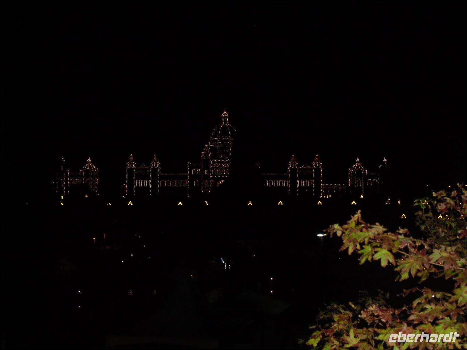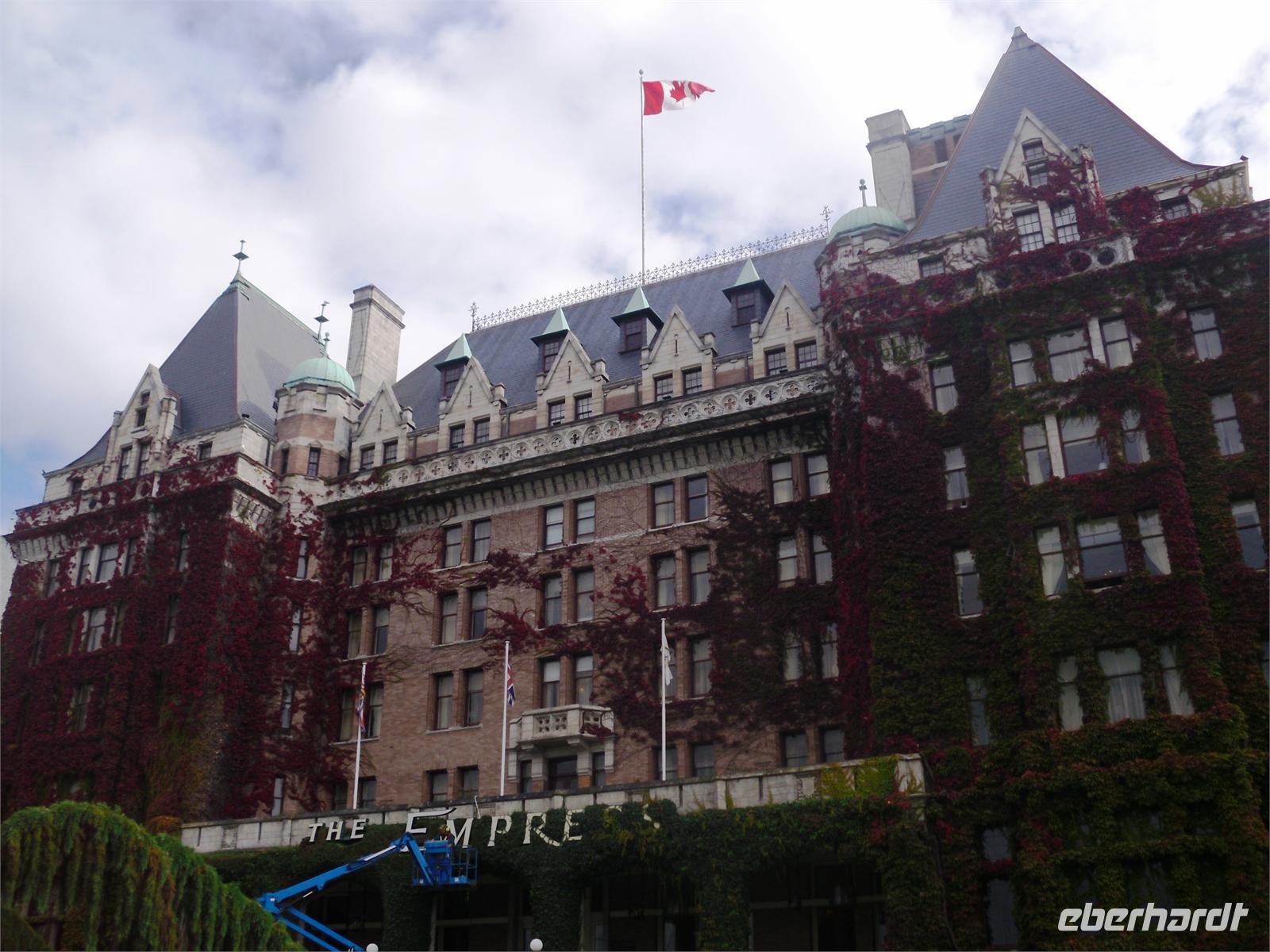 Wir können uns einige Innenräume ansehen und auch einen Blick in den Sitzungssaal werfen. Der von gepflegten Parkanlagen umgebene Komplex wurde Ende des 19. Jahrhunderts von Francis M. Rattenbury gebaut. Auf der Hauptkuppel ist das Standbild von George Vancouver zu sehen, der als erster Seefahrer Vancouver Island umsegelte. Rattenbury war es auch, der das „Empress Hotel" konzipiert hat. Es ist eines der Wahrzeichen der Stadt und wurde Anfang des 20. Jahrhunderts erbaut. Eigentlich hätten wir an der hier stilvoll zelebrierten Teestunde teilnehmen können, aber für 50 kanadische Dollar überlegt man sich dies zwei Mal. Am Hafen angekommen, trennt sich unsere Gruppe. Einige wenige Gäste nehmen an einer erfolgreichen Walbeobachtungstour teil, andere peilen das Royal British Columbia Museum an oder gehen in den vielen Straßen shoppen. Fotomotive bekommt man in dieser Stadt zu Hauf vor die Linse. Erst am Abend treffen wir uns alle wieder. Diesmal suchen wir das Restaurant „Vista 18" auf. Es befindet sich in der 18. Etage des Hotels „Chateau Victoria". Von hier oben können wir die gesamte Stadt überblicken. Ein tolles Ambiente! Nach einer guten Fischsuppe genießen wir Lachs, Hühnchen, Steak oder Nudeln und obendrein noch Käsekuchen. Am späten Abend laufen wir zum Hotel zurück.