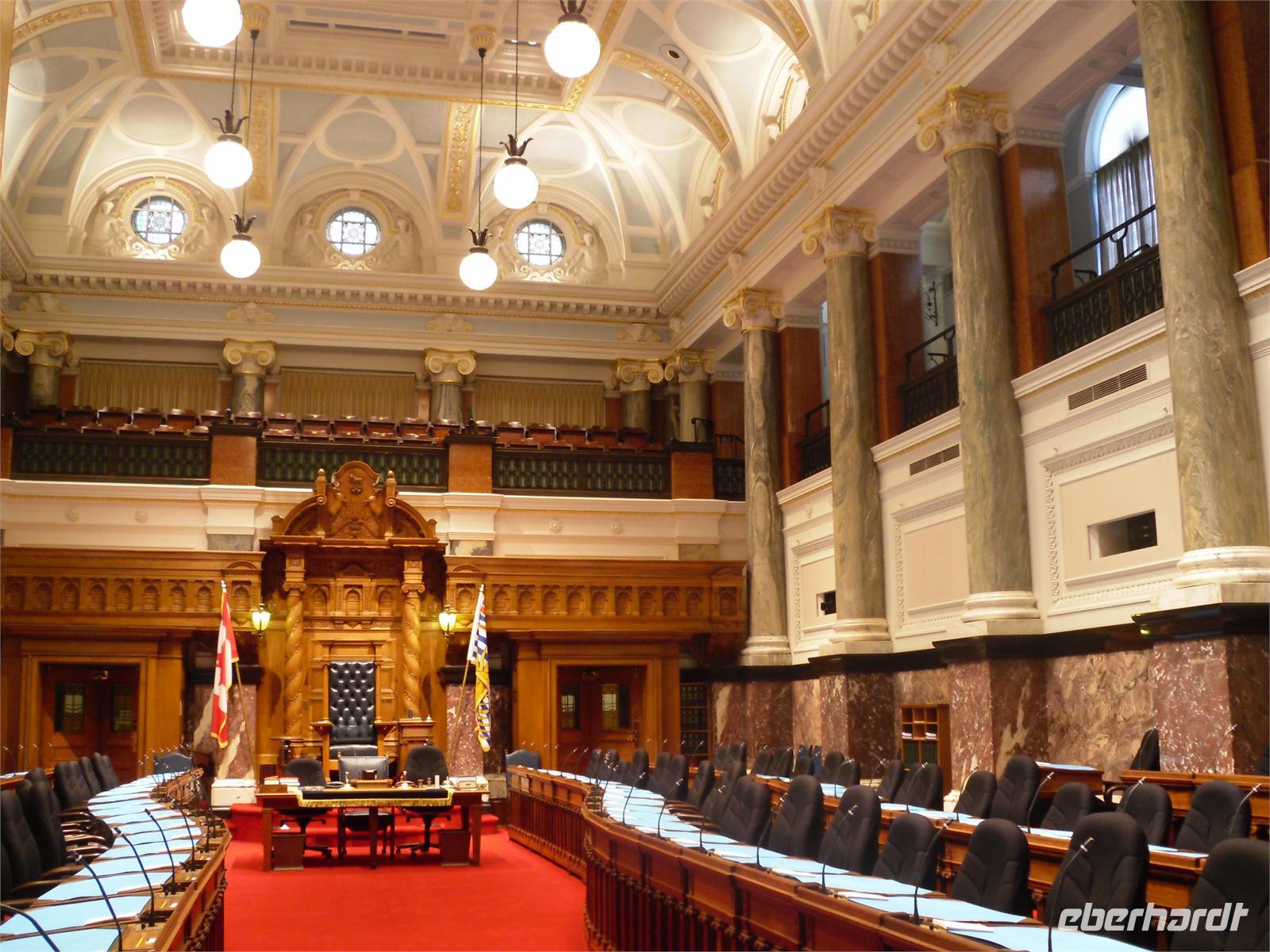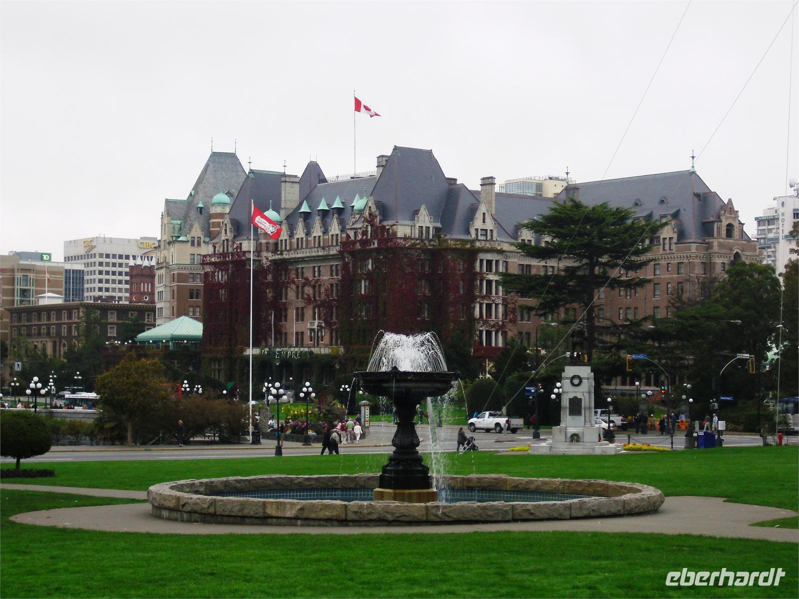 An diesem Vormittag hat Viktor angeboten, uns noch durch das Parlamentsgebäude und das Empress Hotel zu führen, bevor jeder von uns das anschauen kann, was er will. Bei milden 18 Grad Celsius laufen wir vorbei am Royal British Columbia Museum und kommen nach fünf Minuten Spaziergang am Parlament an.