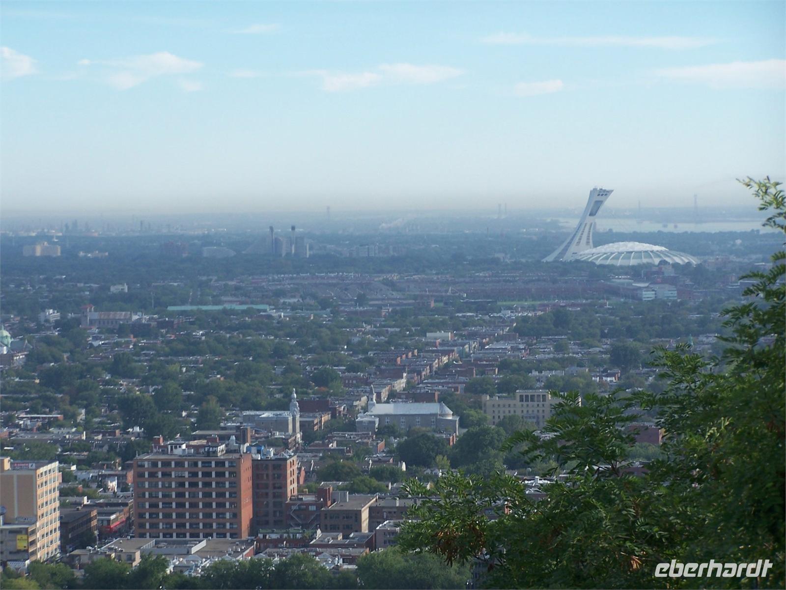 Die erste Station ist der Namensgeber der Stadt - der Mont Royal. Von hier aus gibt uns Regine einen guten Überblick über die Stadt. Wir sehen neben dem St-Lorenz-Strom das Gelände der Olympischen Sommerspiele von 1986, das Gelände der Weltausstellung von 1967 sowie das moderen Stadtzentrum mit seinen Hochhäusern.