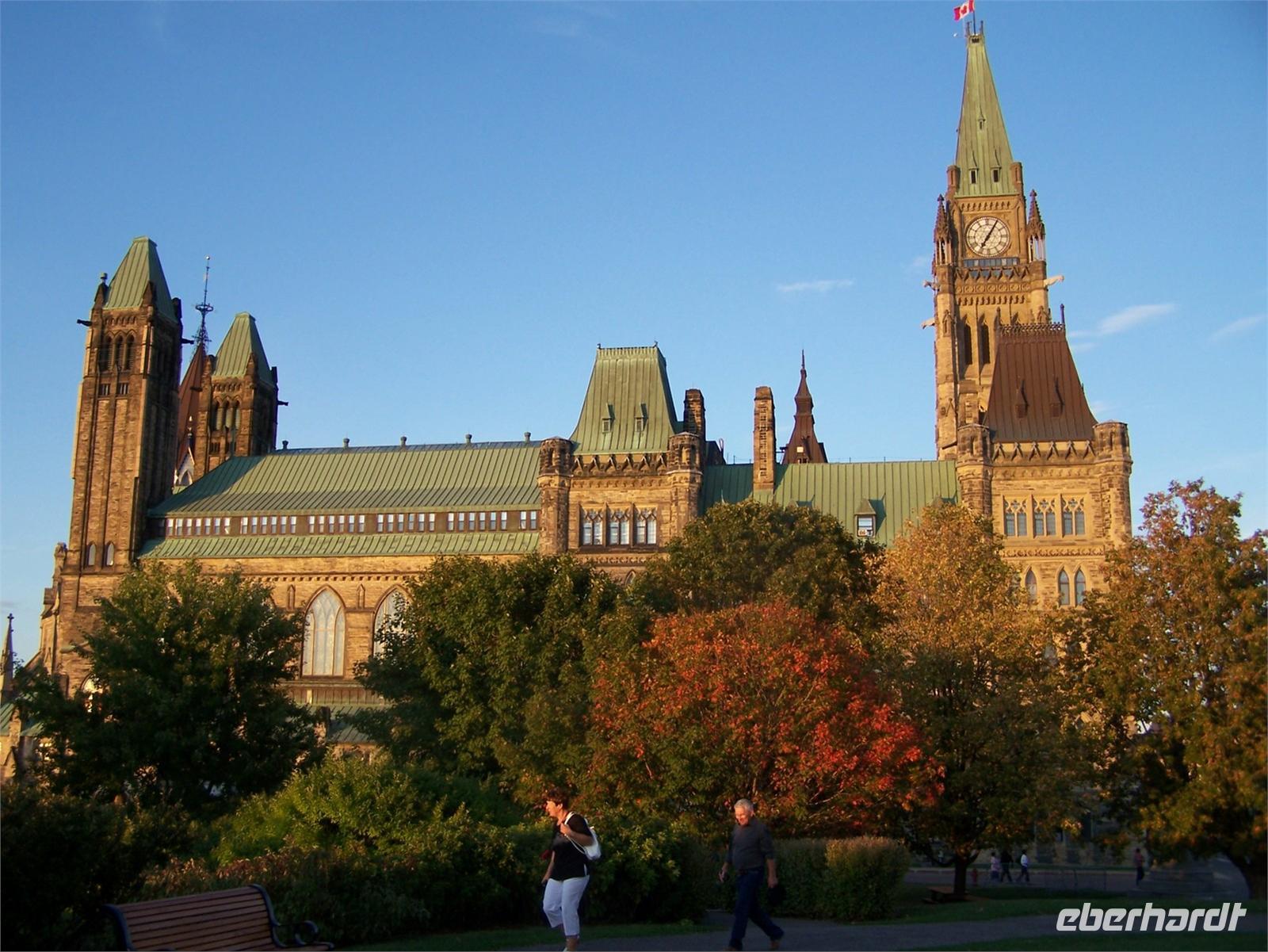 Um 8:30 Uhr starten wir am Hotel zur Stadtrundfahrt durch Ottawa. Das Wetter ist, wie die Tage zuvor auch, wieder recht sommerlich. Am Morgen ist es noch etwas kühl, doch gegen Mittag erreichen die Temperaturen problemlos die 25°C Marke. Die Stationen unserer Rundfahrt sind der Parlamentshügel, das Botschaftsviertel sowie die Gegend um den Byward-Market. Nach der Rundfahrt sind wir uns alle einig, dass Ottawa nicht das Flair einer Hauptstadt versprüht. Alles läuft relativ ruhig ab. Bevor wir weiter nach Toronto fahren, besuchenw wir noch das Völkerkundemuseum in Ottawa. Hier sind auf vier Etage zahlreiche Exponate zur Geschichte und zu den Bewohnern des Landes.