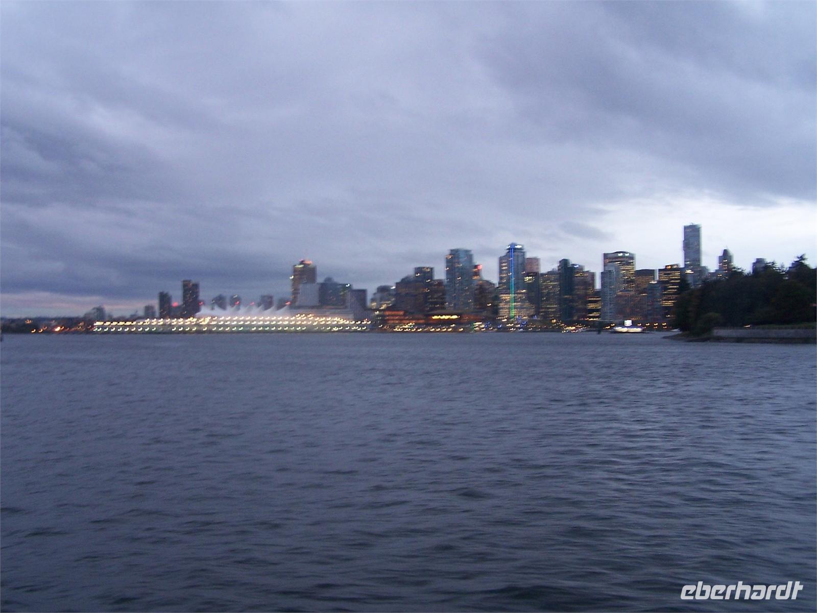 Zum Abschluss des Tages und damit gleichzeit zum Abschluss der Reise, gibt es am Abend eine Hafenrundfahrt in Vancouver. Mit Livemusik und einem schönen Sonnenuntergang machen wir uns auf den Weg vom Hafen zum False Creek und zurück. Wir genießen die beleuchtet Skyline der Stadt und schwälgen in Erinnerungen der letzten 20 Tage. Ein gelungener Abschluss. Ebenfalls während der Bootsfahrt müssen wir uns von Bastiaan verabschieden. Alle haben den "verrückten Niederländer" in ihr Herz geschlossen.
