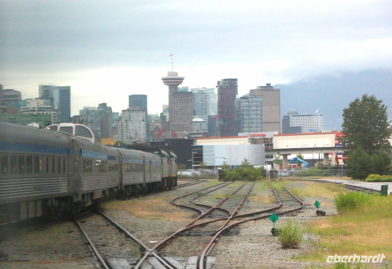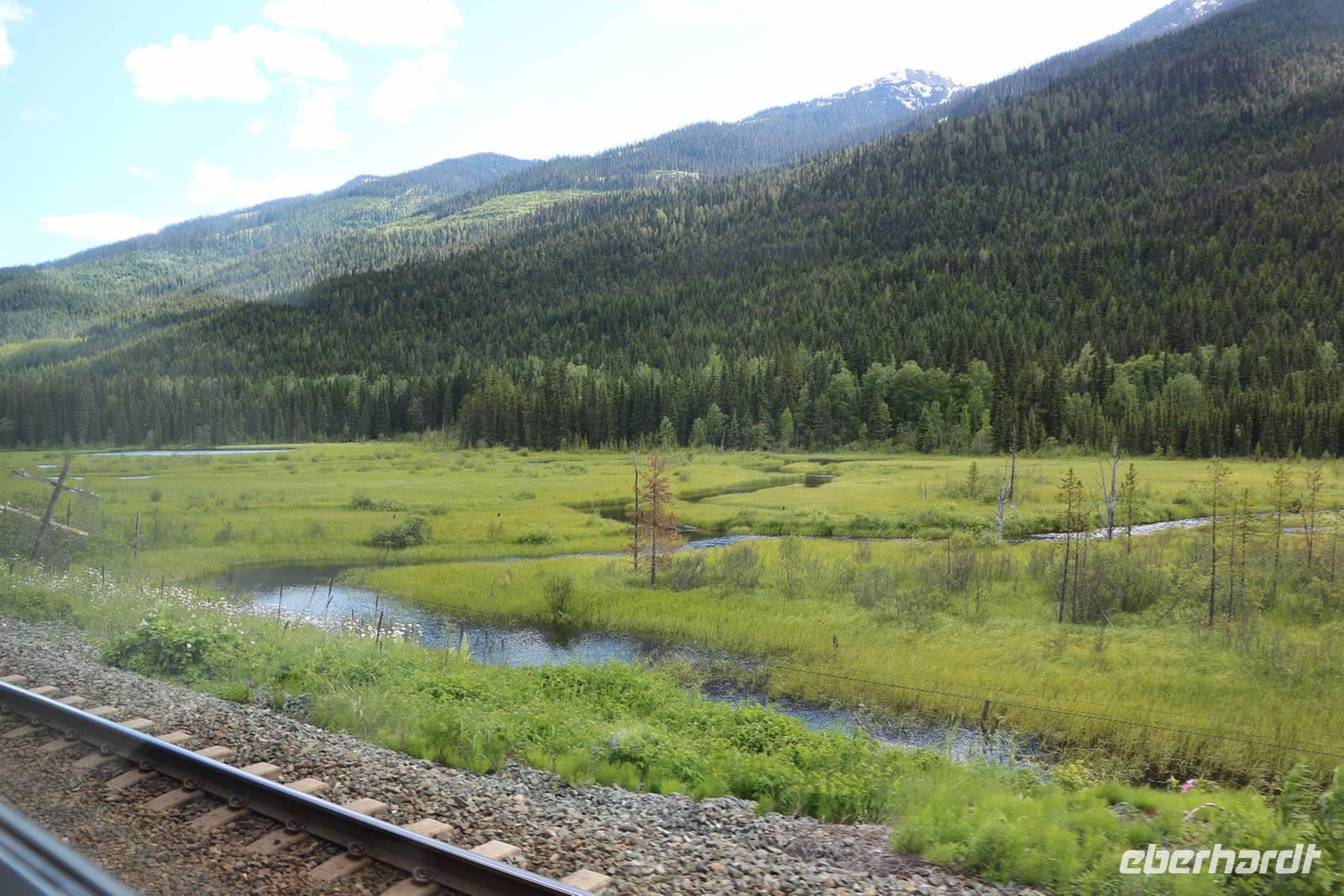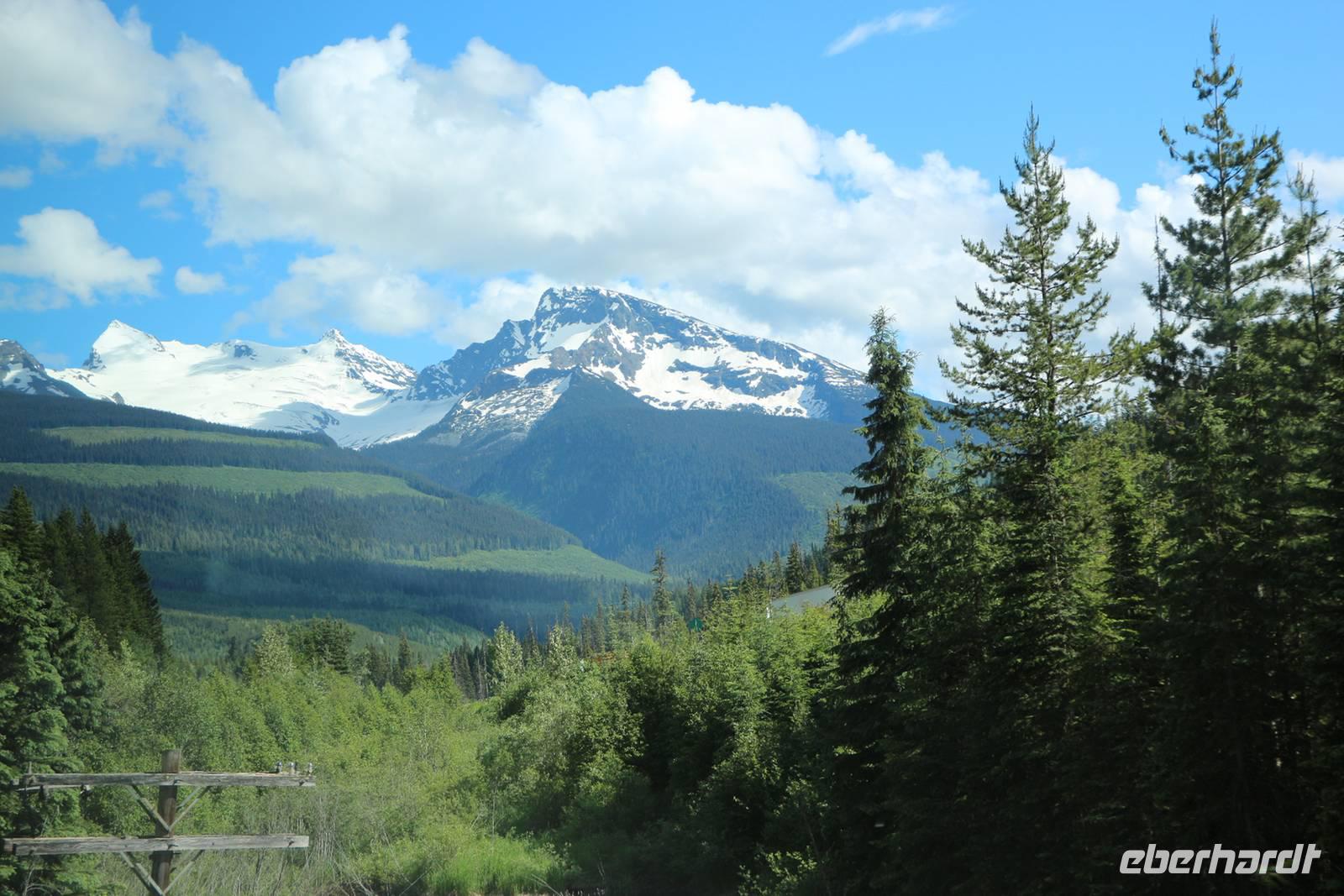 Am Mittag ging es zum Bahnhof von Jasper, wo wir für unsere Weiterfahrt mit dem "Canadian" eincheckten. Um 14.30 Uhr ging unsere Zugfahrt von Jasper nach Vancouver pünktlich los. Über den Yellowhead-Pass verließen wir die Rocky Mountains und fuhren durch die Berglandschaften der Caribou und Revelstoke Mountains in der Provinz British Columbia. Noch eine Nacht verbrachten wir in unseren Schlafabteilen im "Canadian".