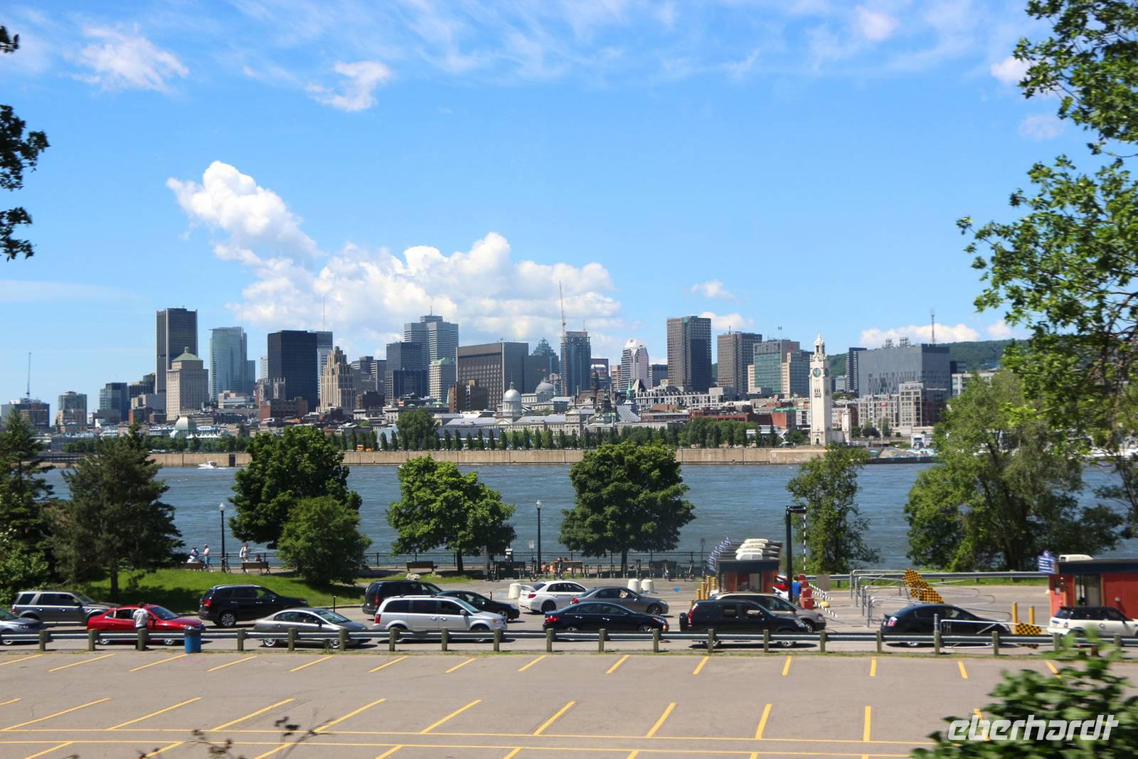 Dann ging es hinauf zum Mount Royal, der kleine Berg, nach dem Montreal einst vom französischen Entdecker Jaques Cartier seinen Namen bekam. Von der Aussichtsterrasse hatten wir eine sehr gute Sicht auf die Wolkenkratzer von Montreal und den St. Lorenz-Strom. Weiter ging unsere Rundfahrt hinunter zum Strom und hinüber auf die Inseln des Hochelaga-Archipels, wo sich auch die Formel 1 Strecke des Großen Preises von Kanada befindet. Dieser fand erst eine Woche zuvor statt und die Tribünen wurden immer noch abgebaut. Mit unserem Bus fuhren wir entlang der Formel 1 Strecke und legten einen Fotostopp an der Startlinie ein.