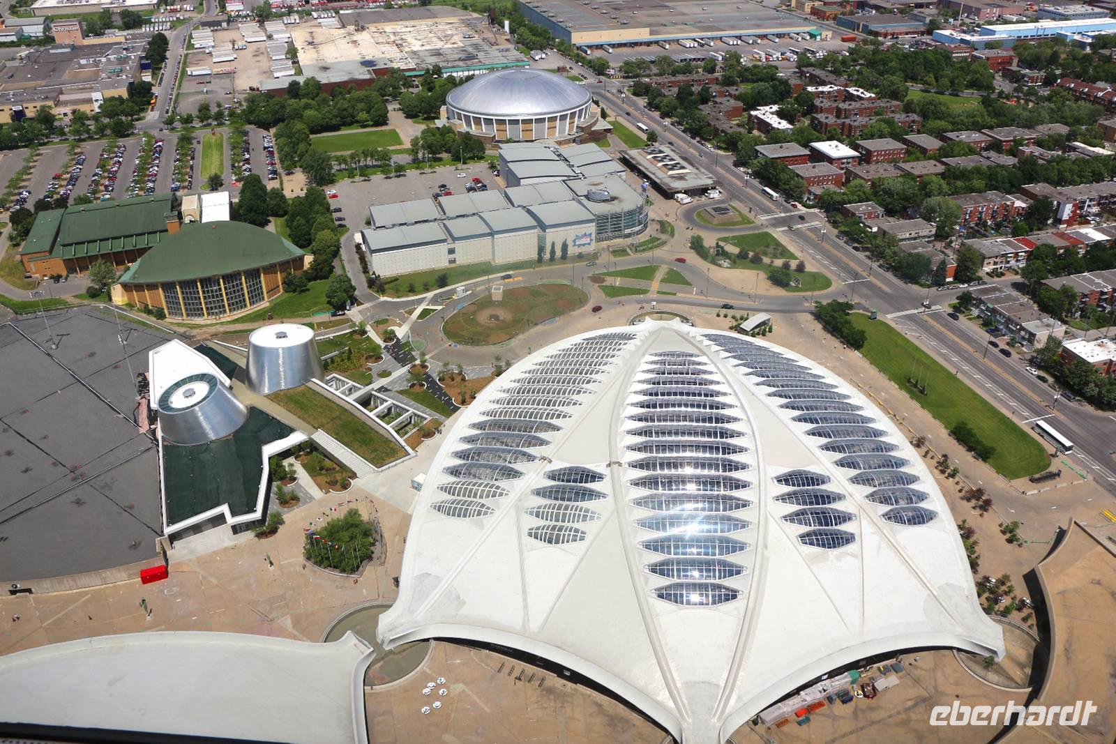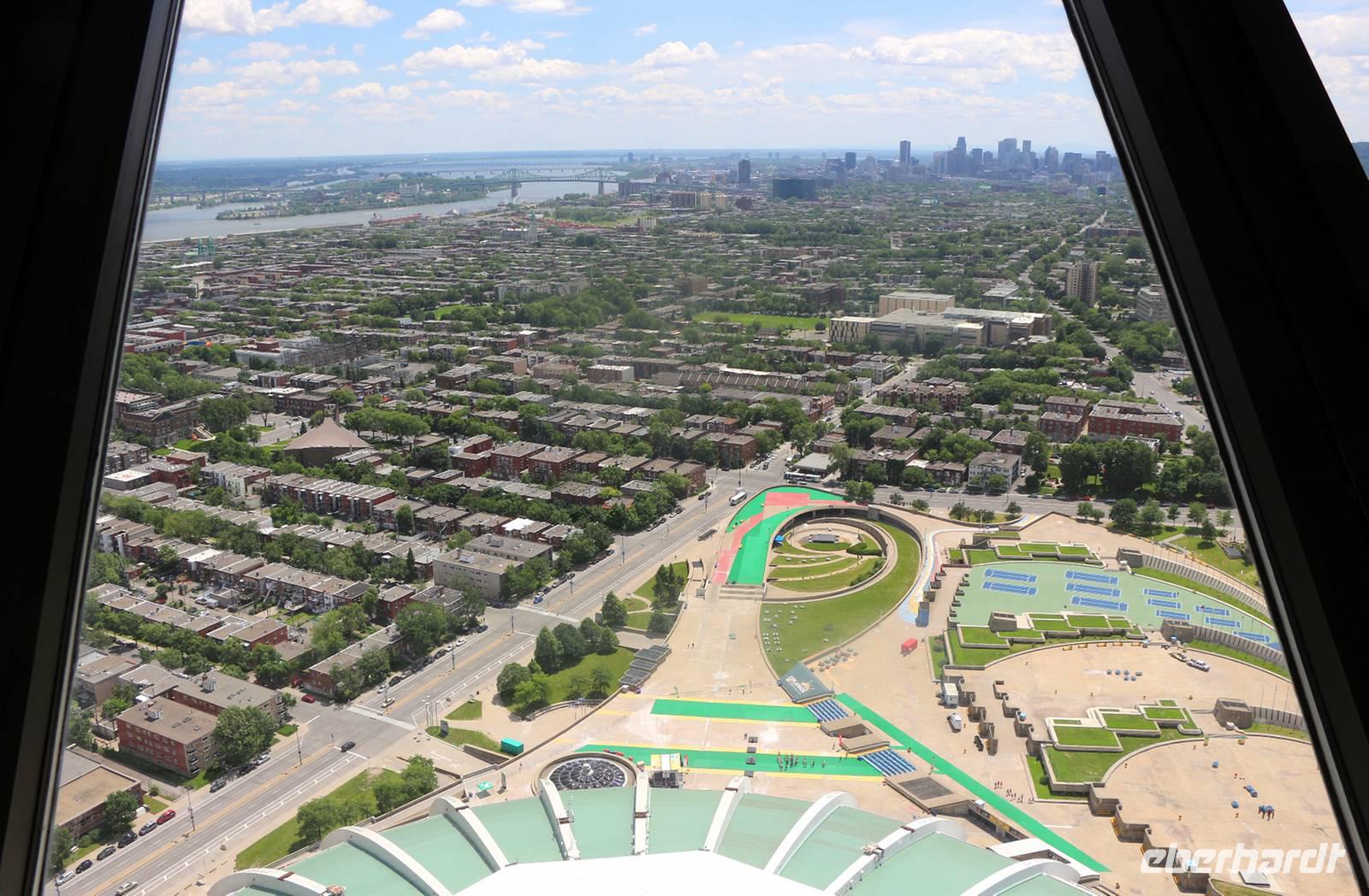 In der Unterstadt am Bahnhof McGill legten wir eine Mittagspause ein und dann ging es per U-Bahn zum Olympiapark an der Station Viau. Neben dem Besuch des Biodomes und des Botanischen Gartens bietet sich hier die Auffahrt auf den Olympia-Turm an (Die Auffahrt mit der Gondel kostet ca. 23 CAD). Besonders bei solch gutem Wetter, wie an diesem Tag, lohnt sich ein Blick von oben auf die Olympia-Anlagen von 1976.