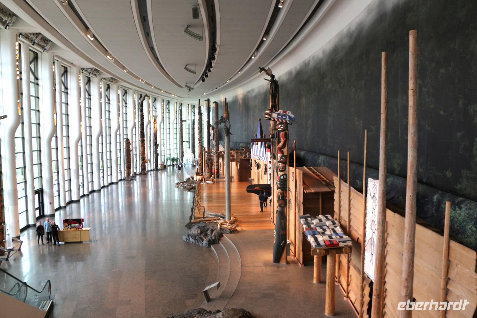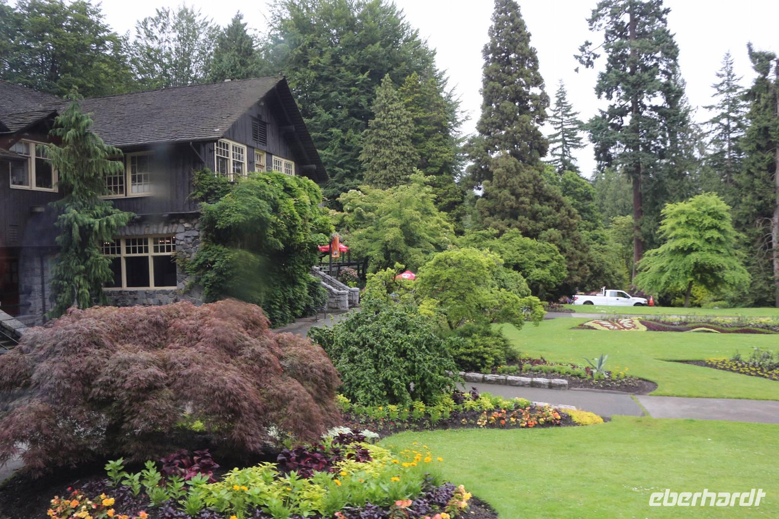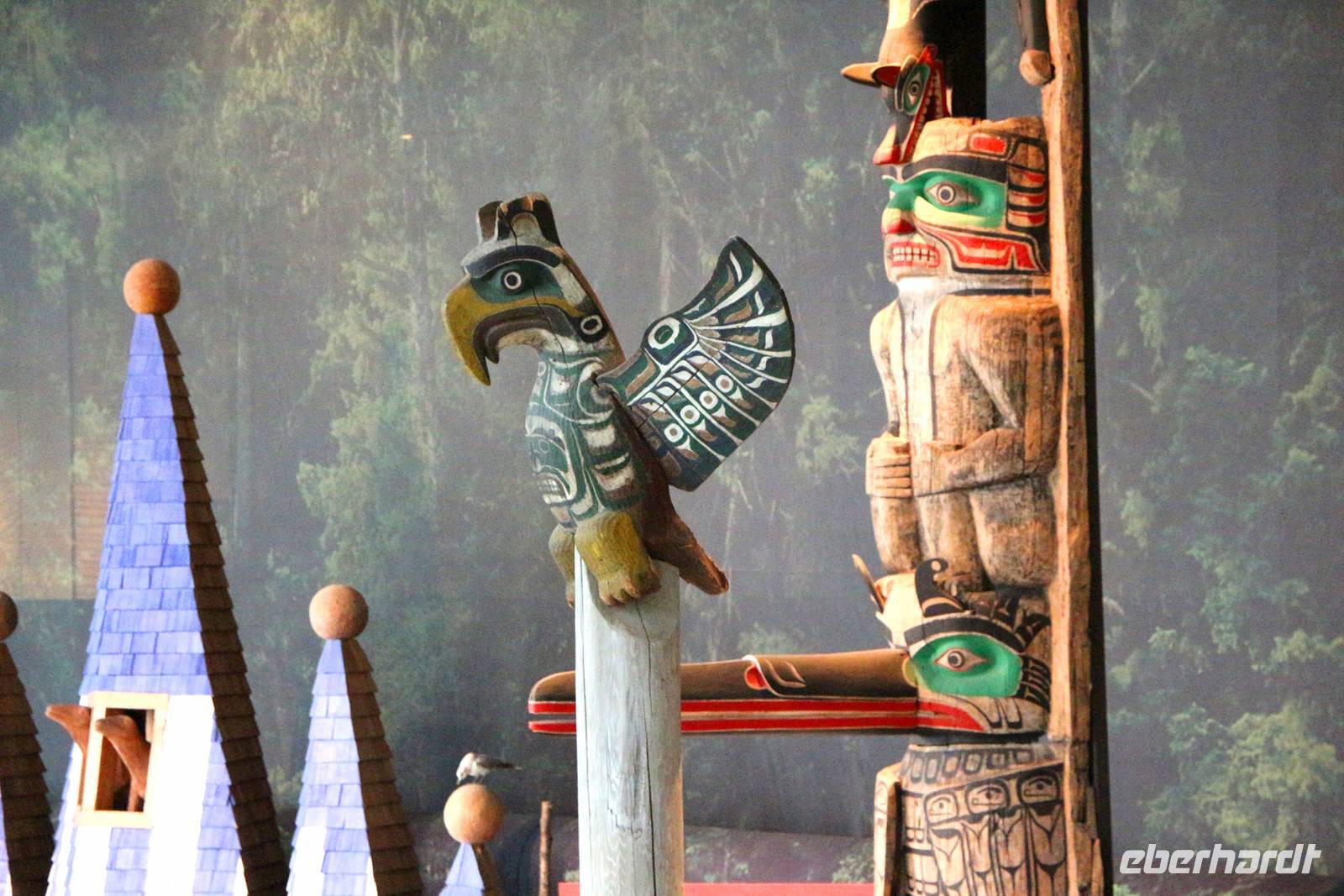 Alle Gäste nahmen heute an unserem fakultativen Ausflug nach Nord-Vancouver teil. Mit dem Bus und unserem Reiseleiter Dieter fuhren wir über die Lion's Gate Bridge zum Capilano Suspension Park. Bei einer kleinen Führung erfuhren wir Wissenswertes zur Geschichte des Parks am Capilano-Fluss und den hier beheimateten Squamish-Indianern. Dann ging es über die 136 Meter lange freischwingende Hängebrücke, 70 Meter über dem Capilano-Fluss. Bei einem Rundgang über die Baumkronenpfade lernten wir noch einmal die Riesenbäume des pazifischen Regenwaldes kennen.