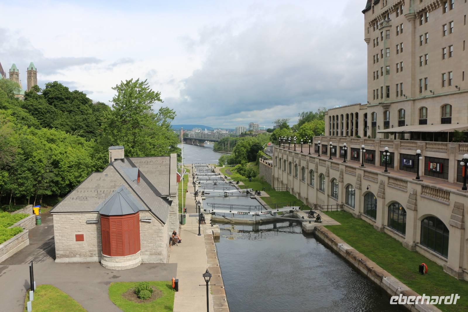 Am Vormittag hatten wir noch etwas freie Zeit in Ottawa zur Verfügung. Wir unternahmen einen Spaziergang entlang des Rideau-Kanals bis zu den acht Schleusen zwischen dem Chateau Laurier Hotel und dem Parlamentshügel. Der Rideau-Kanal wurde 1932 eröffnet und gehört heute mit seinen Schleusen zum UNESCO-Weltkulturerbe.
