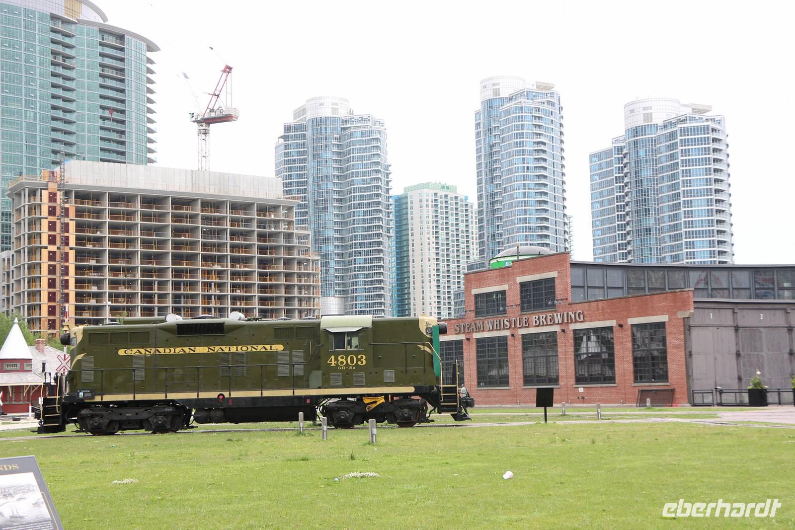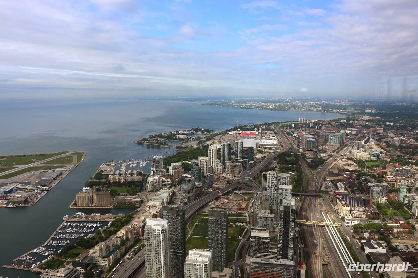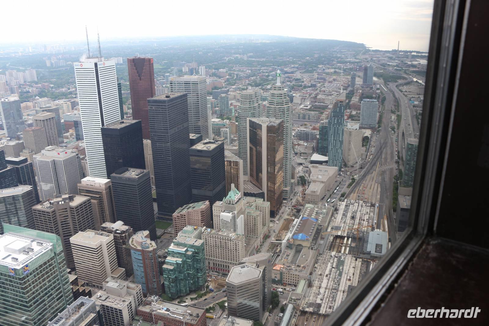 Um die Mittagszeit ging unser Zug (wieder eine Verbindung des "Corridor"-Netzes) von Ottawa nach Toronto am Ontariosee. Die entspannte Zugfahrt dauerte etwa fünf Stunden. Auch hier gab es wieder einen Bordservice, bei dem wir Getränke und Snacks kaufen konnten. Unterwegs sahen wir vor allem ländliche Gebiete, Wälder und Sumpflandschaften. Das letzte Stück der Strecke führte am Ufer des riesigen Ontariosees entlang.