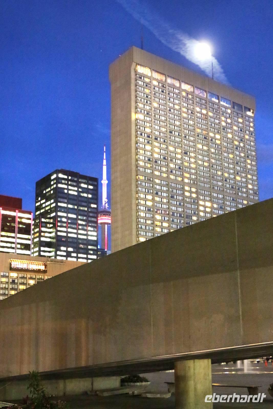 Am Bahnhof in Torornto begrüßte uns Reiseleiterin Brigitta, die ich schon von einer anderen Ost-Kanada-Reise kannte. Unser Gepäck wurde zum Bus gebracht und wir fuhren zu unserem Hotel "Delta Chelsea" im Zentrum von Toronto. Nach dem gemeinsamen Abendessen im Hotelkrestaurant unternahmen wir mit Brigitta noch einen kleinen Abendspaziergang durch die Lichterstadt Toronto. Mit den bunten Leuchtreklamen, den riesigen Wolkenkratzern und belebten Straßen beeindruckt Toronto ganz anders als am hellen Tag. Fast kommt man sich vor wie in New York!