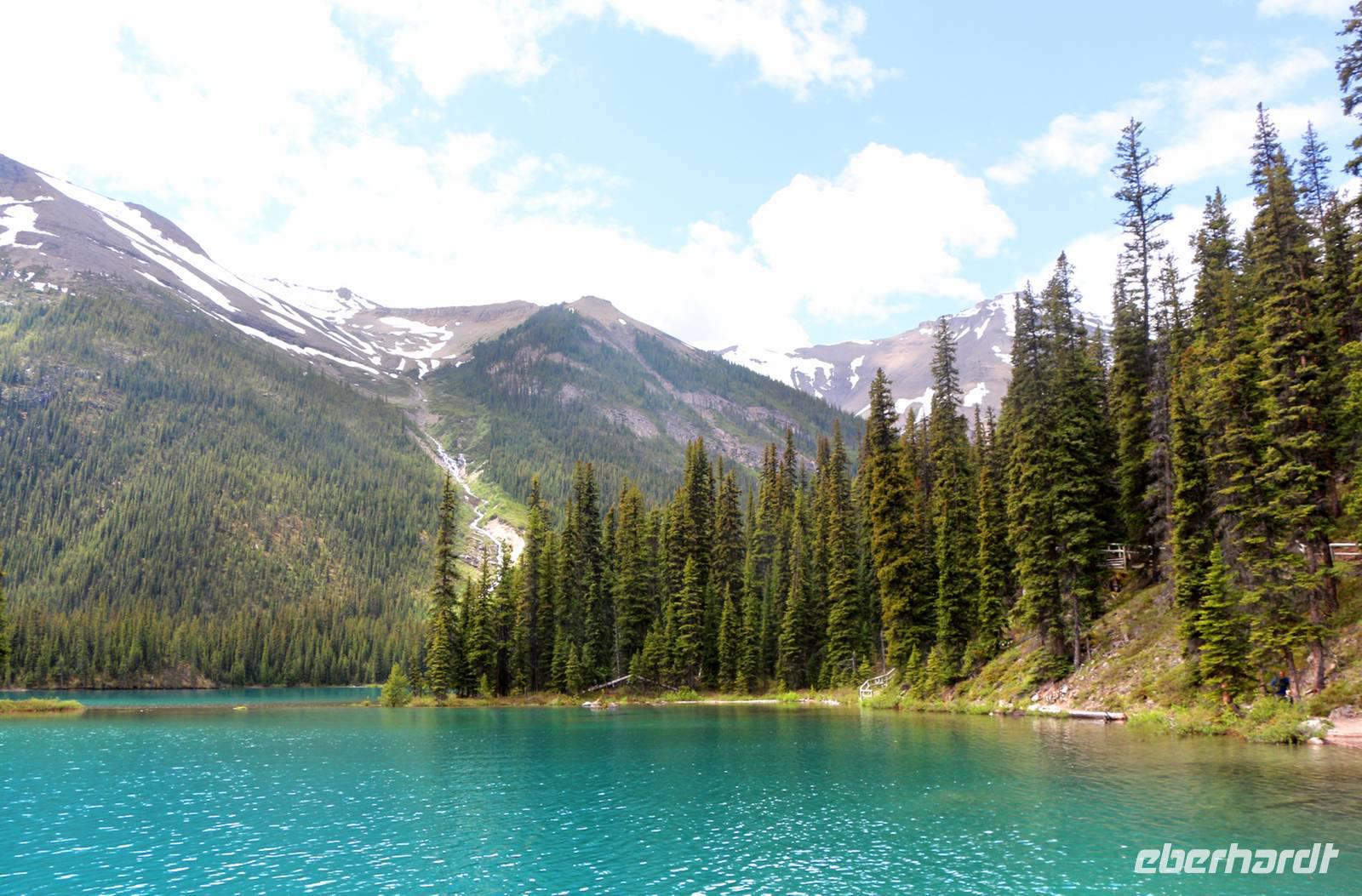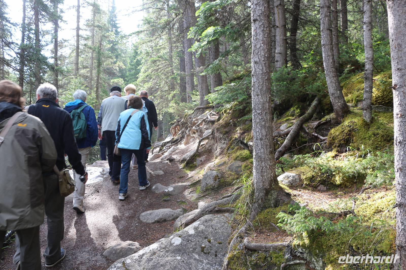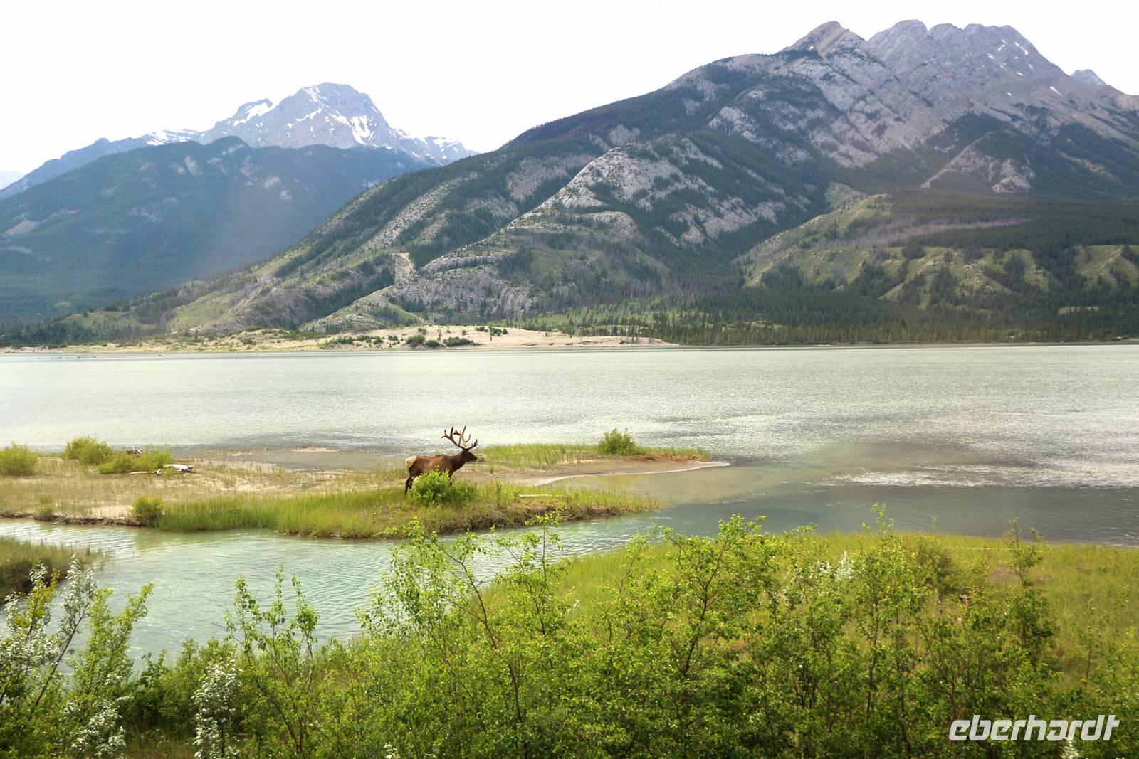 Um noch etwas Bewegung an frischer Luft zu genießen, unternahmen wir einen Spaziergang am Lac Beauvert, einem klaren Bergsee, an dem die 5-Sterne-Hotelanlage des Jasper Park Resorts liegt.
