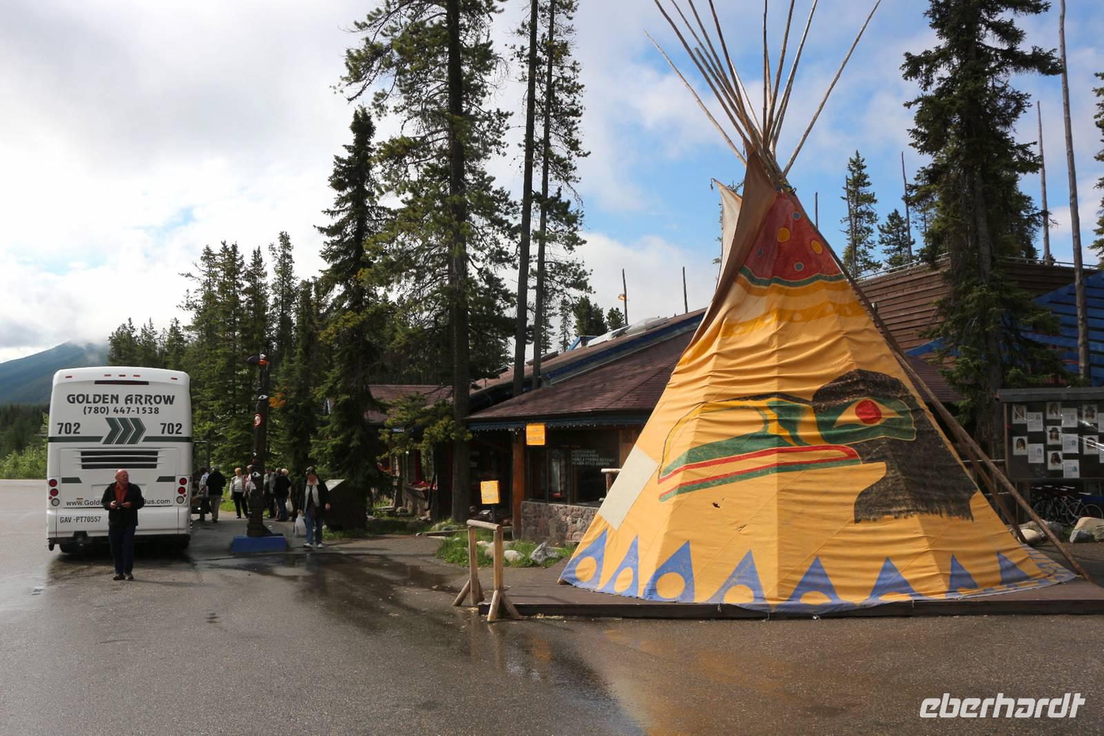 Nachdem wir unsere Koffer aus dem Gepäckwagen in Emfang genommen haben, holen uns Reiseleiterin Helga und Busfahrer Kong am Bahnhof ab. Auf einer ersten kleinen Erkundungsfahrt besuchen wir den Patricia Lake und unternehmen einen Spaziergang am Pyramids Lake, bevor wir zu unserem Hotel "Tonquinn Inn" in Jasper fahren.