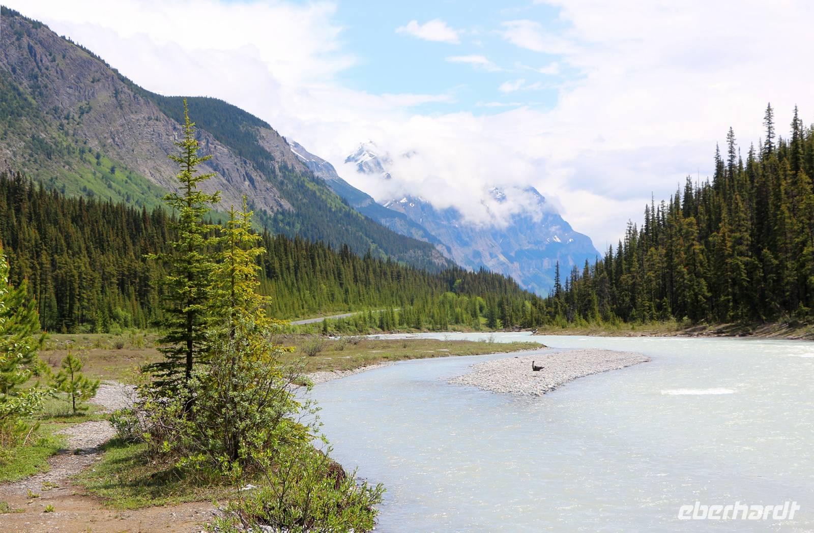 (Da der Highway nach Banff und Canmore gerade wegen Hochwasser gesperrt ist, konnten wir bei dieser Reise nicht wie geplant den ganzen Banff-Nationalpark erkunden. Dafür ging es am nächsten Tag gen Norden zum Mount Robson Provinz Park.)