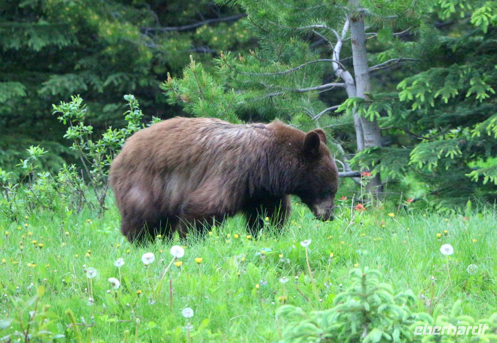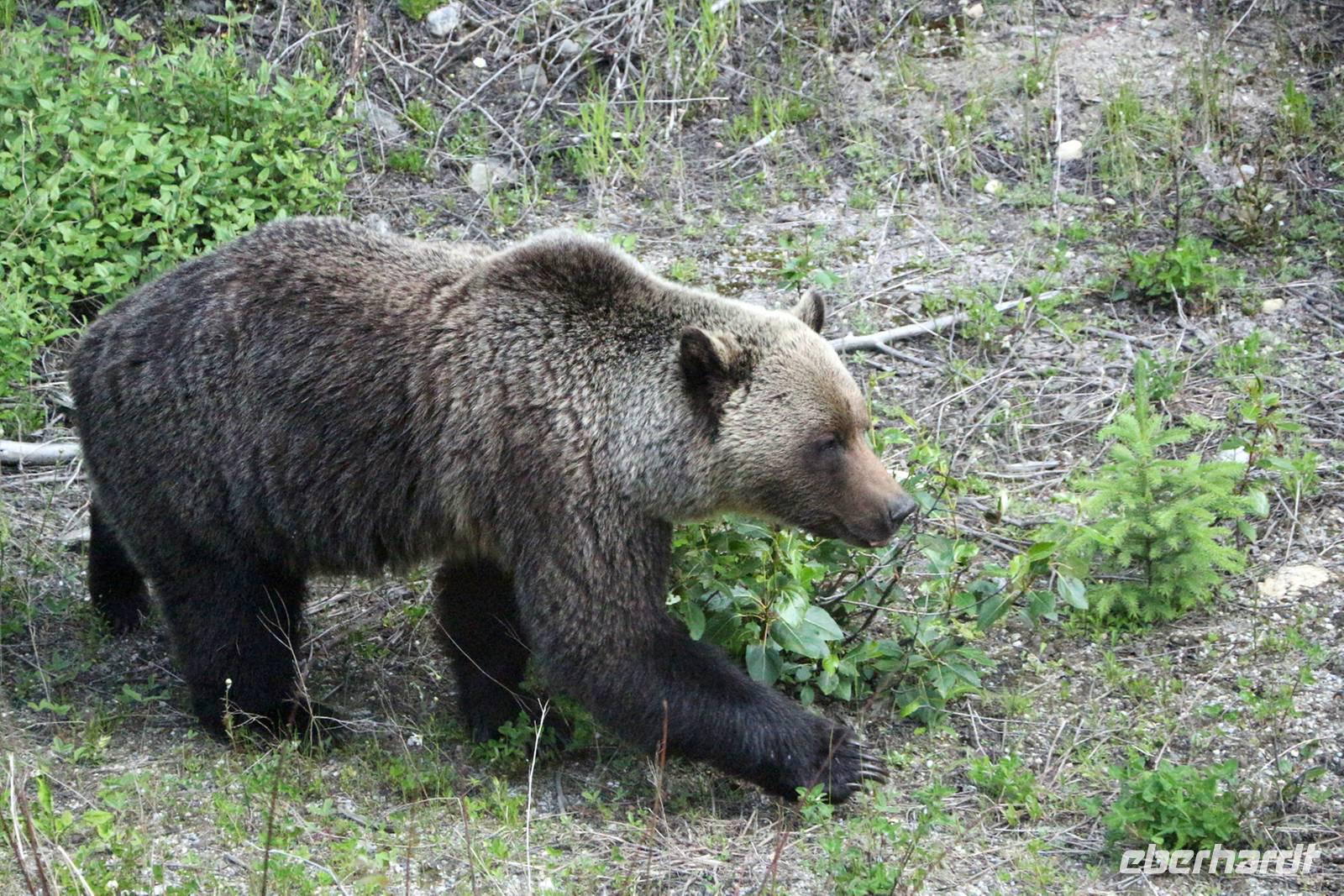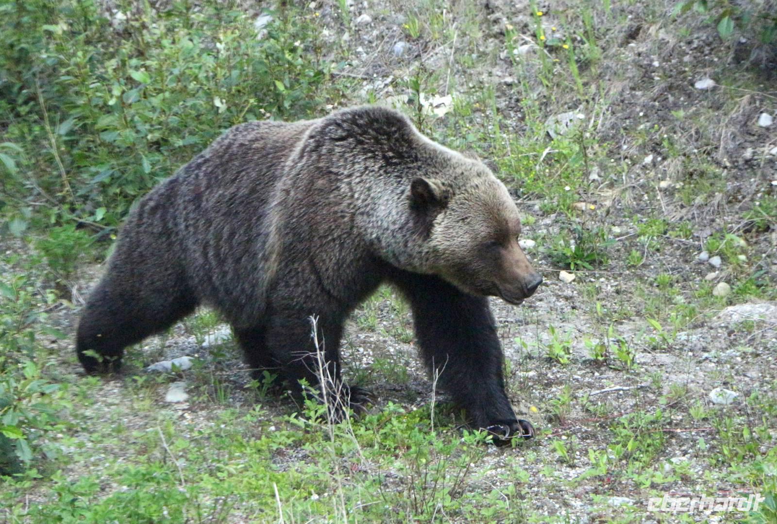 Nach dem "Höhenflug" ging es weiter zum Mount Robson Provinz Park, der an der Grenze zu British Columbia beginnt. Am Straßenrand sahen wir unseren ersten Grizzly-Bären, der hier ganz gemächlich entlang trottete!