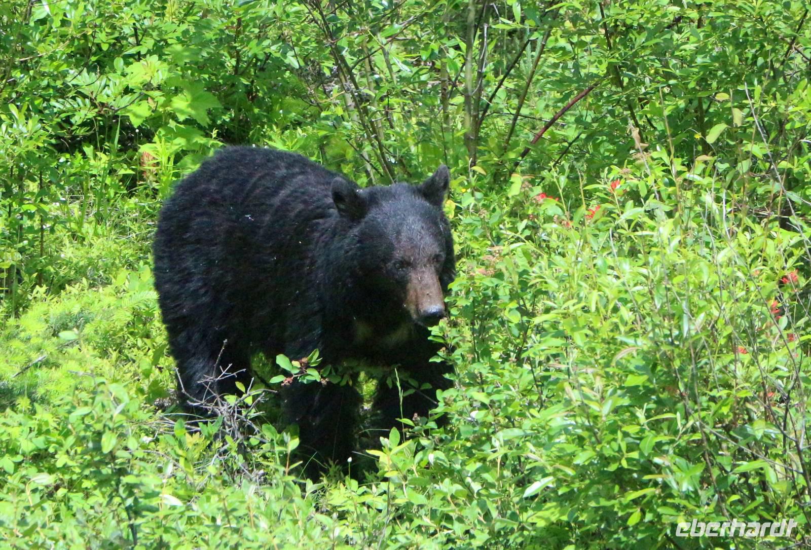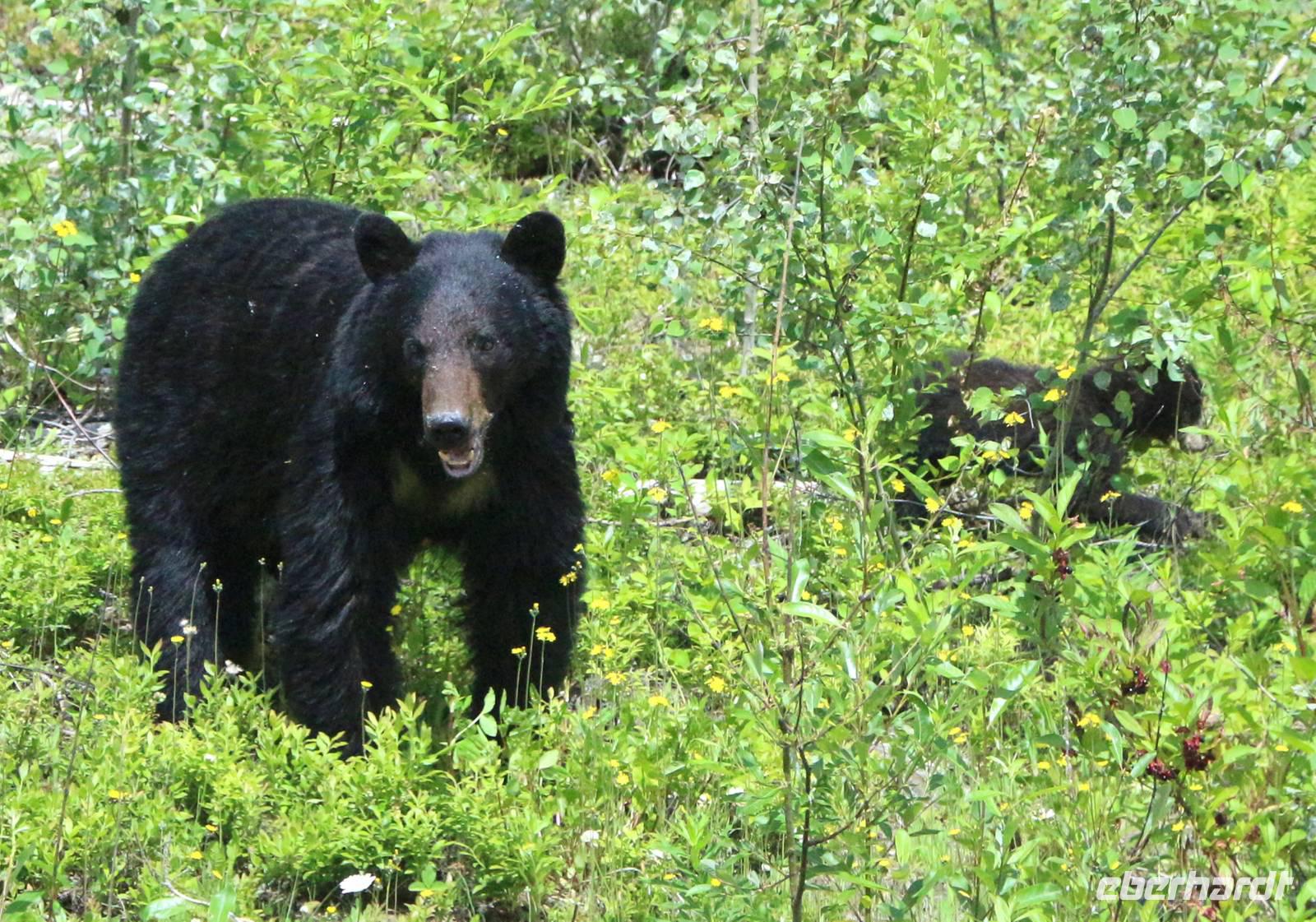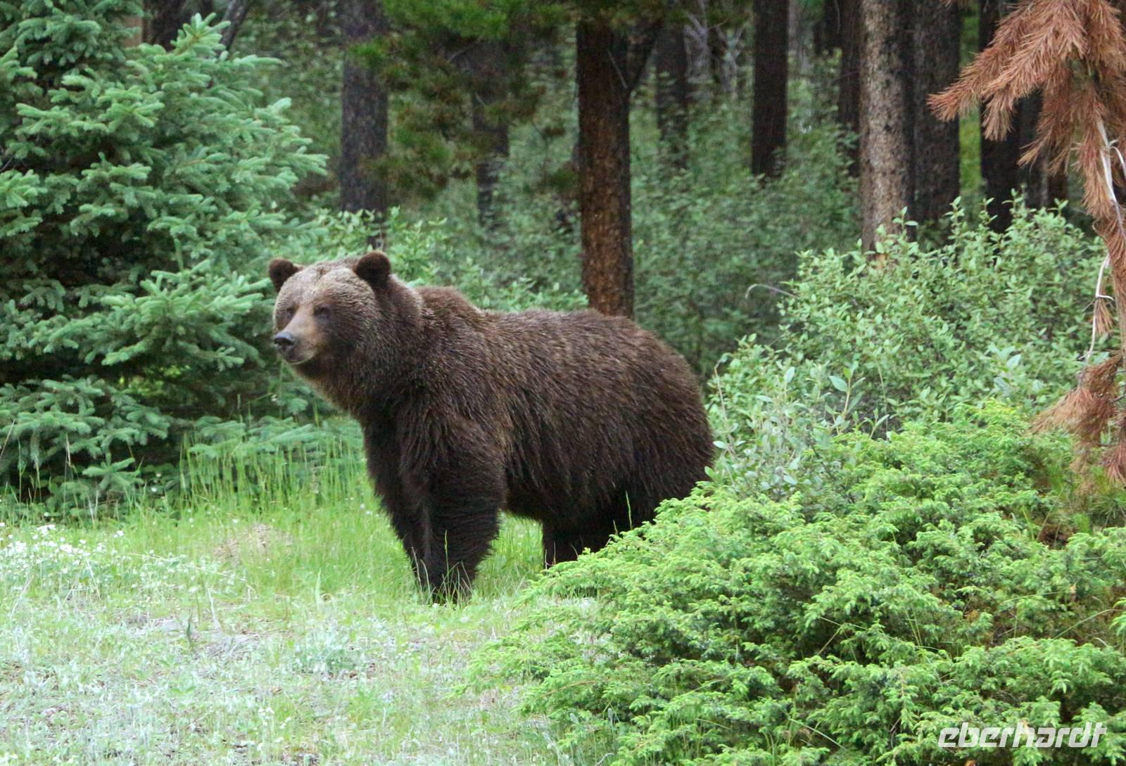 Nach dem "Höhenflug" ging es weiter zum Mount Robson Provinz Park, der an der Grenze zu British Columbia beginnt. Am Straßenrand sahen wir unseren ersten Grizzly-Bären, der hier ganz gemächlich entlang trottete!