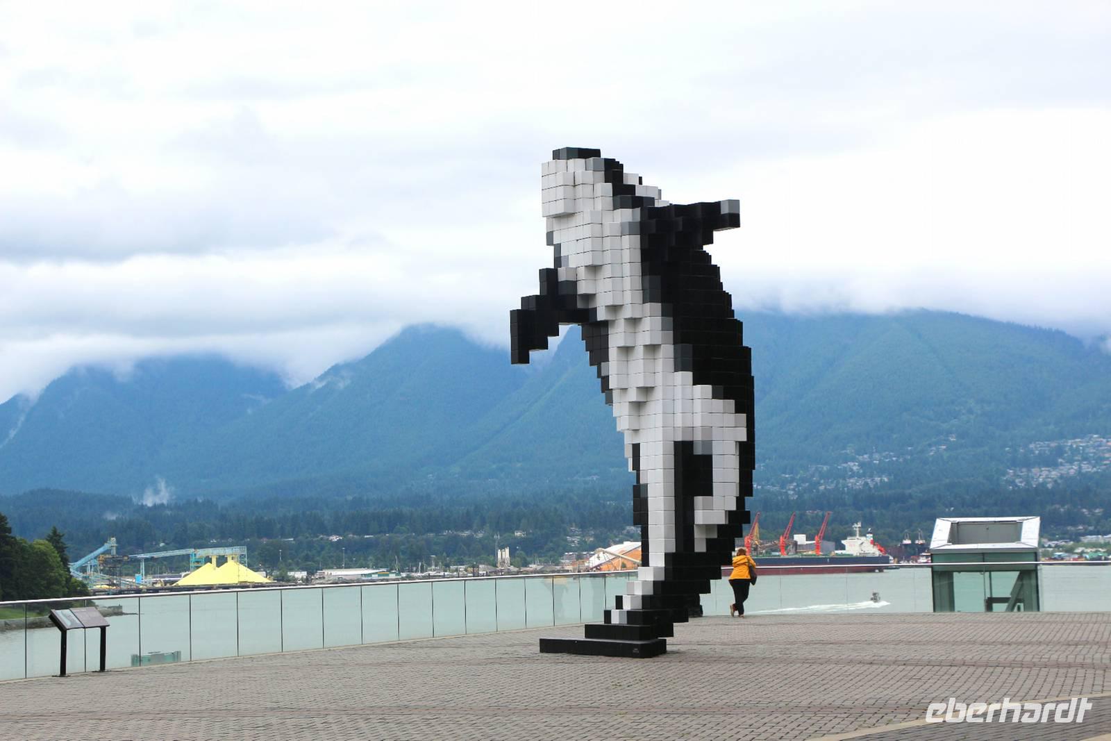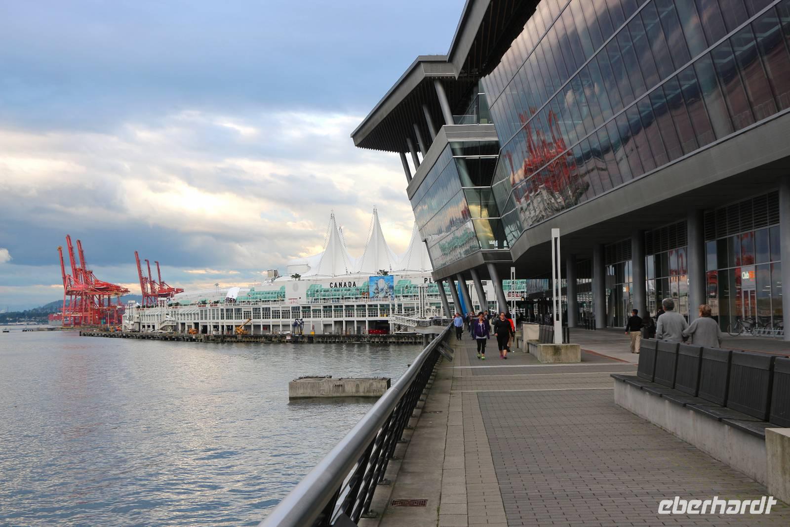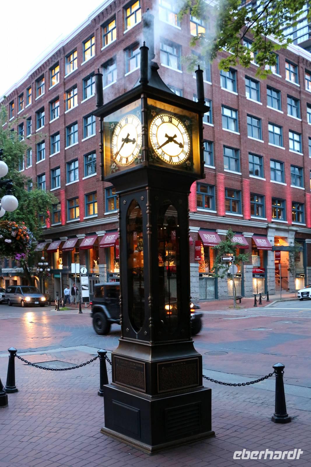 Am Vormittag erreichte der "Canadian" schließlich die Endstation in Vancouver. Wir bekamen unsere Koffer am Gepäckband im Bahnhof und brachen mit unserem Reiseleiter Dieter zur Stadtrundfahrt in Vancouver auf. Zuerst ging's ins chinesische Viertel Chinatown, wo wir einen kleinen exotischen Schaufensterbummel machten. In der Altstadt Vancouvers - Gastown - statteten wir der alten englischen Dampfuhr und dem historischen Bahnhof der Canadian Pacific Railway einen Besuch ab. Am Canada Place bestaunten wir den Kreuzfahrthafen, die olympische Flamme von 2010 und das Kongresszentrum.