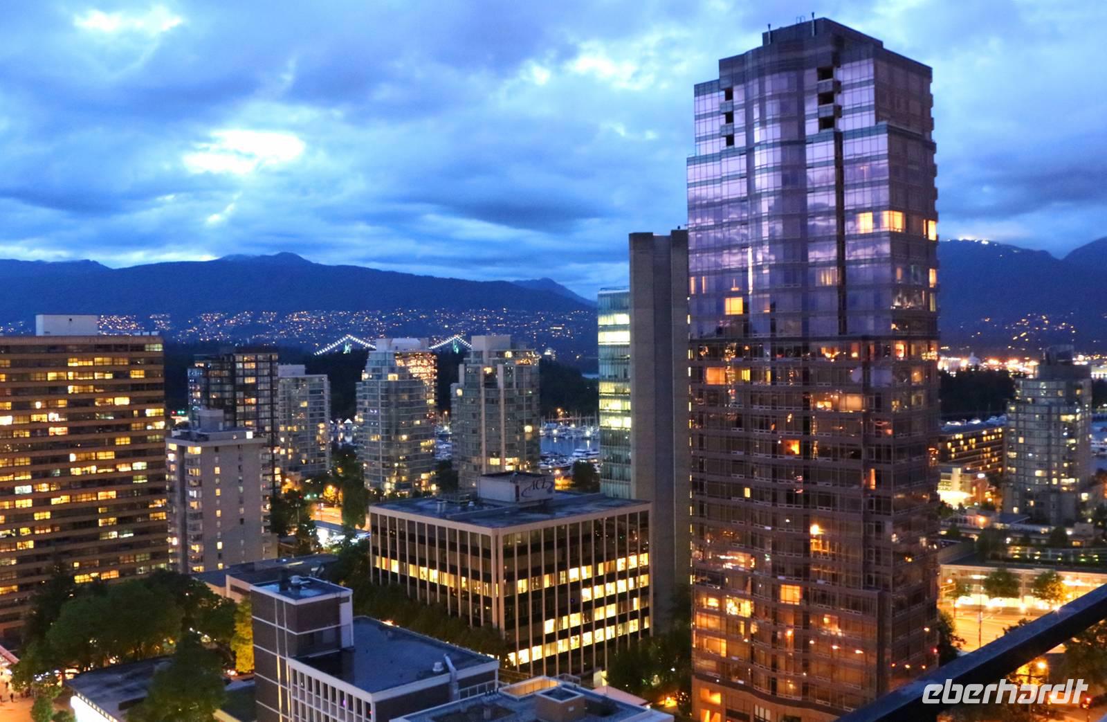 Unser gemeinsames Abschluss-Abendessen genossen wir im Restaurant "Cloud 9" in der 42. Etage unseres Hotels "Empire Landmark" hoch über den Dächern Vancouvers. Ein toller Ausklang der Reise!