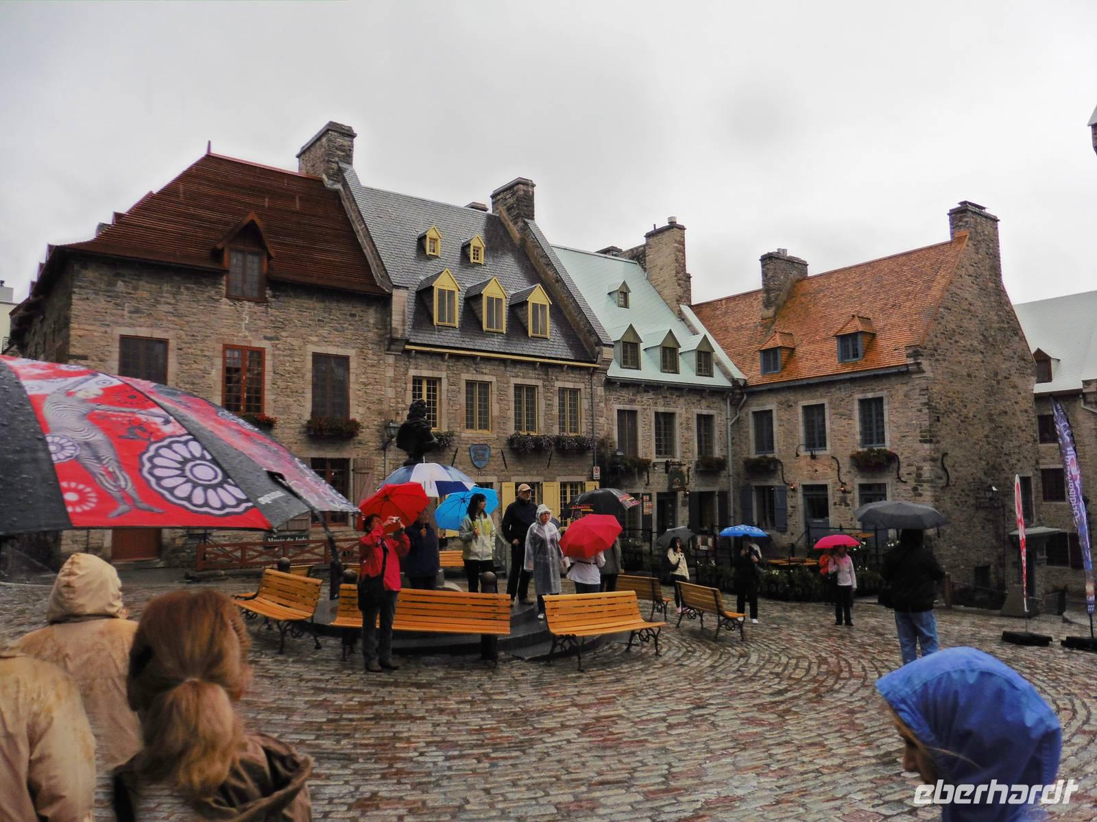 Am späten Vormittag treffe ich die ersten Gäste am Flughafen Dresden um gemeinsam nach München zu fliegen. In München probieren wir gleich die neue elektronische Passkontrolle und sind begeistert wie einfach und schnell diese funktioniert. Alle anderen Gäste treffe ich am Gate. Nun ist die Kleingruppe komplett und wir fliegen gemeinsam über Montreal nach Quebec. Der Osten Kanadas begrüßt uns am Abend mit Regen wie schon vorhergesagt wurde. Der erste Eindruck von den angestrahlten Bauwerken im europäischen Stil bezaubert uns. Wir übernachten dort im zentral gelegenen Hotel Chateau Laurier und lernen uns bei einem Abendessen im französischen Restaurant „Louis Herbert" kennen. Nach dem schmackhaften Menü fallen wir alle müde ins Bett.