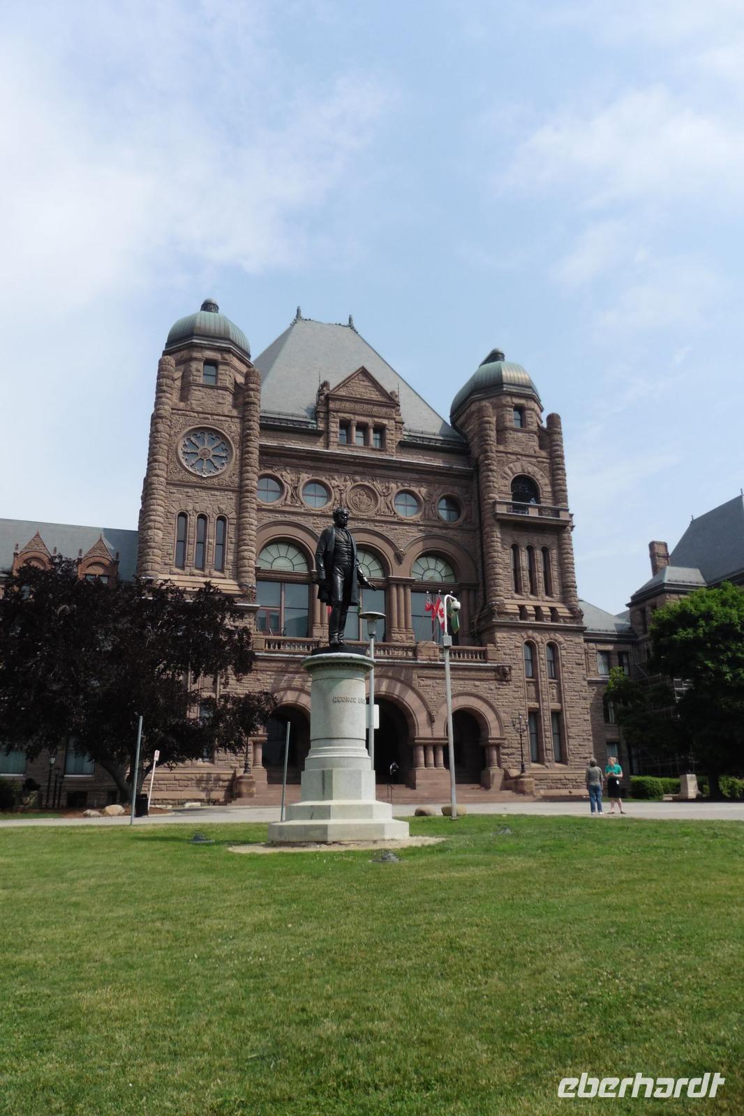 Heute können wir mal etwas länger schlafen. Nach dem Frühstück haben wir noch Zeit und nutzen diese für individuelle Spaziergänge entlang den Schleussen des Rideau Kanals oder am Parlament. 11 Uhr starten wir dann in Richtung Bahnhof, um unsere letzte Etappe mit dem Corridor nach Toronto anzutreten. Gewappnet mit Deutschlandfahne und betriebsbereiten Tablets und Notebooks steigen wir in den Zug, um uns das WM Spiel Deutschland gegen Portugal anzuschauen. Leider funktioniert das im kanadischen Netz nicht und somit müssen wir uns mit dem Liveticker zufrieden geben. Bei jedem Tor wird gejubelt und angestoßen bis der Schaffner uns bittet, etwas leiser zu sein und Rücksicht auf die anderen Gäste zu nehmen... Nach 5 Stunden Fahrt erreichen wir die 3,8 Millionen Metropole Toronto am Ontariosee. Hier werden wir von Brigitta unserer Reiseleiterin erwartet und fahren gemeinsam mit ihr ins Hotel. Auf dem Weg ins Restaurant Hot House Cafe nehmen wir die ersten Bilder von Toronto und vom historischen Bügeleisenhaus aus Backsteinen auf. Nach dem Essen packen wir unser Handgepäck für die nächsten 3 Tage im Zug, da unsere großen Koffer im Kofferwagen transportiert werden.