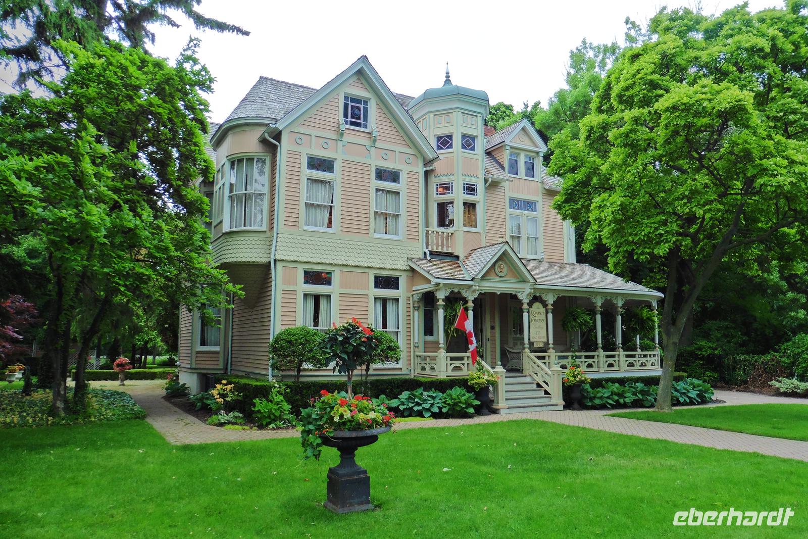 Sichtlich beeindruckt bummeln wir entlang der Promenade oberhalb der Fälle und machen noch viele schöne Fotos. Irgendwie gibt es immer wieder tolle Motive. Leider ist auch hier unsere Zeit begrenzt und unser Bus bringt uns in das kleine Städtchen Niagara on the Lake, ein idyllischer Ort mit hübschen Villen und einer kleinen Geschäftsstrasse. Zurück in Toronto angekommen werden wir schon in Quinn´s Steakhouse erwartet. Dort genießen wir unser Abendessen, bevor wir zum Bahnhof fahren. Leider hat unser Zug Verspätung und somit müssen wir noch eine ganze Weile in der Lounge verweilen. Dort bekommen wir kostenlos Getränke. Natürlich sind wir alle auf den Zug und unsere Kabinen gespannt, schließlich werden wir die nächsten 3 Nächte dort verbringen. Endlich kommt das Signal zum Einsteigen. Mit unserem Handgepäck schlängeln wir uns durch die engen Gänge und beziehen unsere Kabinen. Linda, unser Kabinenpersonal, erklärt uns die Schalter und Knöpfe der Kabine, danach treffen wir uns alle im Activity Car zum Begrüßungssekt.