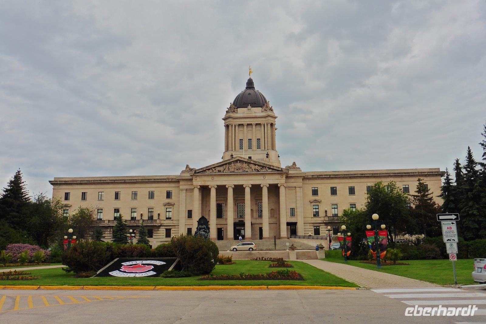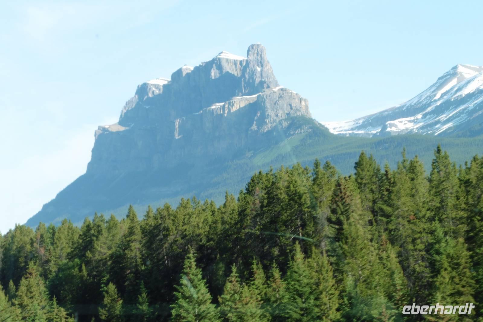 In Winnipeg haben wir einen längeren Stopp. Ich unternehme mit der Gruppe einen kleinen Spaziergang durch die Weizenhauptstadt des Landes zum Parlamentsgebäude der Provinz Manitoba. Bevor der Zug weiterfährt kaufen wir in der Markthalle Briefmarken und kleine Souvenirs ein. Wir durchqueren die nächste Provinz Saskatchewan und erreichen am nächsten Tag Edmonton in der Provinz Alberta. Hier wird ein weiterer Panoramawagen mit komplettem Glasdach eingeschoben. Wir sichern uns einen Platz in diesem Wagon, um die nächsten Stunden die beeindruckende Bergwelt der Rockies genießen zu können. Wieder schießen wir unzählige Fotos.