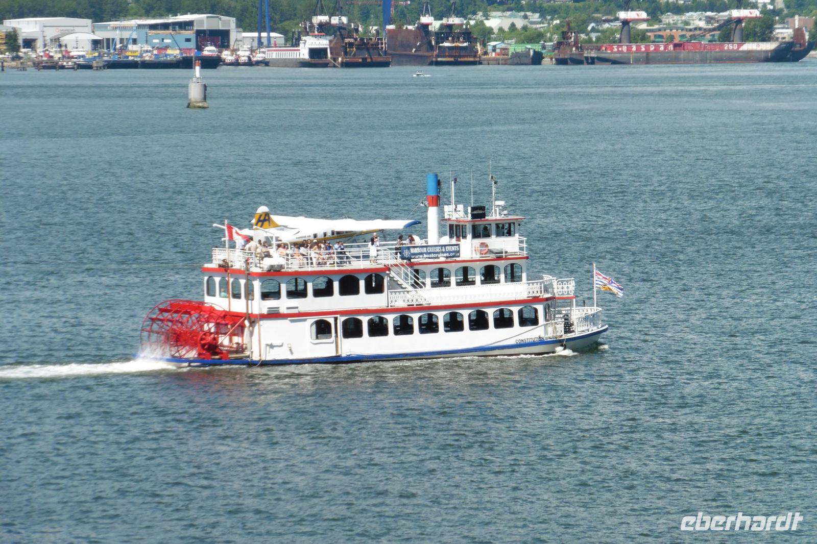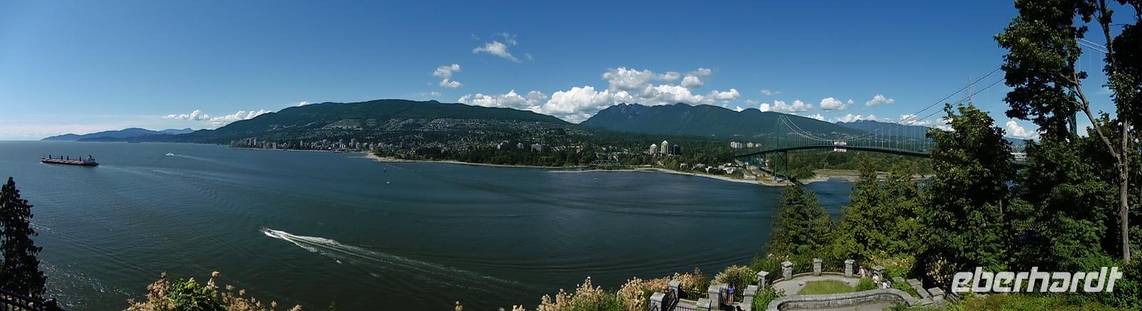 Am späten Vormittag begrüßt uns unsere Reiseleiterin Gini. Nachdem das komplette Gepäck in den Bus verladen wurde, starten wir nach Granville Island, wo wir in der Sand Bar unser Mittagessen serviert bekommen. Nach einem gemeinsamen Bummel durch die Markthalle starten wir mit unserer Stadtrundfahrt und stoppen am Zen Garten in Chinatown, wo wir einen tollen Blick auf die Skyline der schönsten Stadt am Pacific haben. In Gastown besichtigen wir die legendäre Dampfuhr und spazieren zum alten Bahnhof der Canadian Pacific. Am Canada Place bestaunen wir das überdimensionale Segelschiff, welches ein Kongresszentrum und ein Hotel beherbergt. Im Stanleypark, der grünen Oase der Stadt, besichtigen wir die Totempfähle und stoppen am Prospect Point mit Blick zur Lions Gate Bridge. Am Abend nutzen wir das sommerliche Wetter um zur English Bay zu spazieren. Im Milestones nehmen wir unseren Abendsnack ein und laufen danach an der English Bay weiter und beobachten das bunte Treiben an Vancouvers Stadtstrand.