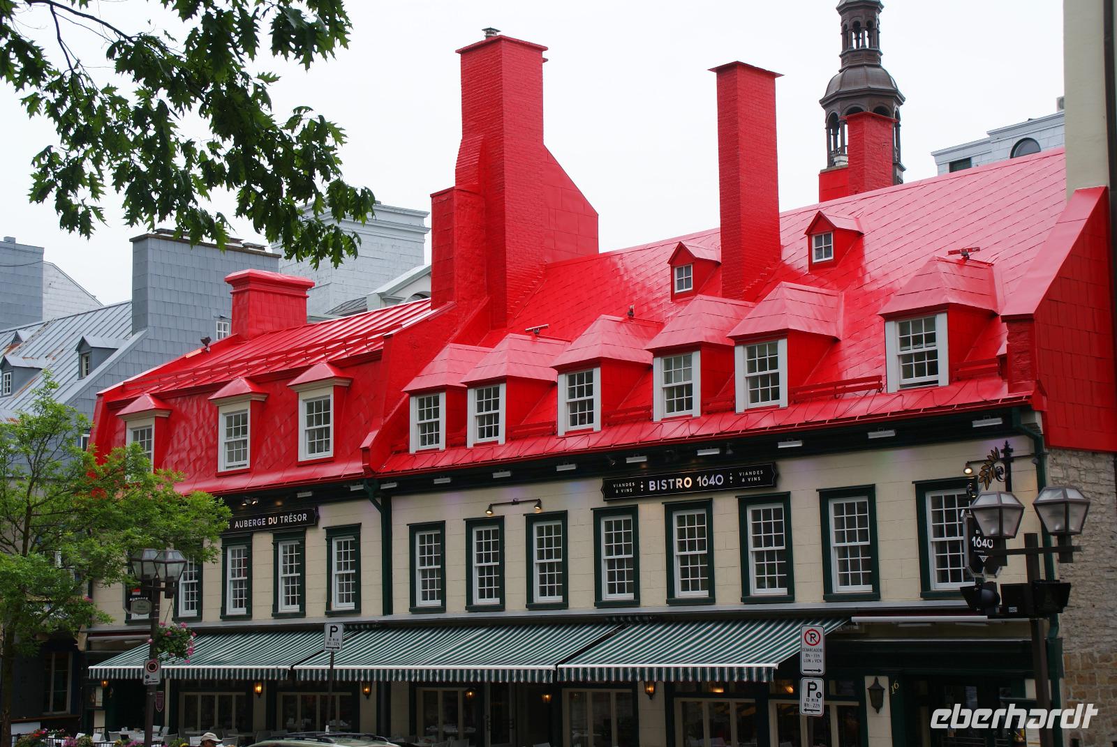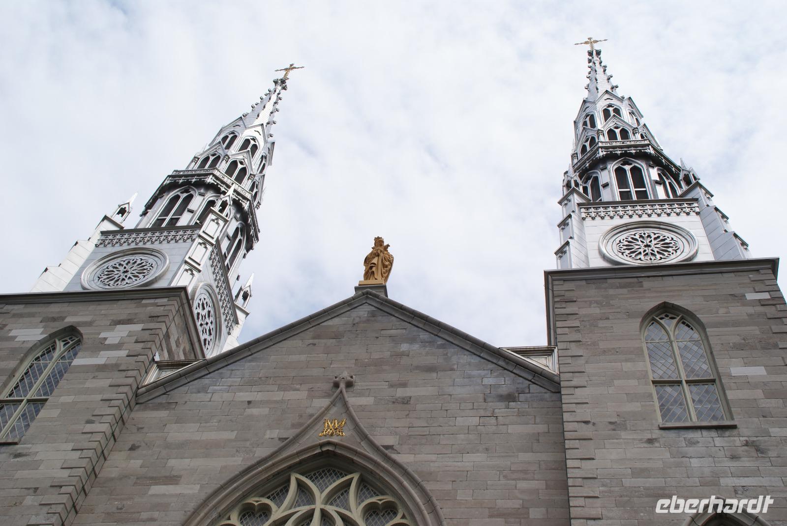 Gut geschlafen und sehr gut gefrühstückt starten wir mit unserer Stadterkundung in Quebec. Als unser Busfahrer Gilles letztendlich auch seinen Gepäckraum im Bus gefunden und alle Koffer verladen hat, kann es losgehen! Wir fahren vorbei am Parlament und an wunderschönen viktorianischen Häusern, deren hohe Treppenaufgänge wir bestaunen und mit deren Briefträgern wir nicht tauschen möchten... Weiter geht's zum „Plains of Abraham", dem Schlachtfeldplatz, wo die letzte Schlacht zwischen England und Frankreich stattfand. Heute ein idyllischer Park mit Blick auf den St. Lorenz Strom, der sich hier 1000 Km vom Atlantik entfernt befindet. Unsere Reiseleiterin Silke erklärt uns, dass der Nationalsport Kanadas im Grunde Eishockey ist, jedoch die Mädchen hier Fußball und die Jungs American Football spielen. So schön es hier ist, aber die Tatsache, dass der kanadische Winter mitunter bis -40 Grad hat und bis Mitte Mai im Osten anhalten kann, schreckt uns doch ein wenig ab. Wir halten am Chateau Frontenac mit 610 Zimmern, die je nach Saison zwischen 99 CAD bis 900 CAD pro Nacht kosten können. Amüsiert hören wir Silkes Geschichte der Schülergruppe, die in der Statue von Bischof Lavalle eine „Batman Statue" sahen! Später spazieren wir noch durch die wunderschöne Unterstadt und fühlen uns noch immer wie mitten in Frankreich. Hier könnten wir es gerne schon ein paar Tage aushalten. Jedoch drängt die Zeit, denn wir werden ja in Montreal von unserer nächsten Reiseleiterin Celine erwartet. Am frühen Nachmittag erreichen wir die Metropole und haben wieder Glück mit dem Wetter, sogar die Sonne zeigt sich für kurze Zeit. Ein Besuch der bekannten Basilika Notre Dame darf natürlich nicht fehlen und wir bestaunen das imposante Interieur. Celine zeigt uns den Justizpalast und erklärt, dass man in der 1. Etage heiraten, in der 2. Etage sich scheiden lassen und in der 3.Etage das Kindergeld bezahlen kann. Unglaublich aber wahr, in Montreal kann man so manche Kirche käuflich erwerben und auf unserer Fahrt durch die Stadt nehmen wir zur Kenntnis, dass dieses Jahr das „Baustellenfestival" (O-Ton Celine) stattfindet.