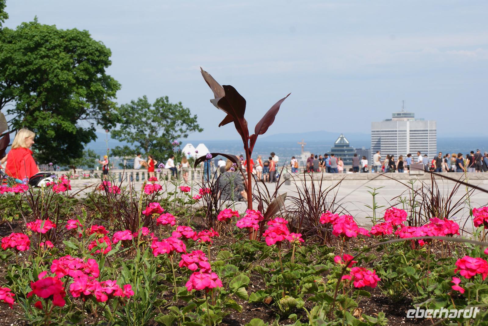 Vorbei an Kongresshalle und Chinatown geht es hoch zum Mont Real. Celine zeigt uns dort einen Friedhof, auf dem 1 Mio Gräber aller Religionen zu finden sind, wirklich beeindruckend. Wir spazieren auf die idyllische Aussichtplattform mit gewaltigem Blick über Montreal. Ein Unbekannter gibt uns auf dem hier öffentlichen platzierten Klavier ein Ständchen-herrliche Atmosphäre. Auf dem Rückweg folgt ein Spaziergang durch ein Waldstück und man könnte beinahe vergessen, dass man eigentlich in einer Großstadt ist. Noch ein Fotostopp mit Blick auf das Olympiastadion und über das portugiesische Viertel treten wir die Rückfahrt zum Hotel an. Nach dem Abendessen schwärmen noch so manche Gäste in die laue Sommernacht hinaus, gerade ist Musikfestival in Montreal und es gibt vieles zu bestaunen. Wie wir von Celine erfahren, wird bedingt durch den langen und harten jährlichen Winter der Sommer entsprechend gefeiert und ein Festival jagt das nächste-bis hin zum „Pommes Frites Festival".