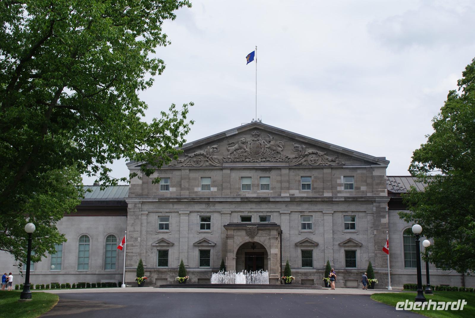 Heute Morgen verlassen wir die schöne Stadt Montreal und fahren per Zug der Gesellschaft VIA Rail nach Ottawa. Hier erwartet uns geballte Kanadische Power in Form von Steffi, unserer einheimischen Reiseleitung. Sofort nimmt sie uns in ihren Bann und wir erleben auf der Citytour schöne gemeinsame Stunden. Von ihr erfahren wir etwas über die Ahornsirupgewinnung und staunen, dass man für einen Liter Sirup 40 Liter Ahornsaft benötigt. Wir halten im Zentrum am Parlamentshügel und spazieren am Parlament vorbei. Versprochen Steffi: mit Sicherheit vergessen wir nicht, dass der Friedensturm wie viele Meter hoch ist? 92!!!!!!! Weiter geht es Richtung Byward Market, wo wir alle die erste kulinarische „Biberschwanz-Begegnung" haben und diese Spezialität Ottawas selbstverständlich auch kosten möchten. Gut gestärkt und schauerfrei ziehen wir weiter und halten an der Basilika Notre Dame, die wir uns auch von innen ansehen dürfen. Wir staunen nicht schlecht, als uns dort ein 47-Jähriger, deutschstämmiger und deutsch sprechender Weihbischof empfängt und wir ein kurzes, nettes Gespräch führen. Anschließend spazieren wir durch den Park in Richtung Residenz des General Gouverneurs David Johnston. Im Park haben unzählige Staatsmänner - und Frauen bei deren Staatsbesuch Bäume gepflanzt und wir sind neugierig, wessen Namen wir auf den Tafeln entdecken. Unser Bus führt uns durch das Rockcliffe Quartier, aktuell eines der teuersten Wohnviertel Kanadas und momentan auch den kanadischen Premierminister Justin Trudeau beherbergt. Wir überqueren die Brücke Richtung Gatineau, wo das Kanadische Geschichtsmuseum ansässig ist und werfen einen Blick in die beeindruckende Empfangshalle mit Totempfählen. Danach geht es zum Hotel und es folgt ein erholsamer Nachmittag im schönen Ottawa. Am Abend spazieren wir gemeinsam zum „Fish Market" Restaurant und freuen uns über die angenehmen Temperaturen sowie ein wohlschmeckendes Menü mit fangfrischem Kanadischen Lachs.